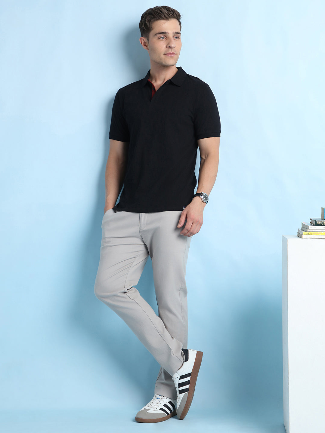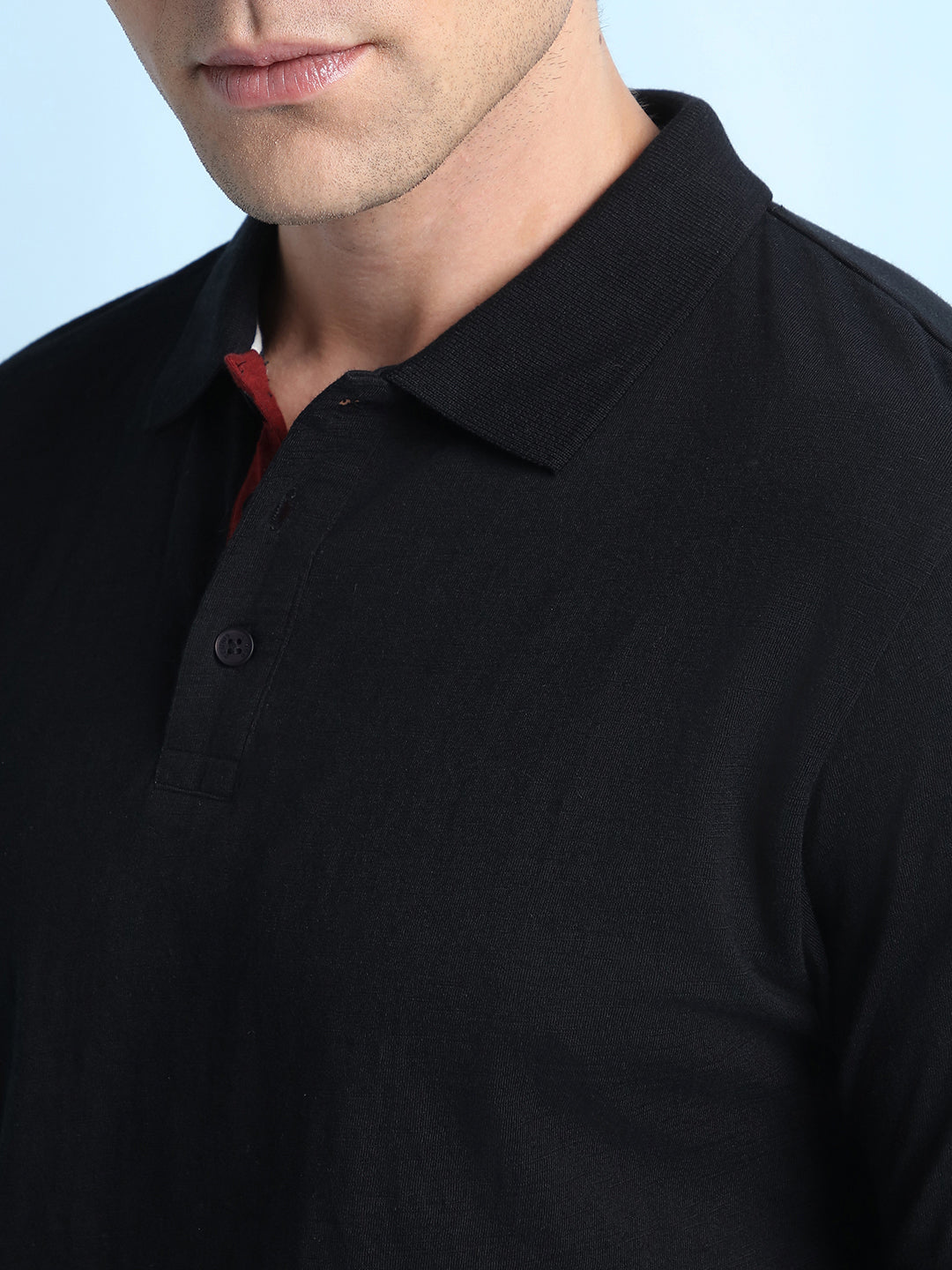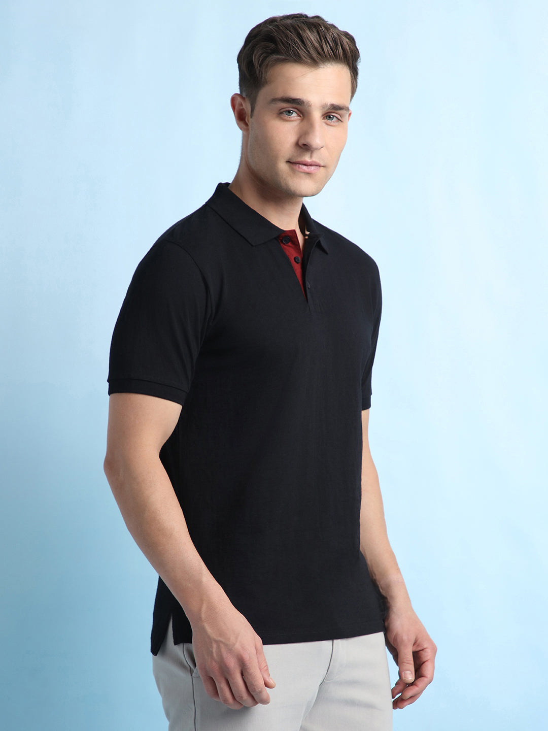 Men's Black Solid Polo Collar Half Sleeves T-shirt