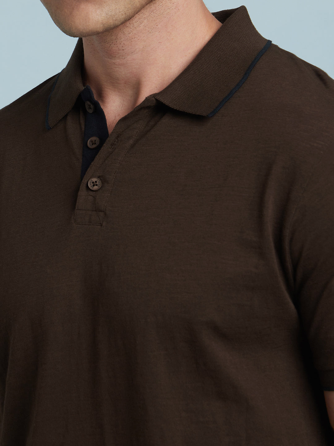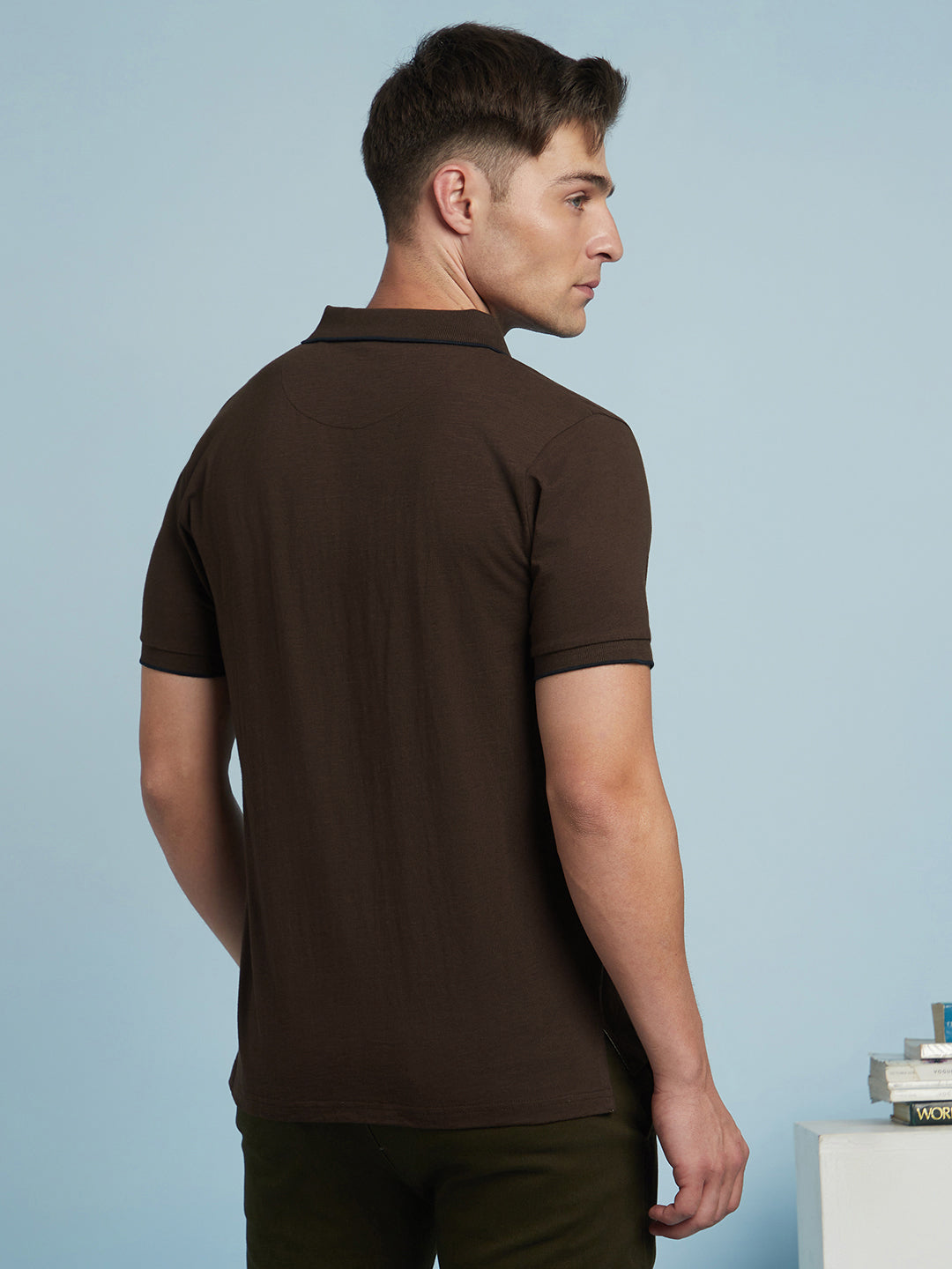 Men's Brown Solid Polo Collar Half Sleeves T-shirt