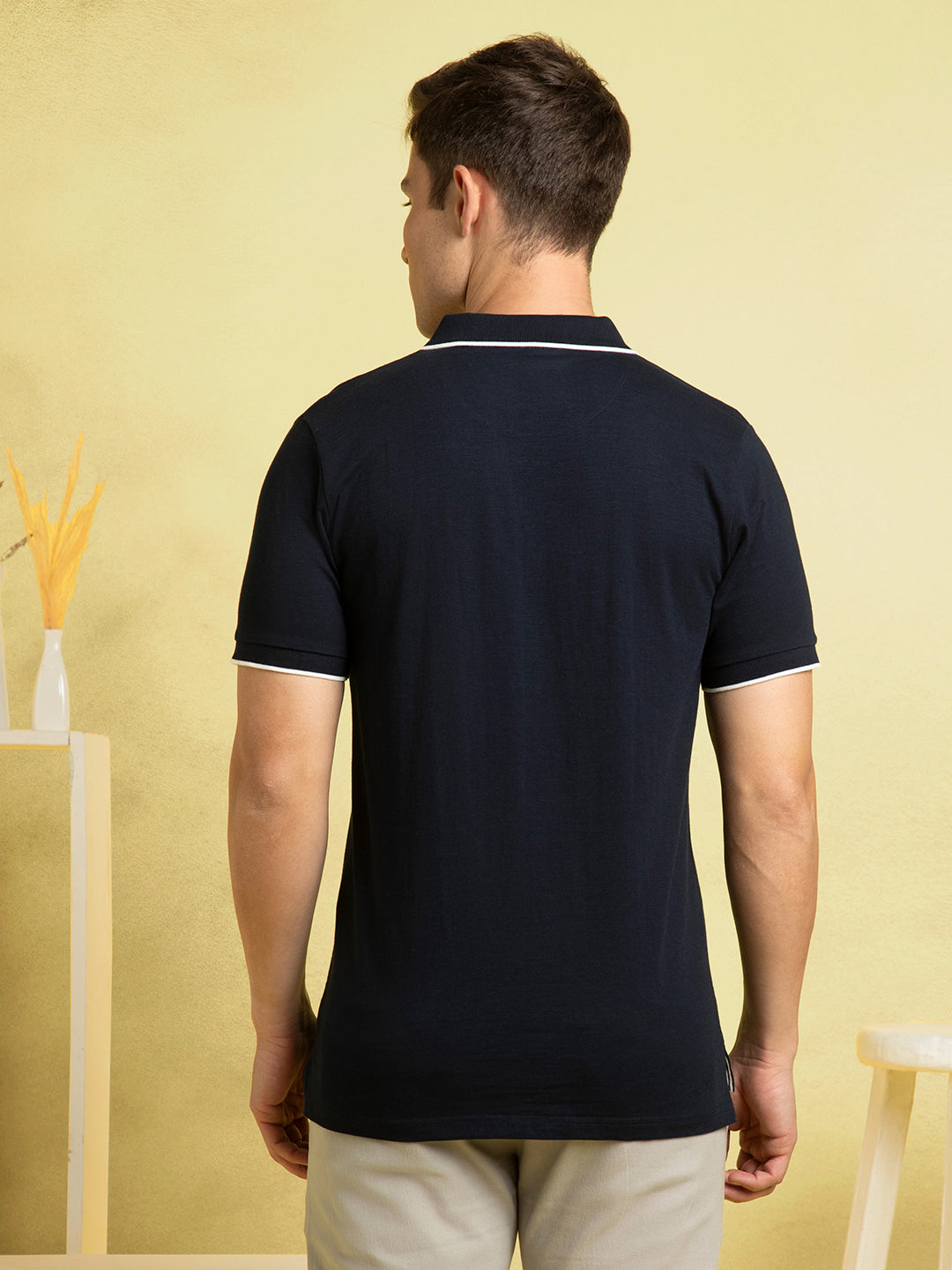 Men's Navy Solid Polo Collar Half Sleeves T-shirt