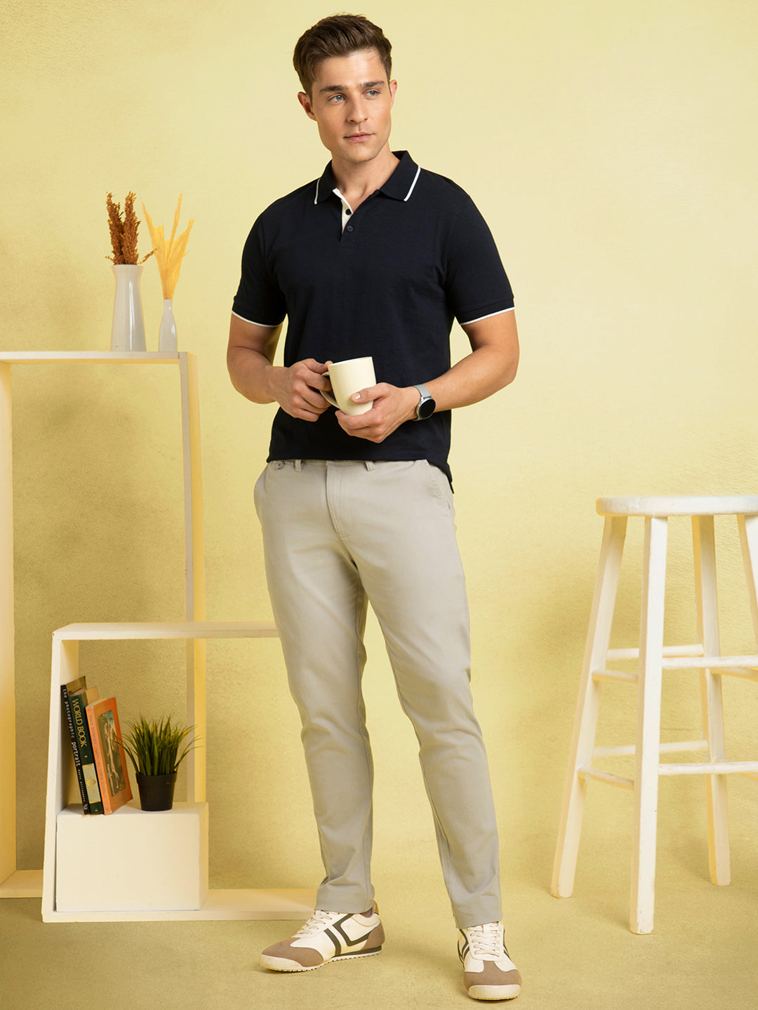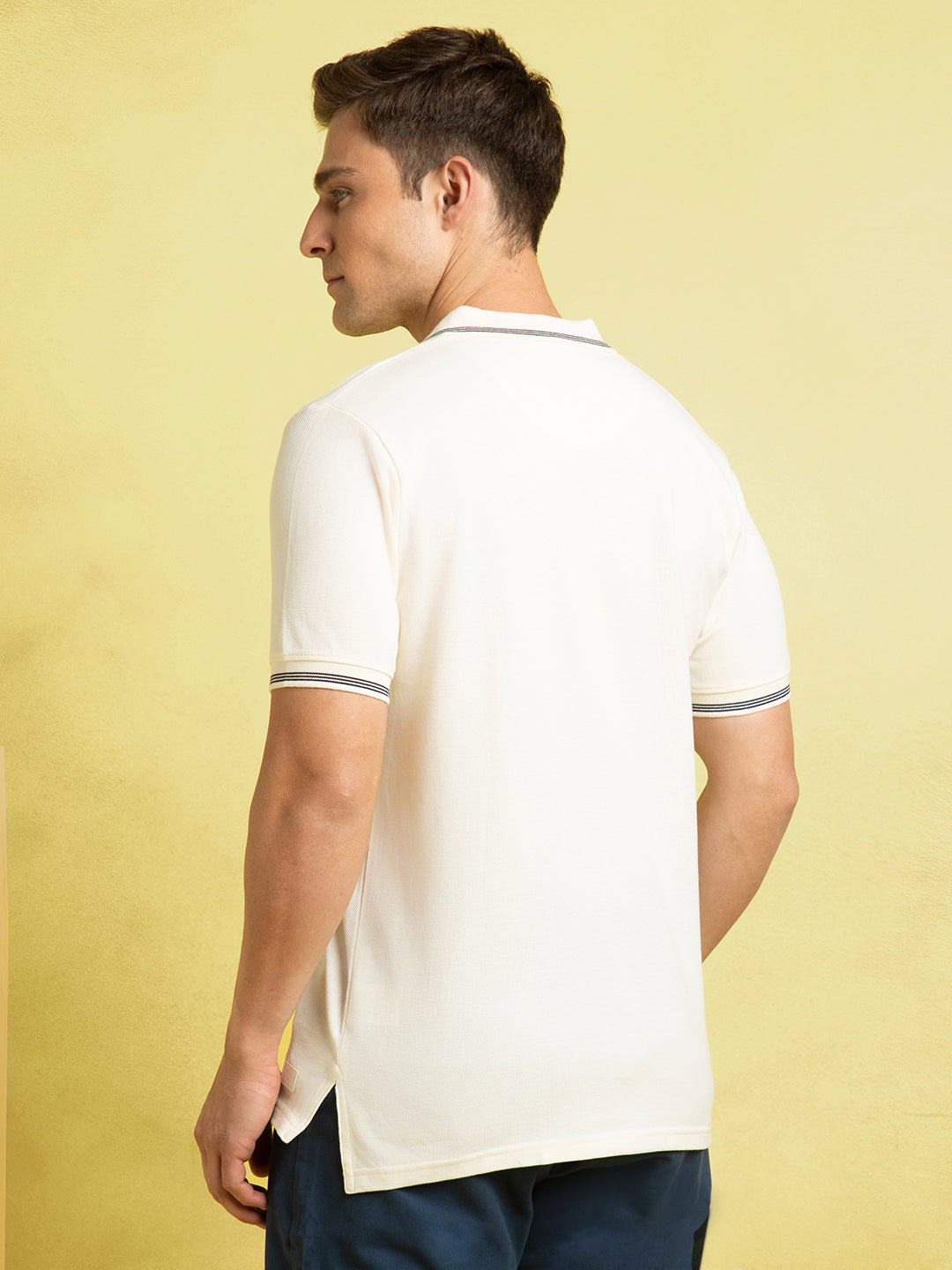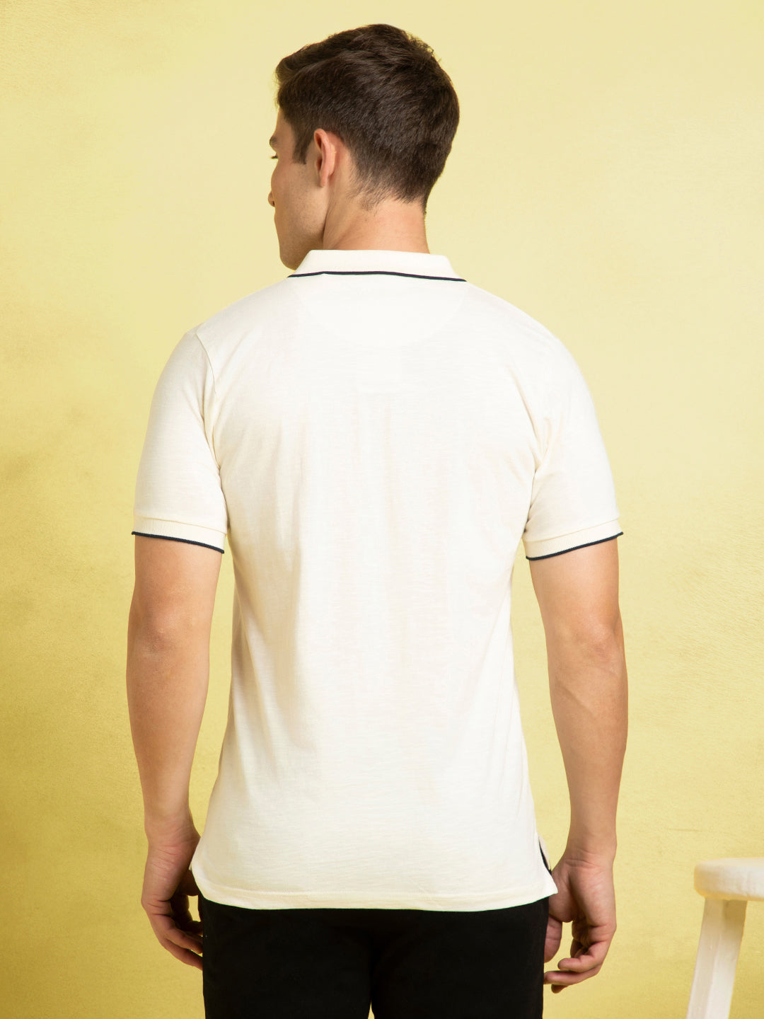 Men's Off-White Solid Polo Collar Half Sleeves T-shirt
