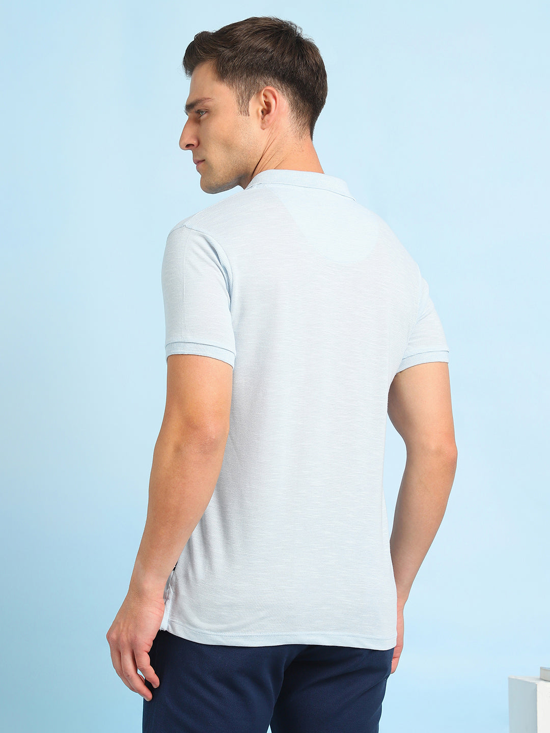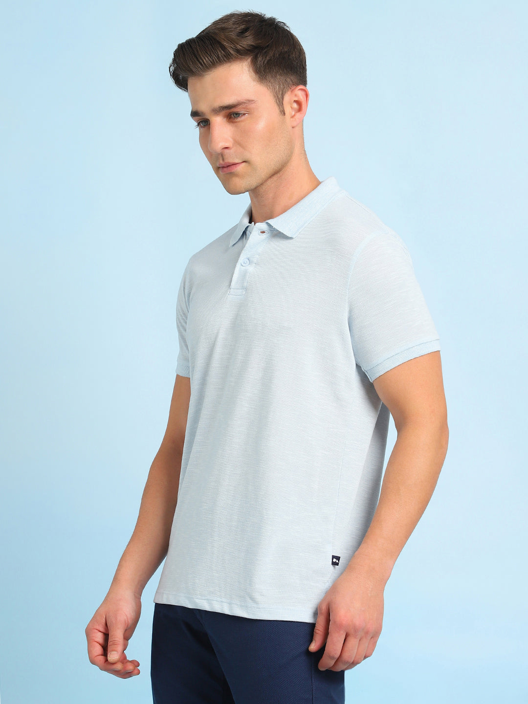 Men's Mid Blue Solid Polo Collar Half Sleeves T-shirt