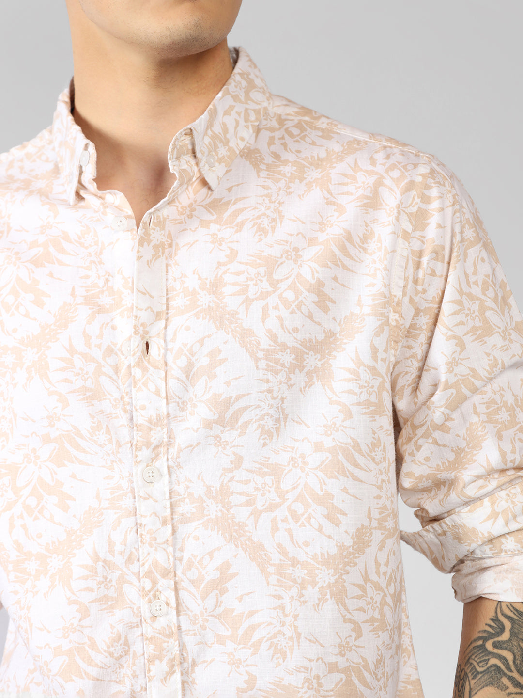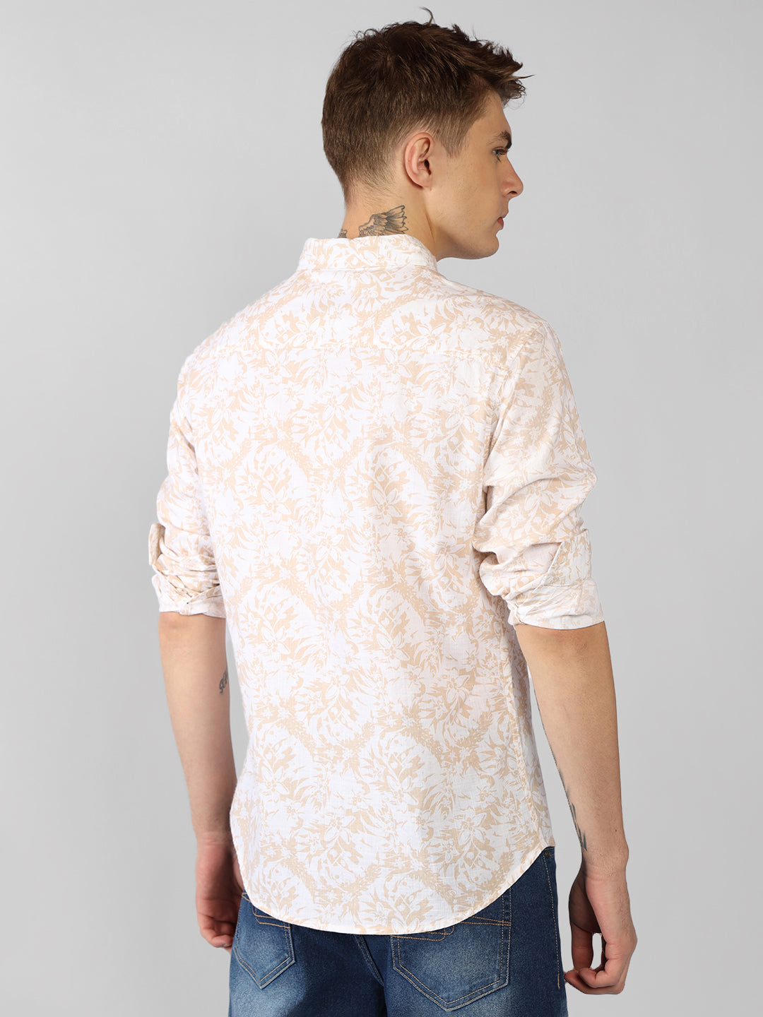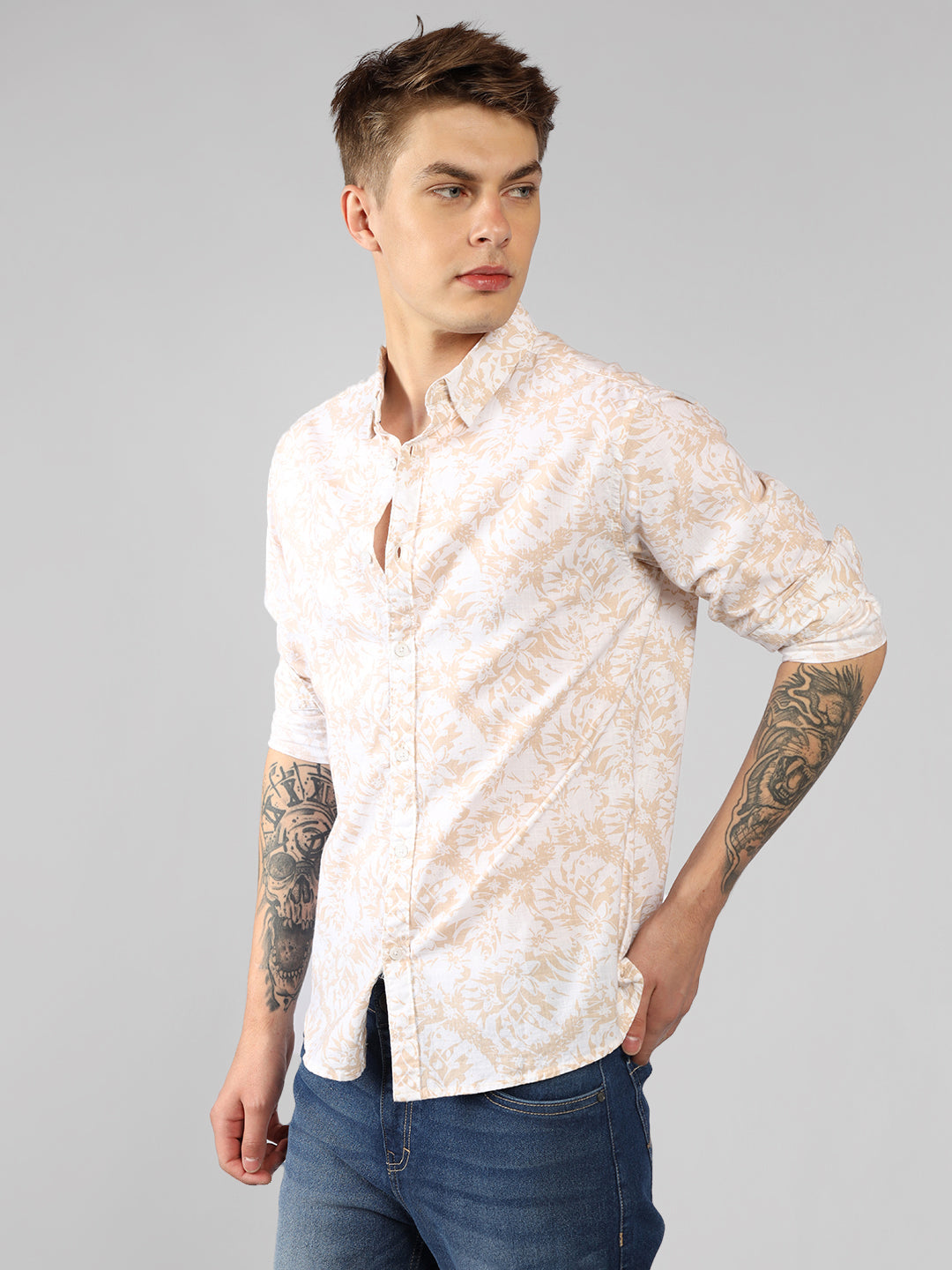 Men's Floral Print White Slim Fit Cotton Casual Shirt