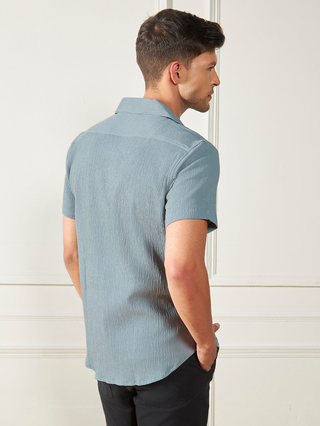 Men's Self-Design Grey Slim Fit Casual Shirt Spread Collar