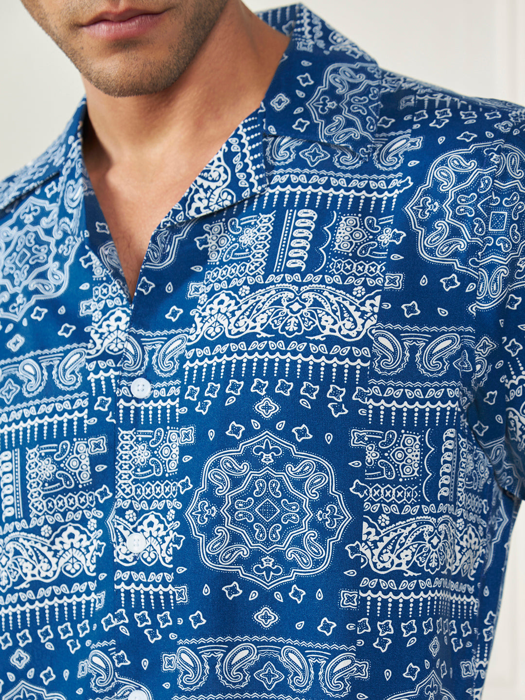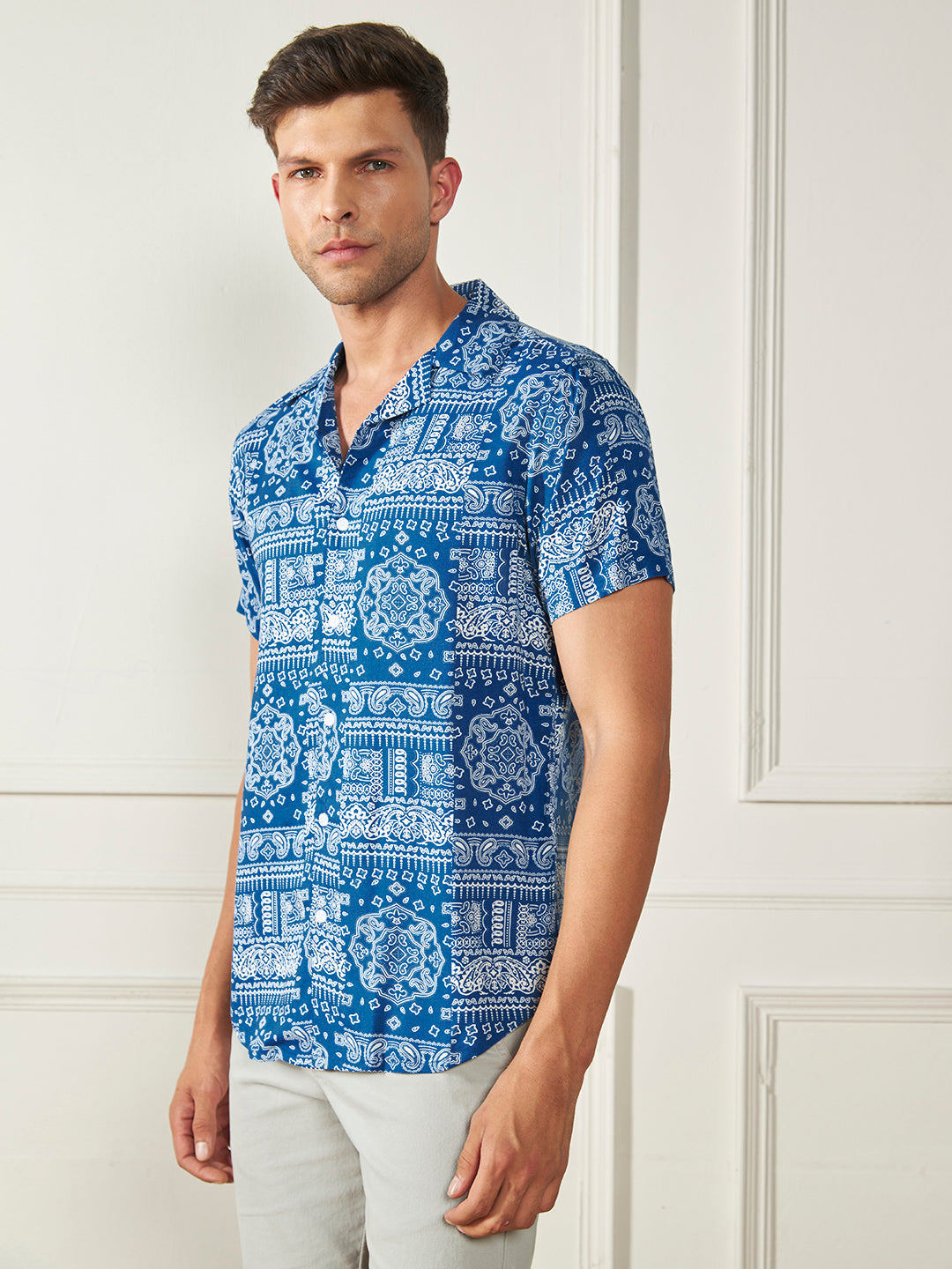Men's Printed Cuban Collar Half Sleeves Relaxed Fit Casual Shirt