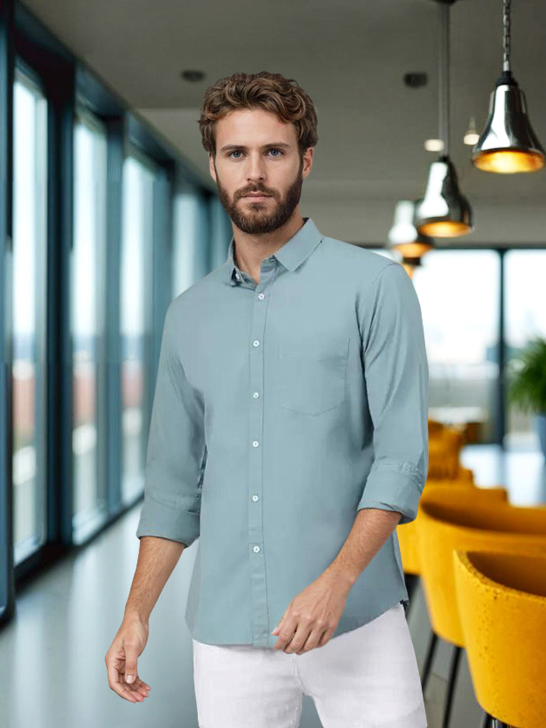 Men's Cotton Solid Slim Fit Casual Shirt With Pocket Full Sleeve Shirt For Formal & Casual Wear