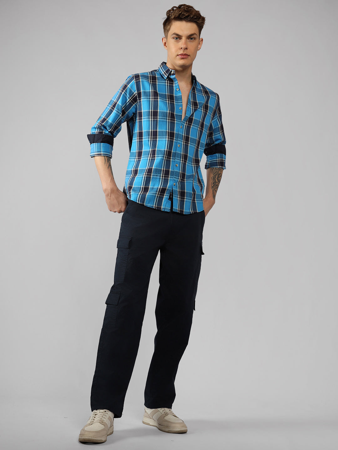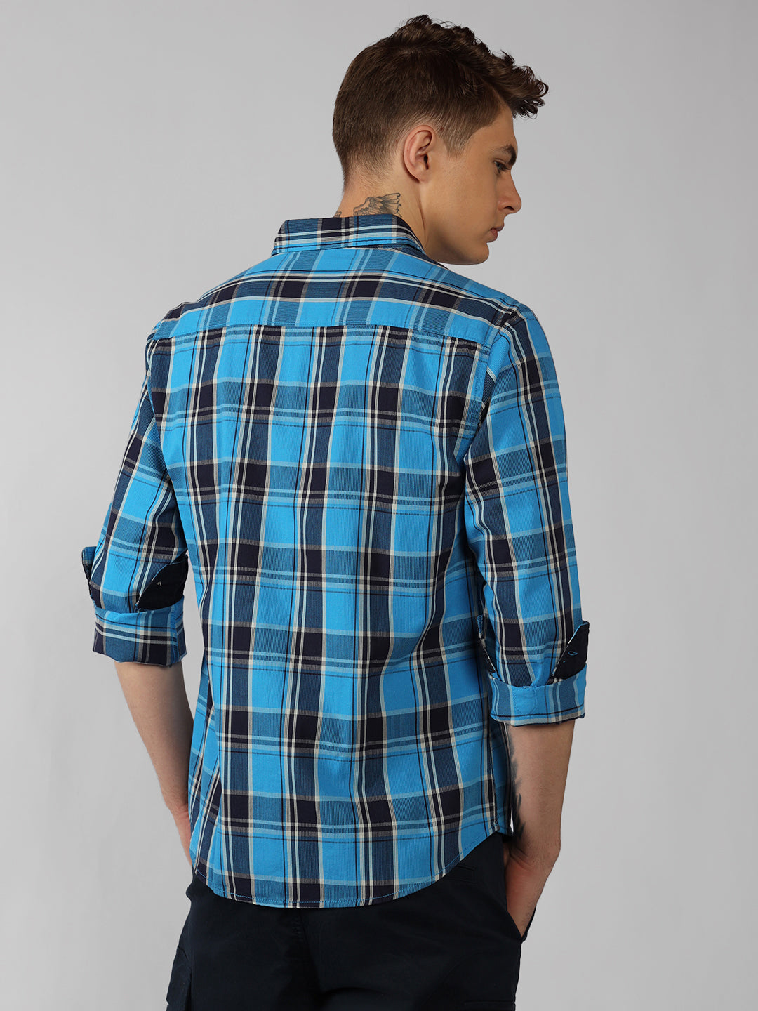 Men's Blue Checks Spread Collar Full sleeve Relaxed Shirt