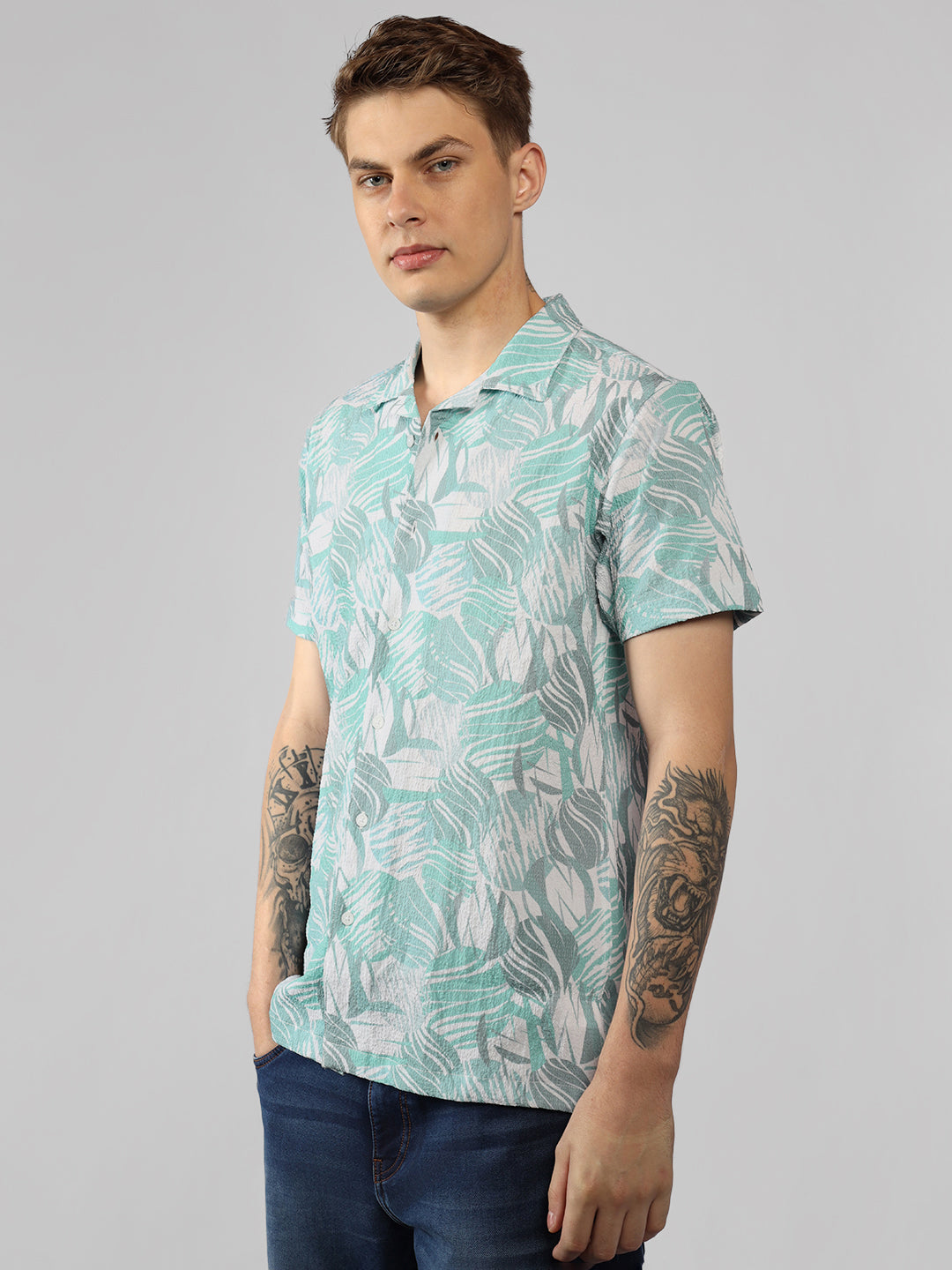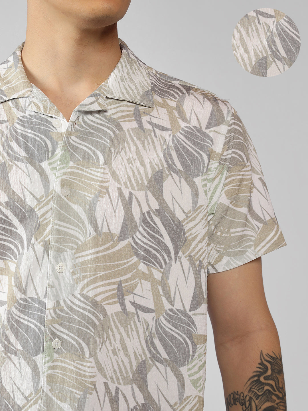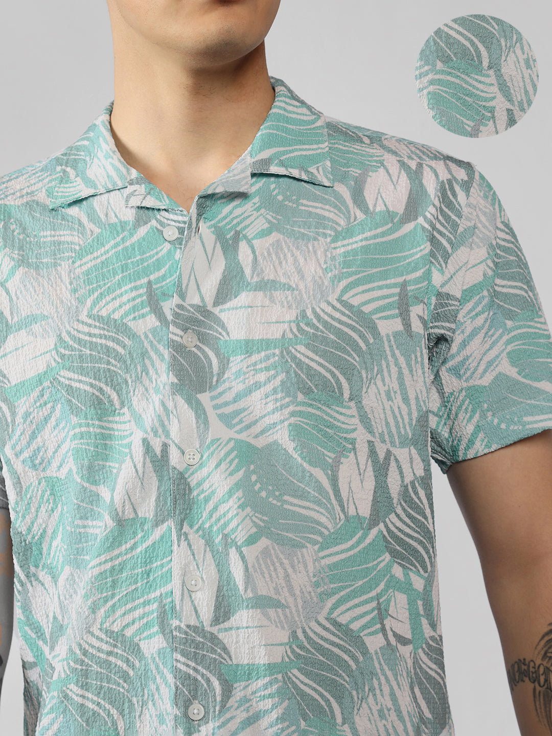 Men Printed Cuban Collar Short Sleeves Relaxed Fit Shirt
