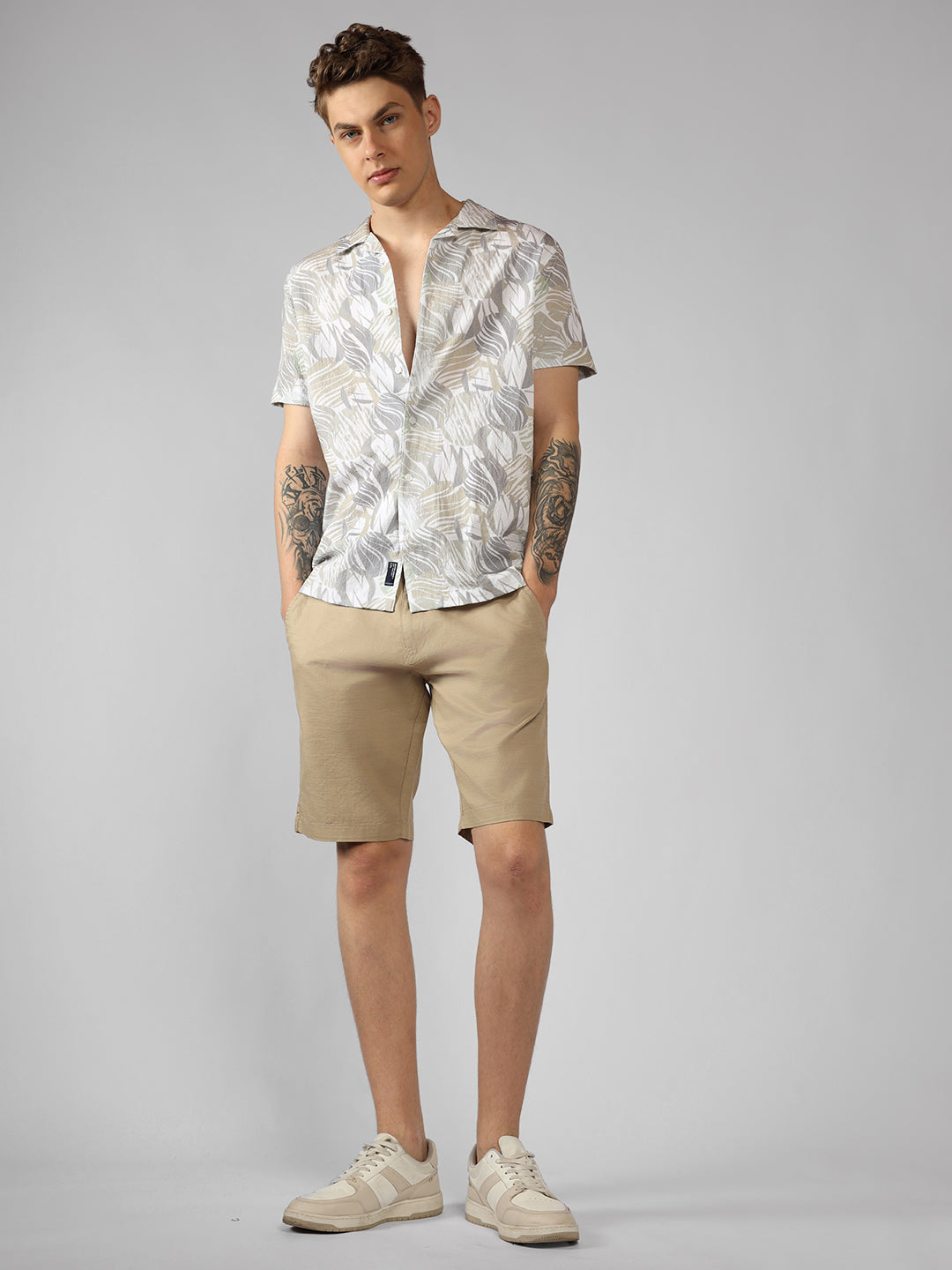 Men's Khaki Printed Cuban Collar Half Sleeve Relaxed Fit Shirt