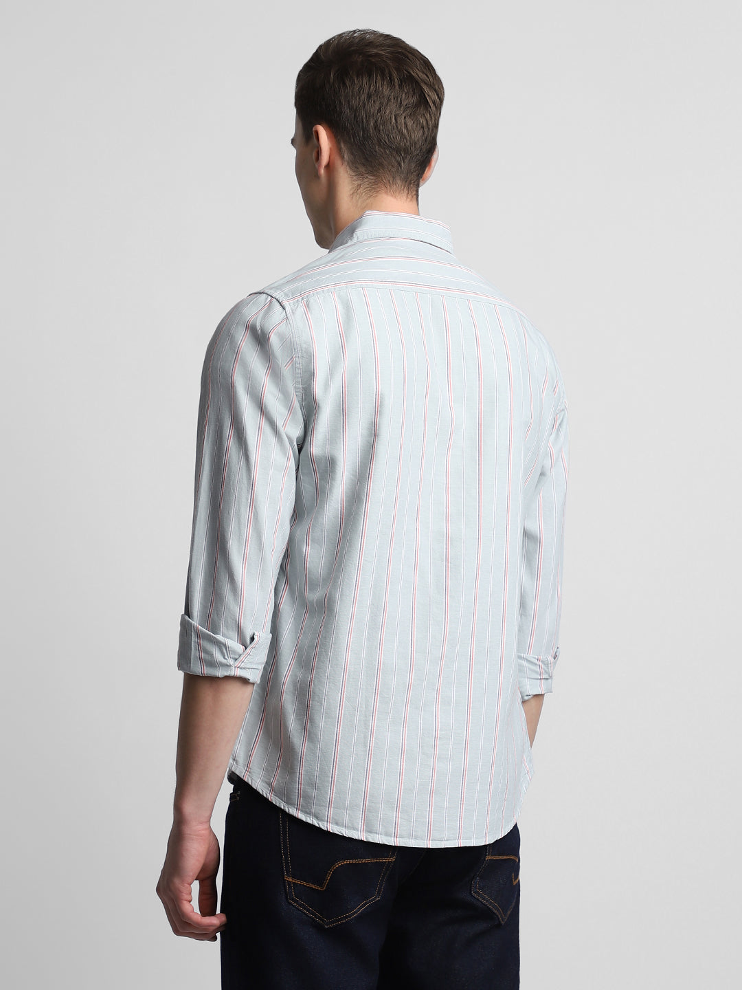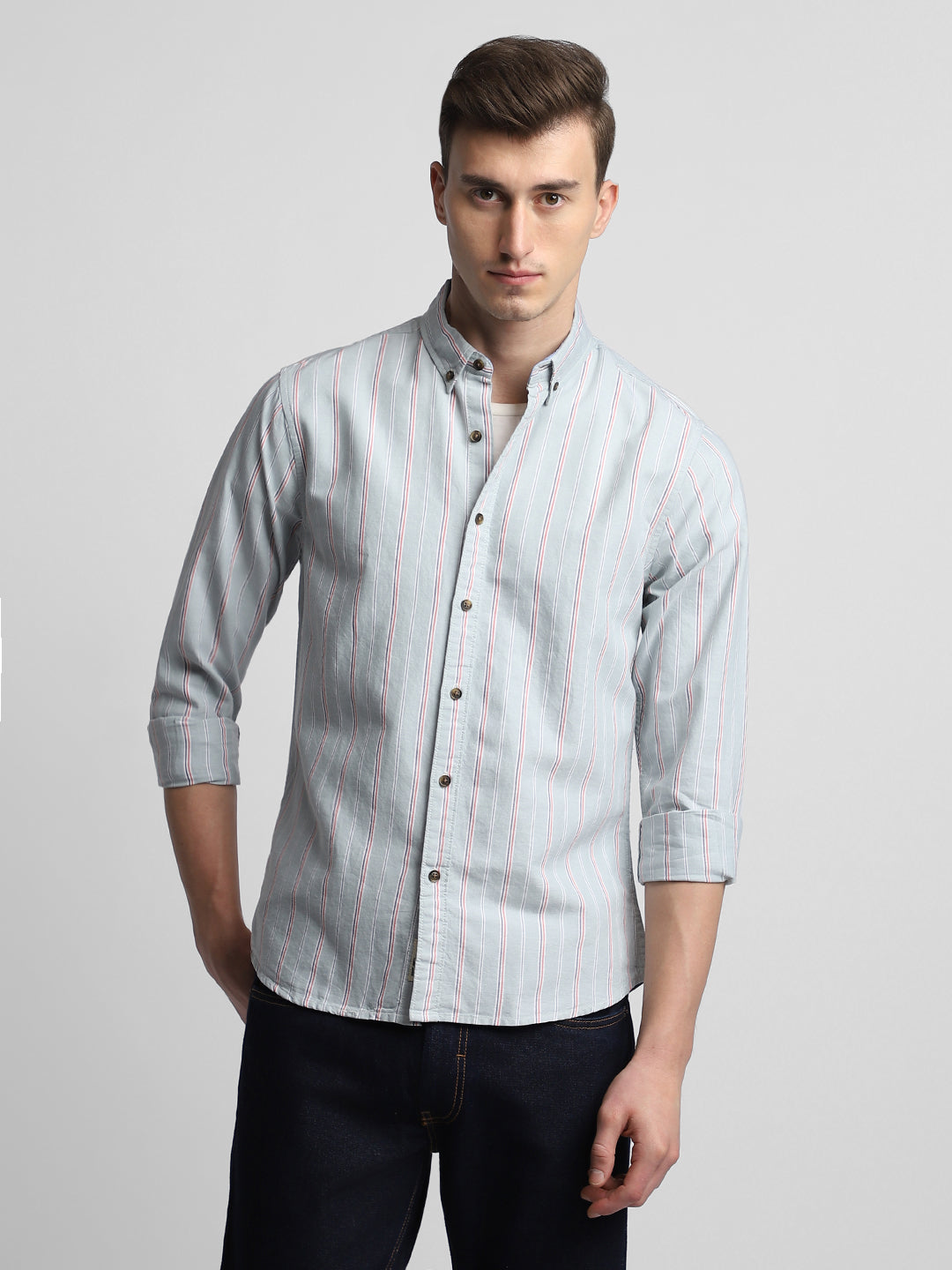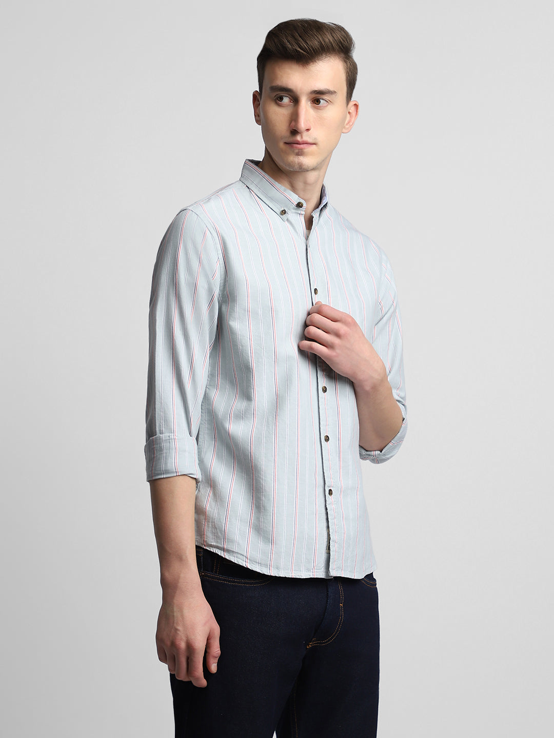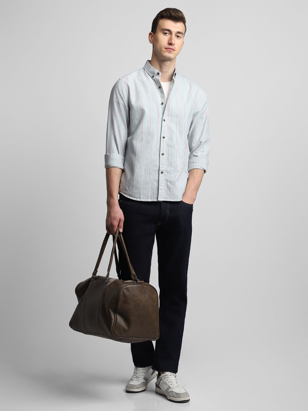 Men's Blue Striped Button Down Collar Full Sleeves Relaxed Fit Shirt