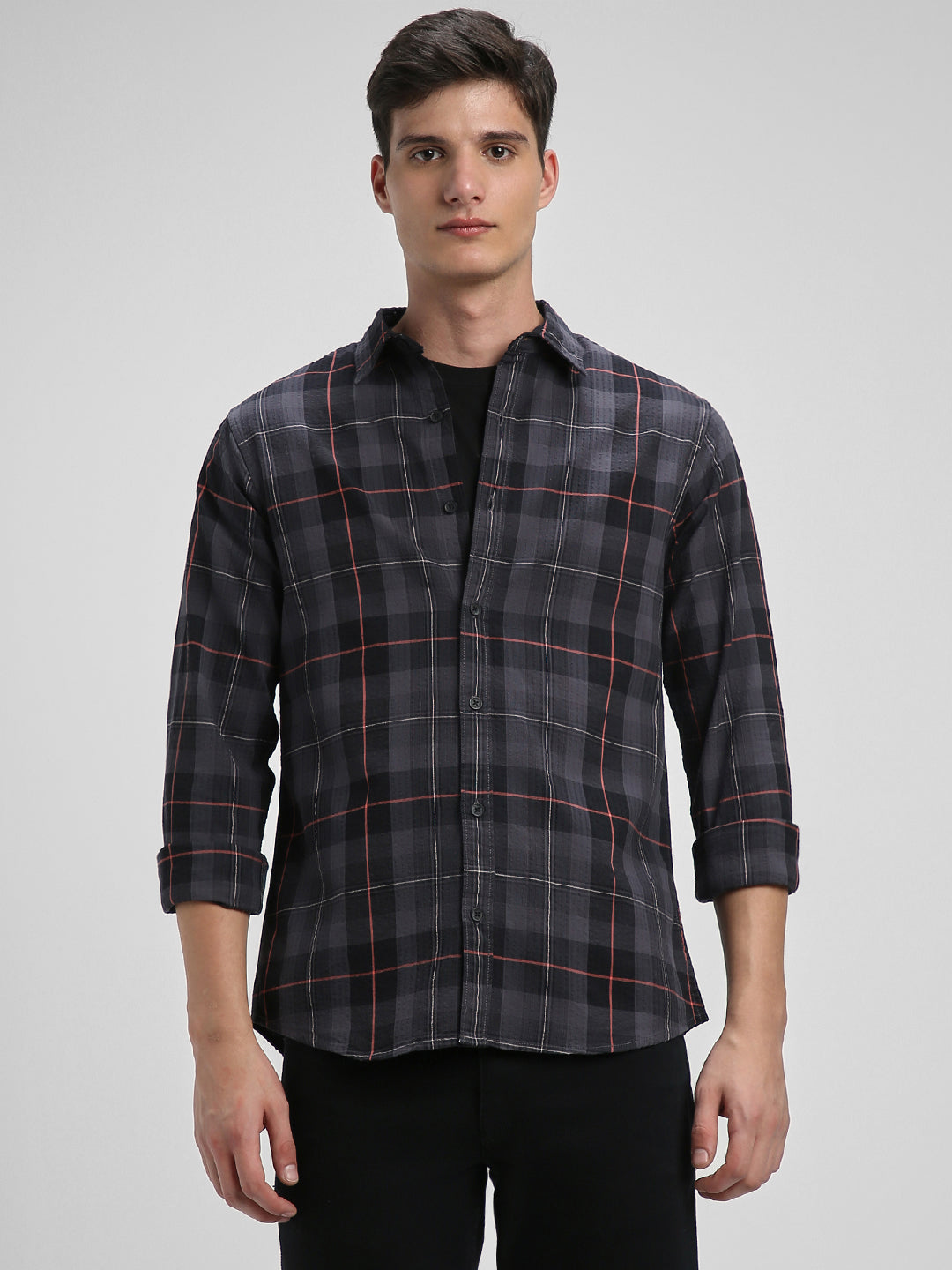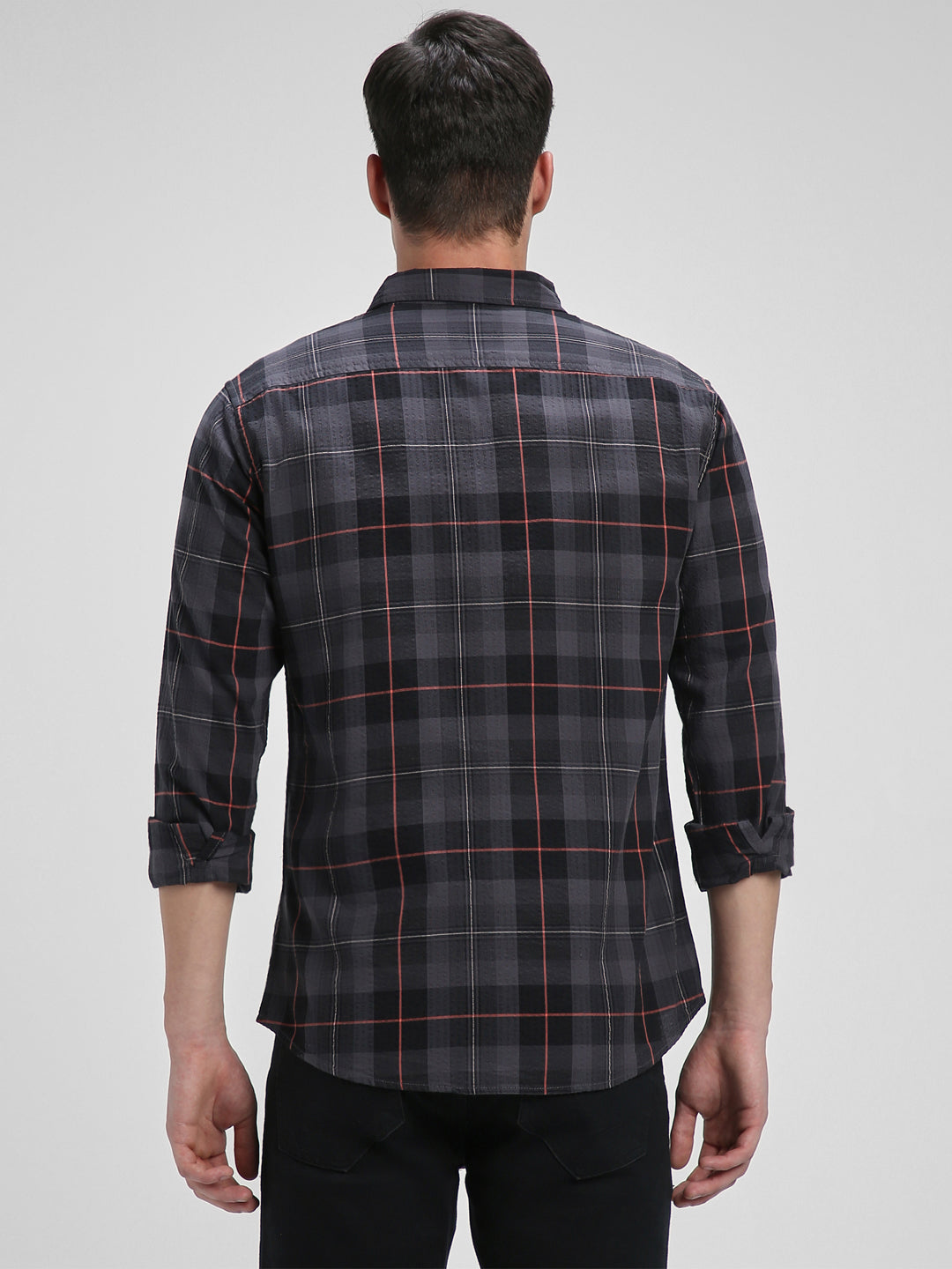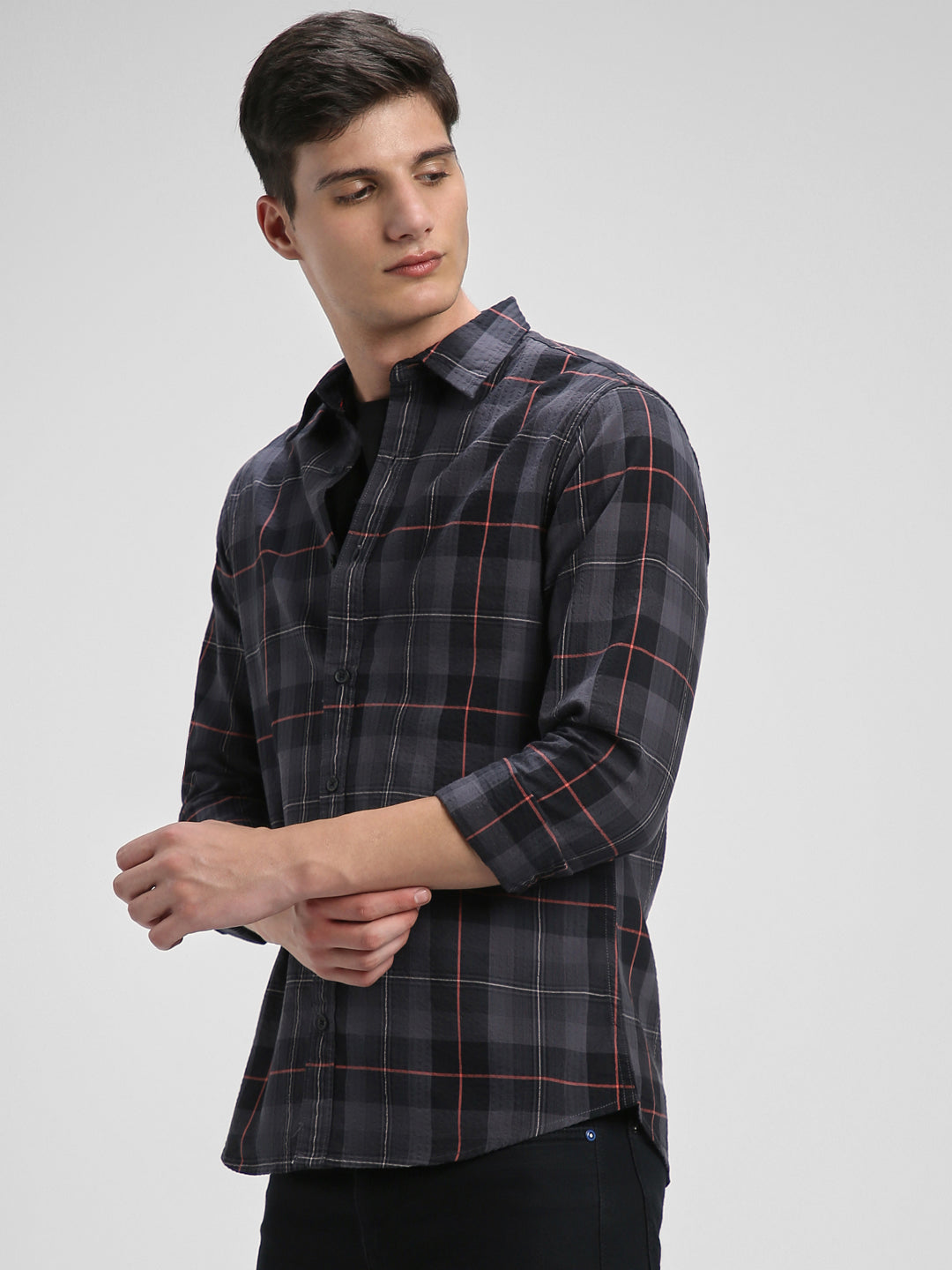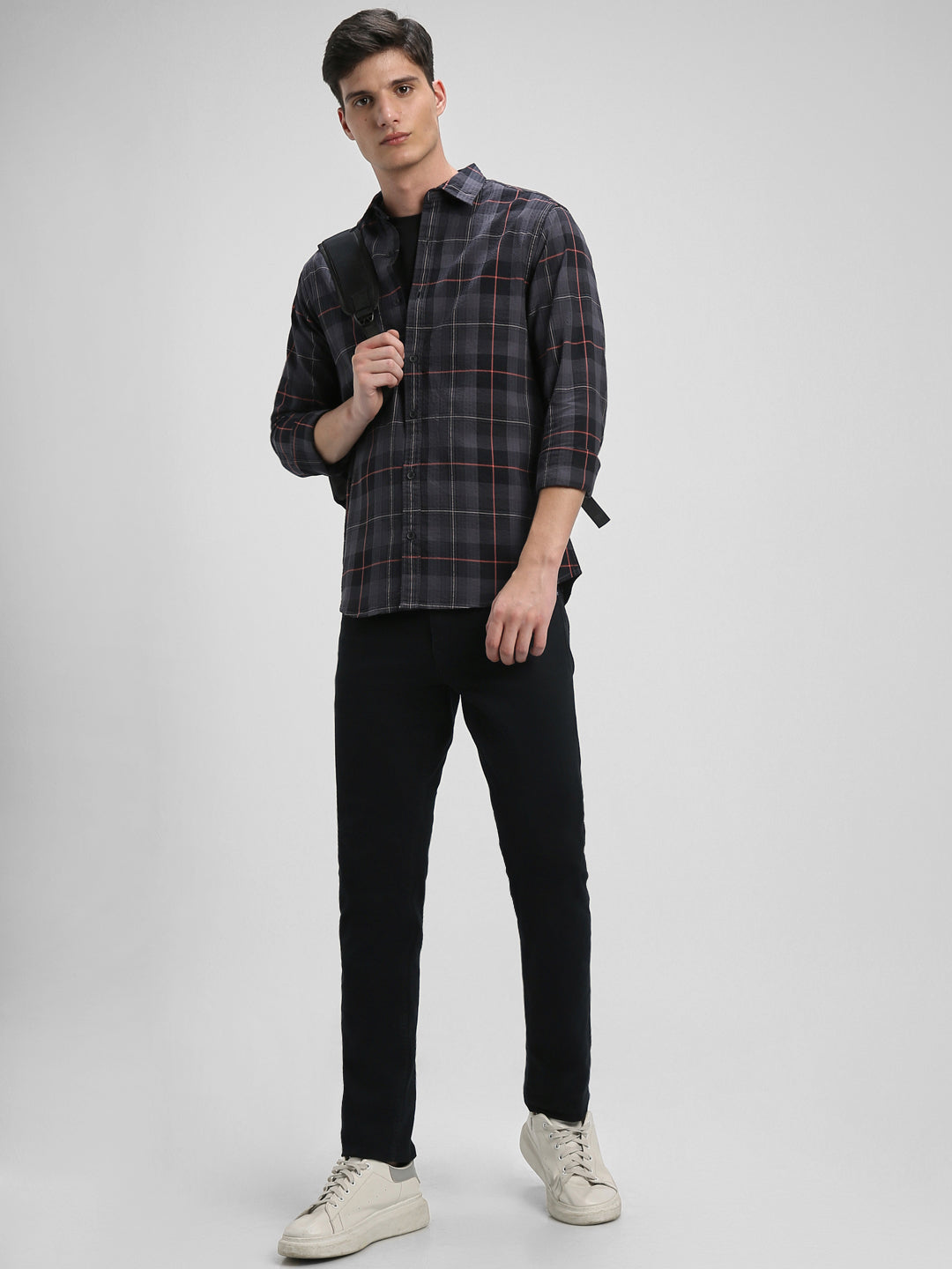 Men's Regular Collar Slim Fit Checks Black Casual Shirts