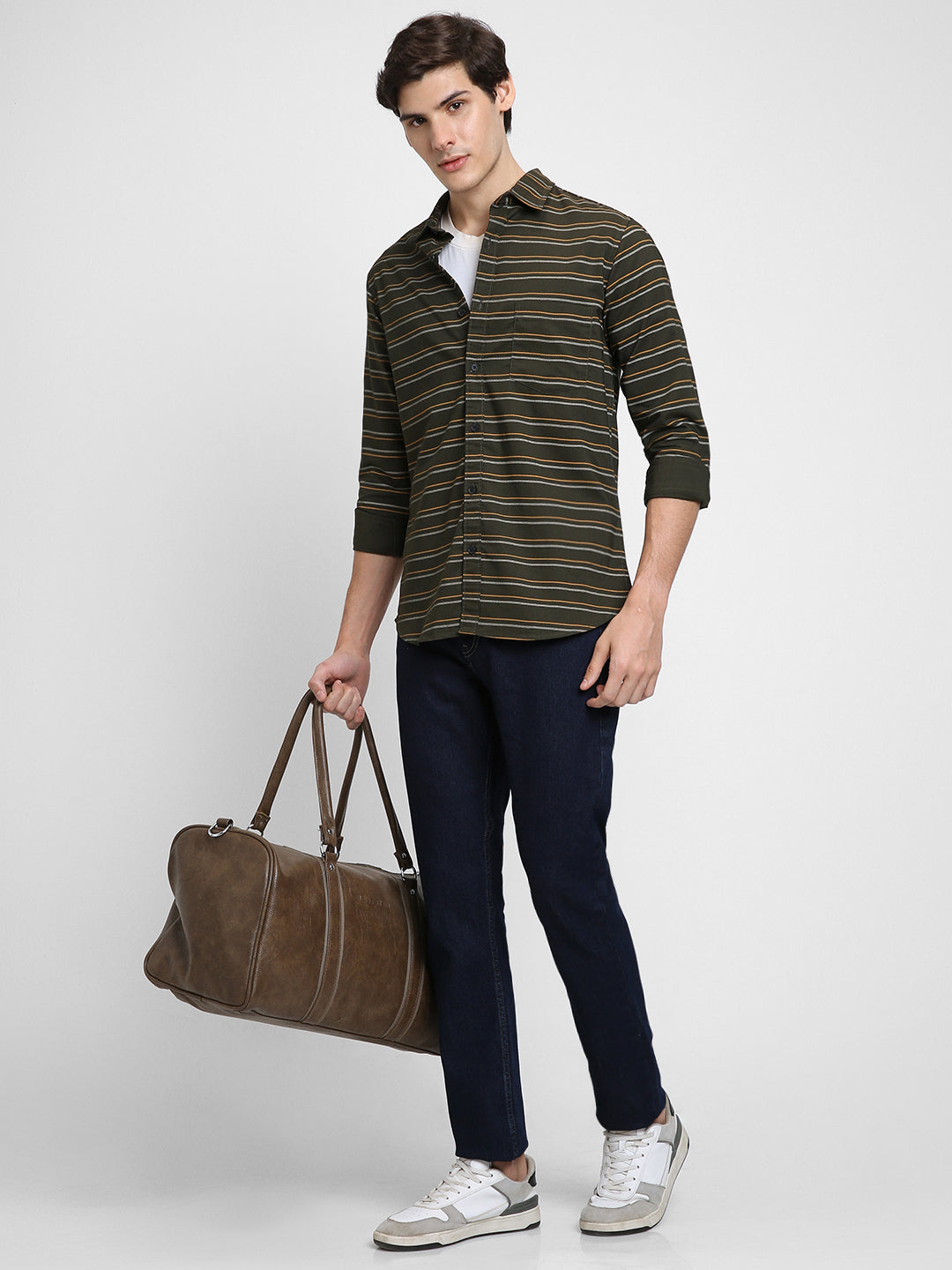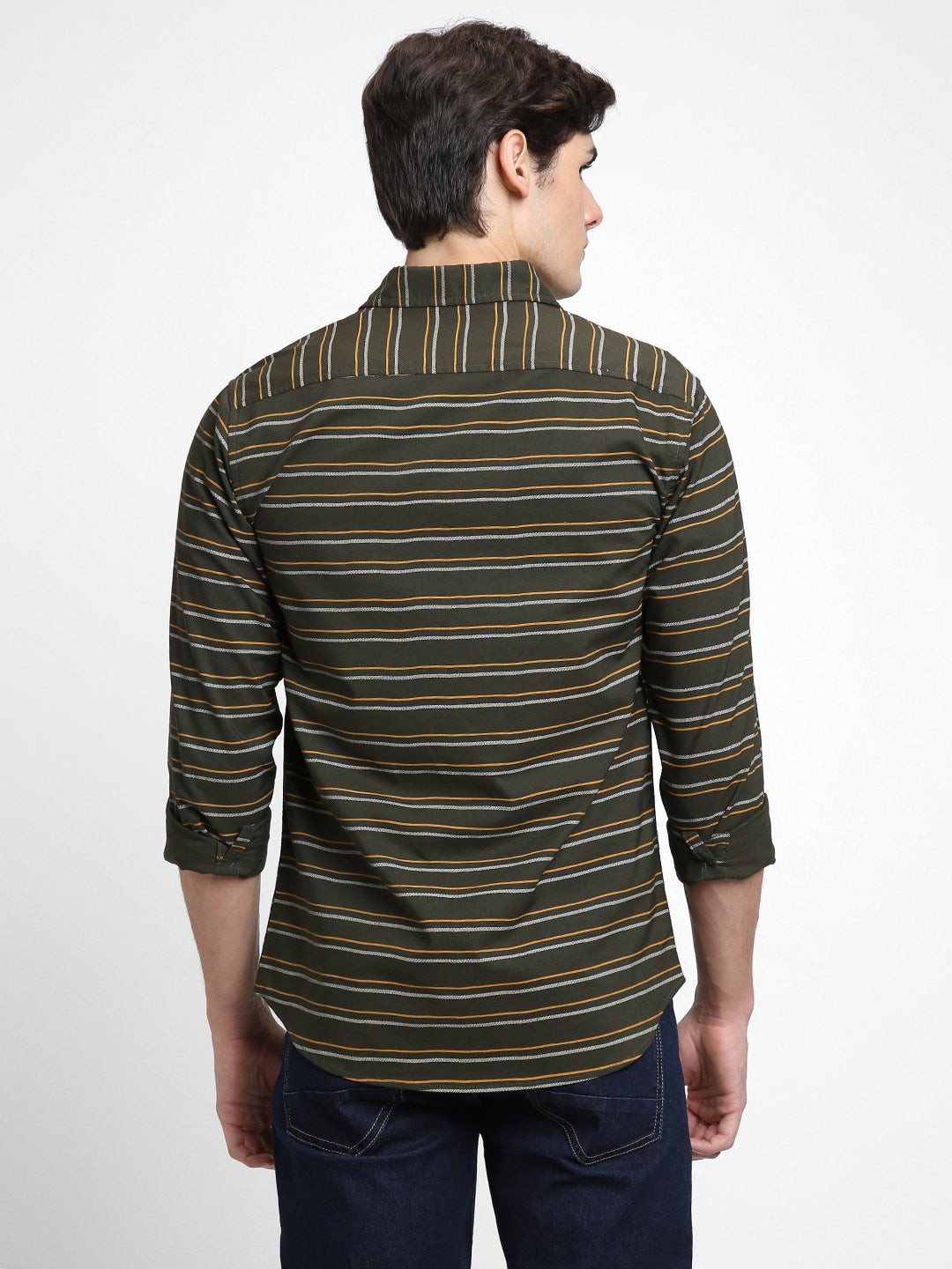 Men's Regular Collar Slim Fit Stripes Black Casual Shirts