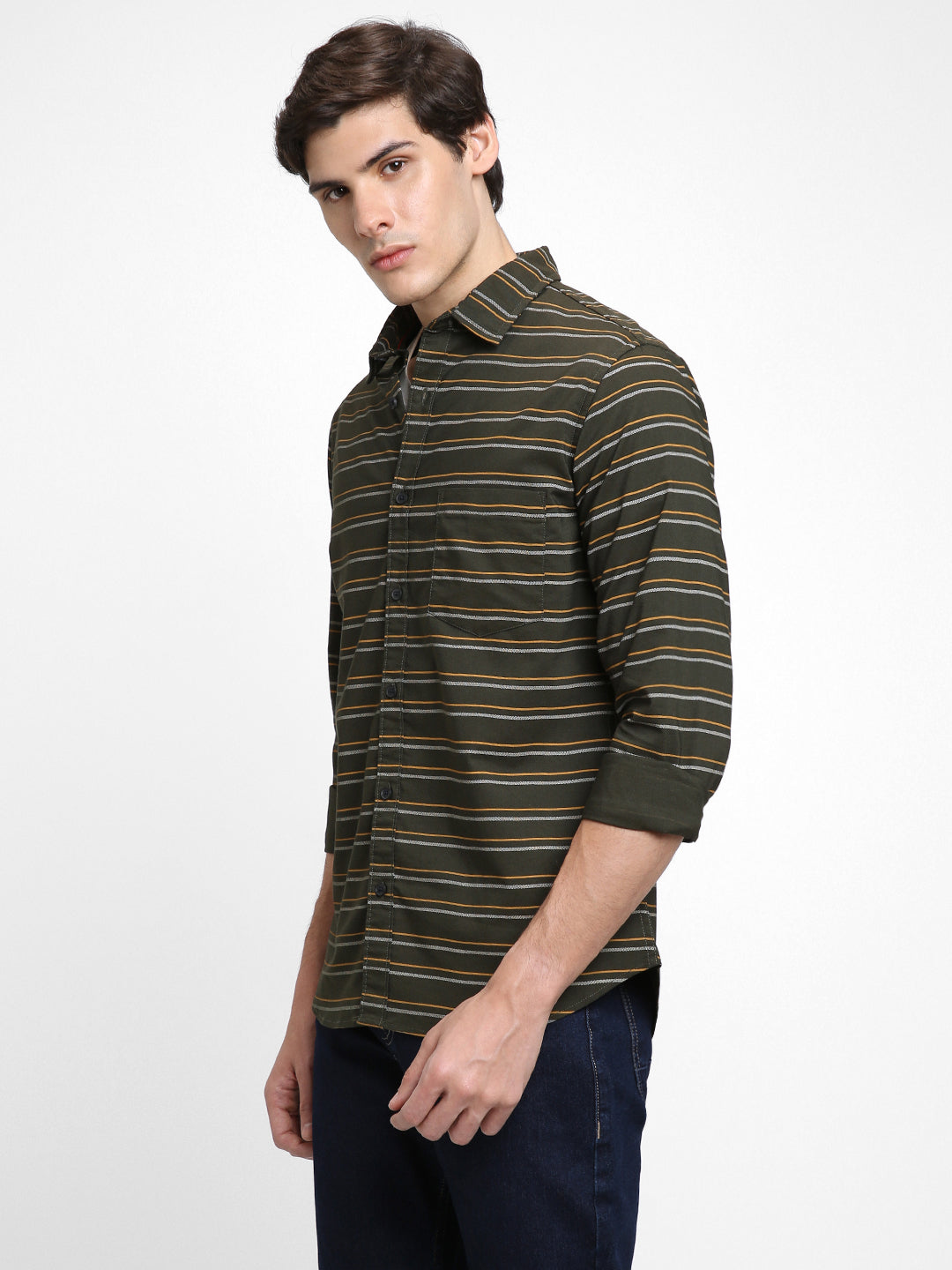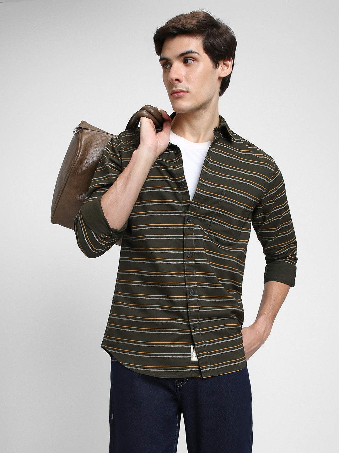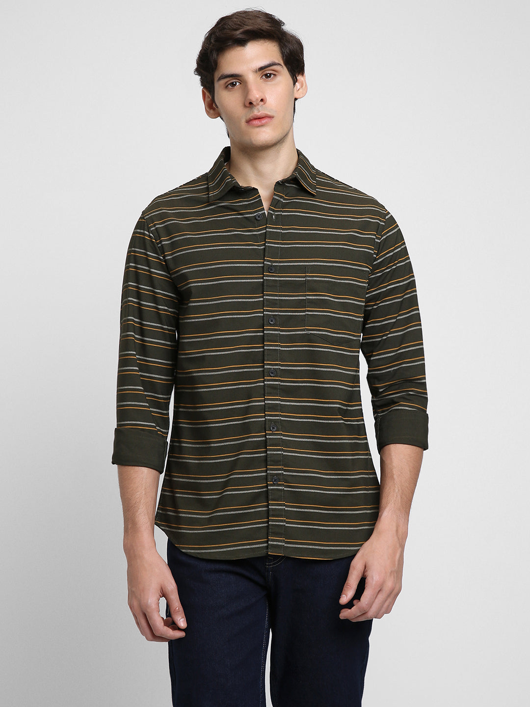 Men's Sage Green Textured Spread Collar Full Sleeves Casual Shirt
