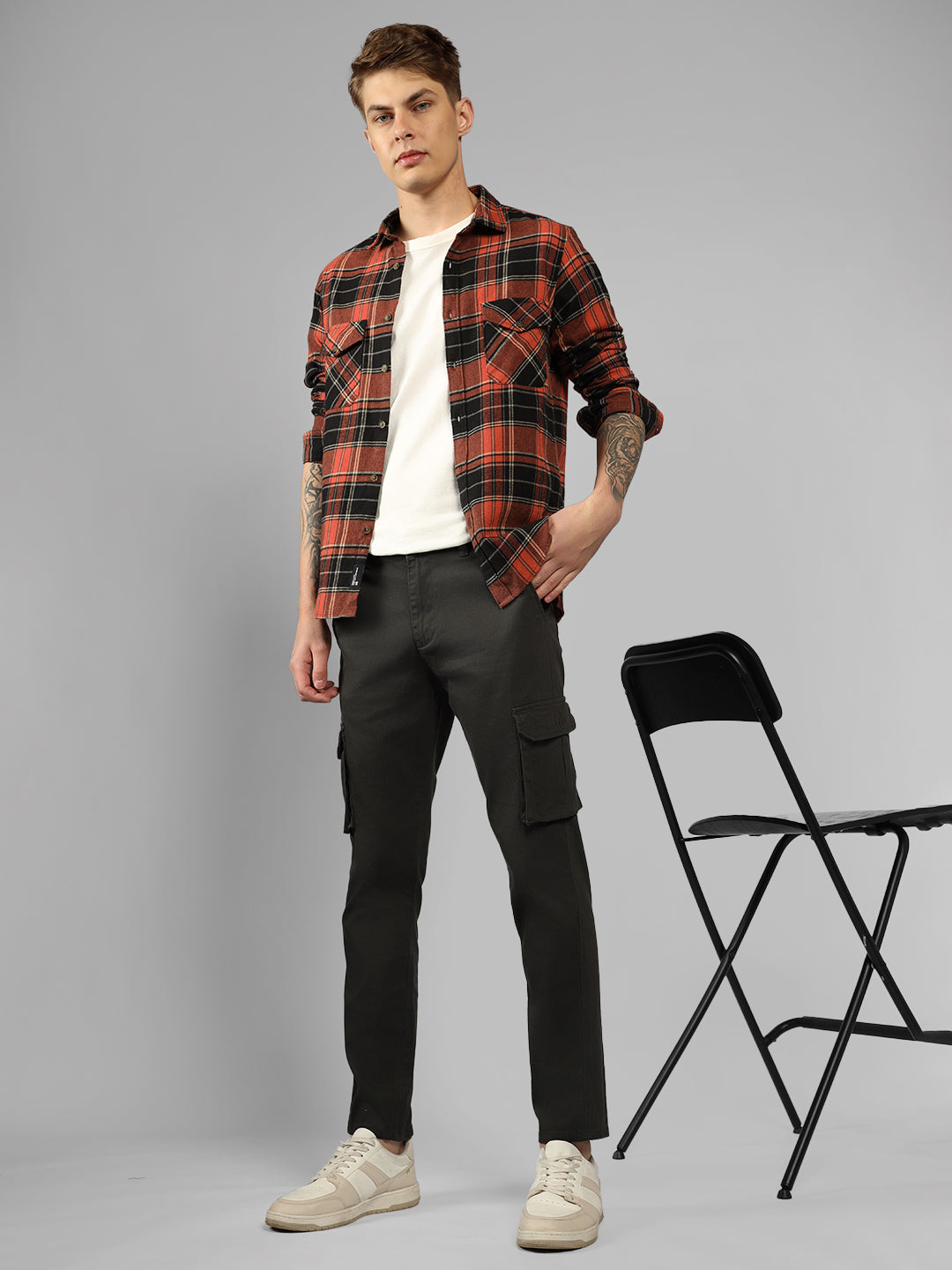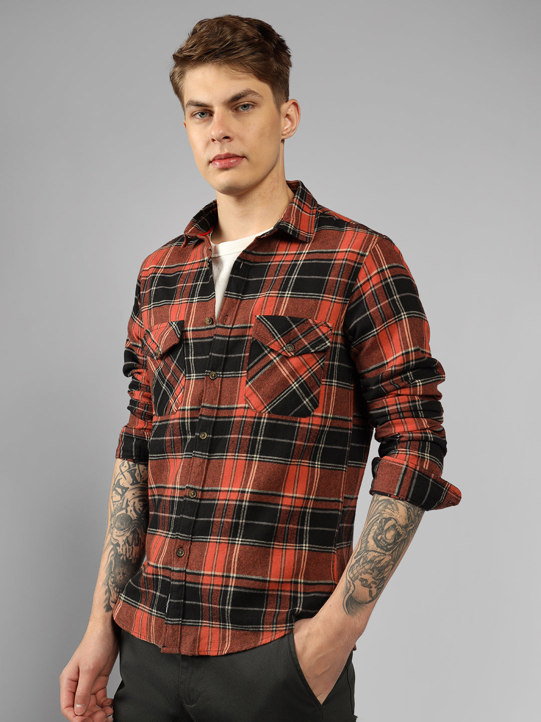 Men's Cotton Buffalo Check Slim Fit Casual Shirt With Pocket Full Sleeve Shirt For Formal & Casual Wear