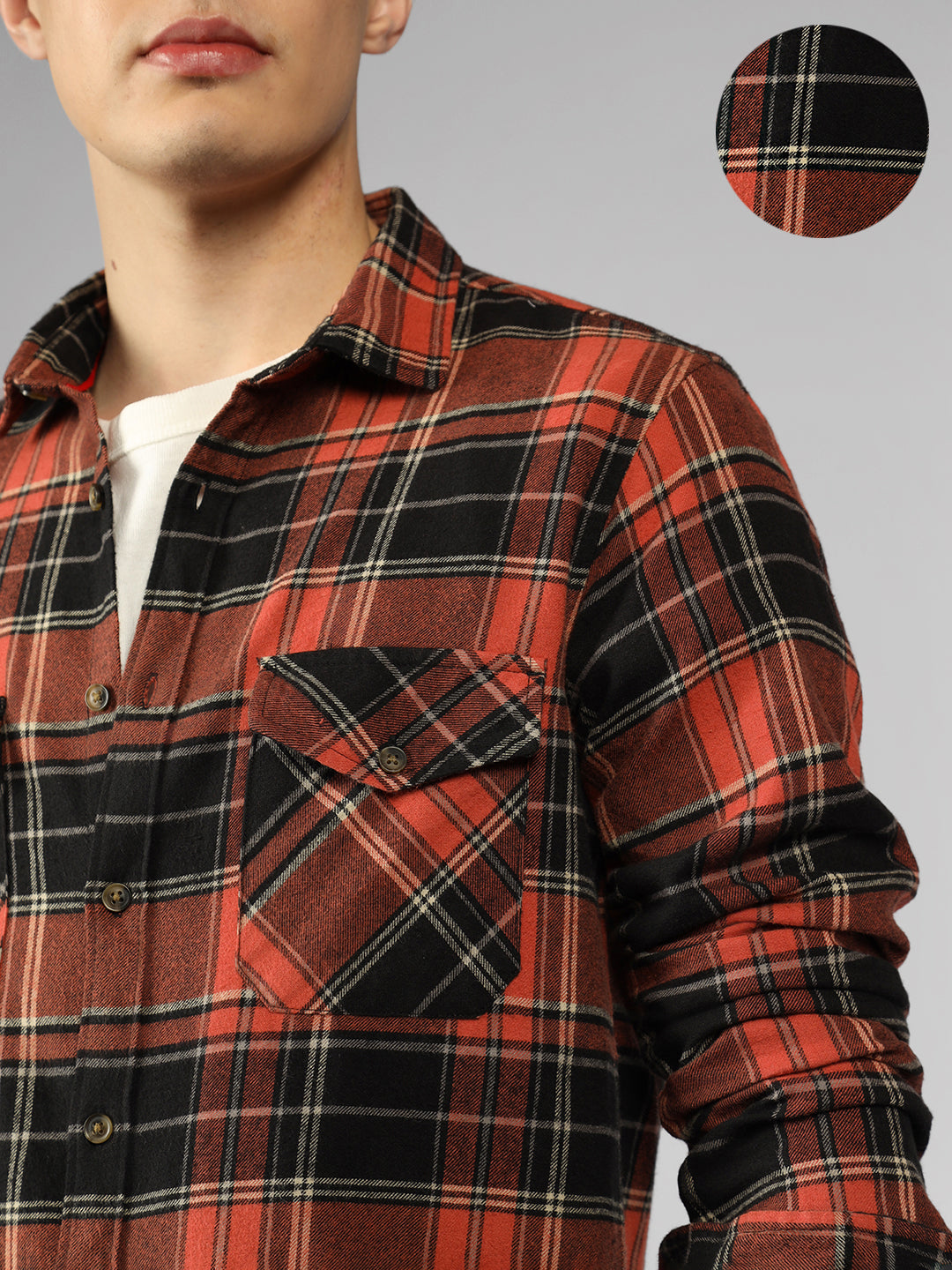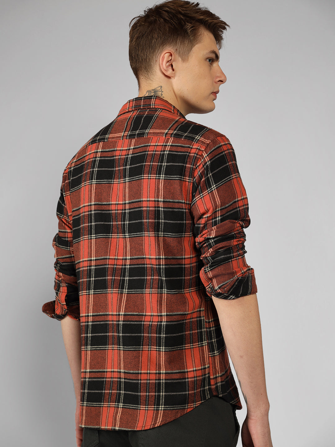 Men's Rust Checks Spread Collar Full Sleeve Relaxed Fit Shirt