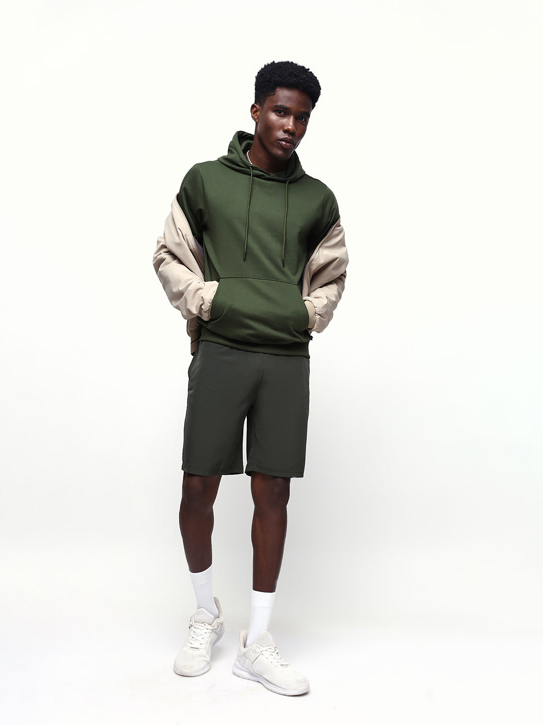Men's Olive Solid Relaxed Fit Casual Shorts