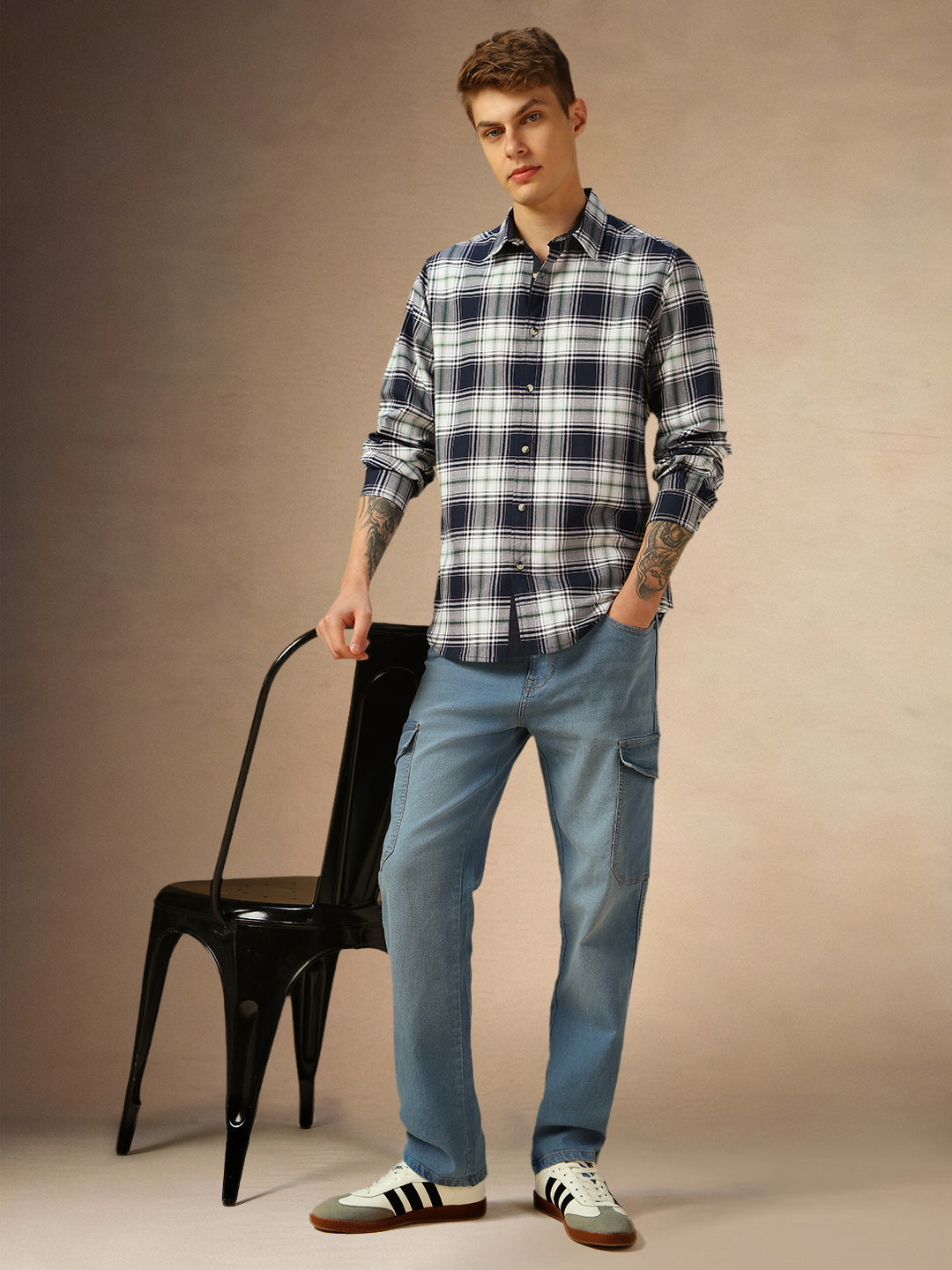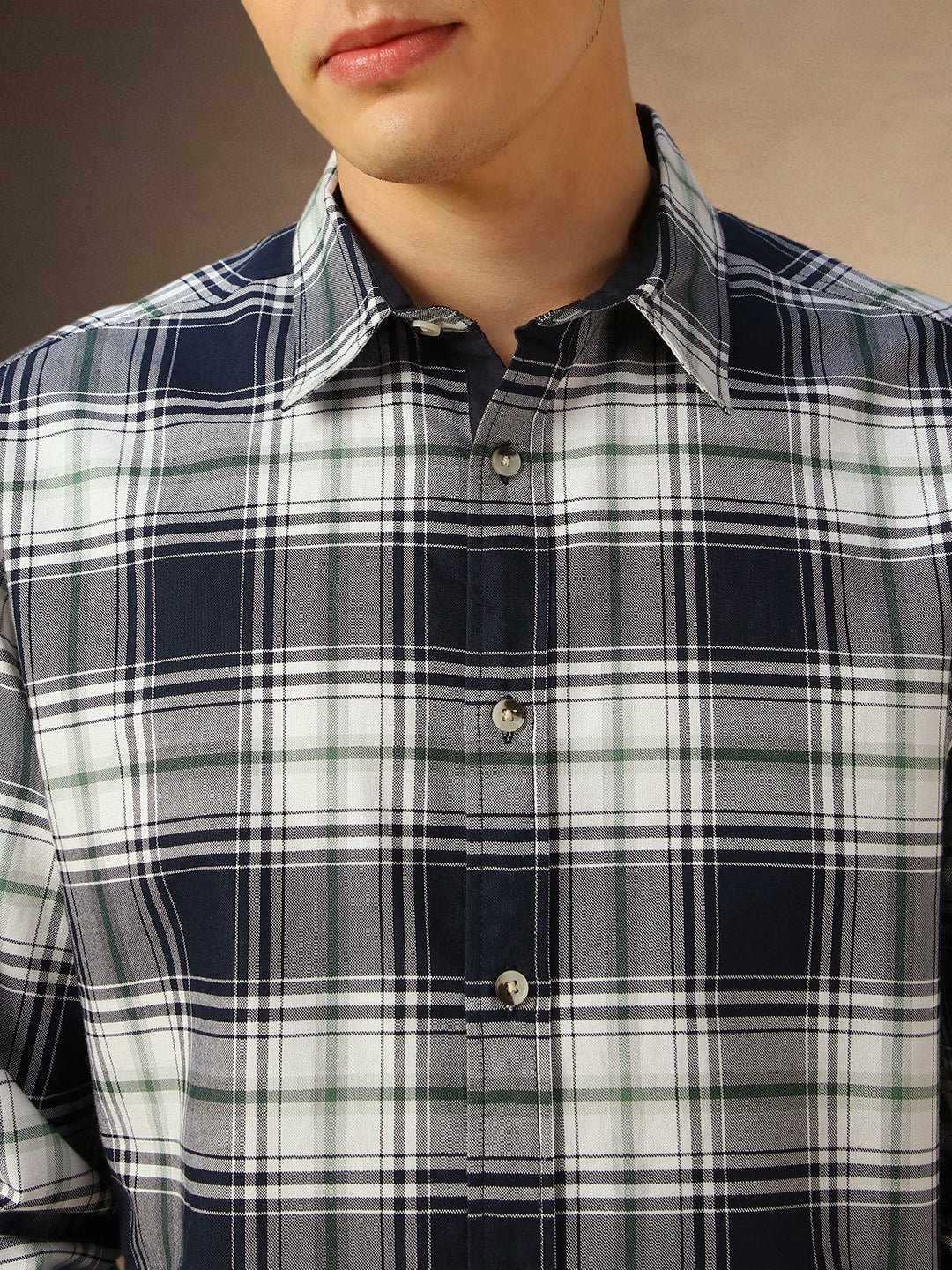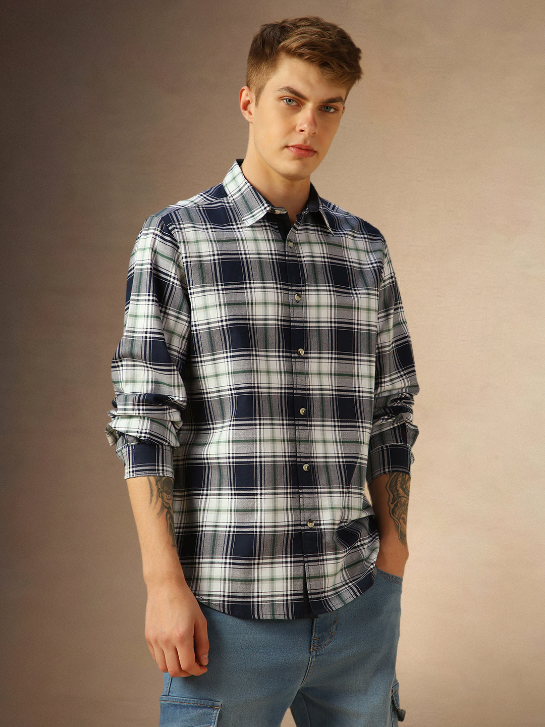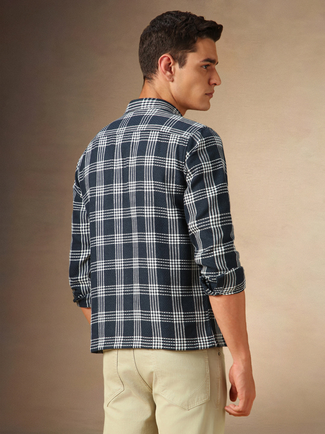 Men's Navy Checks Spread Collar Full Sleeves Casual Shirt