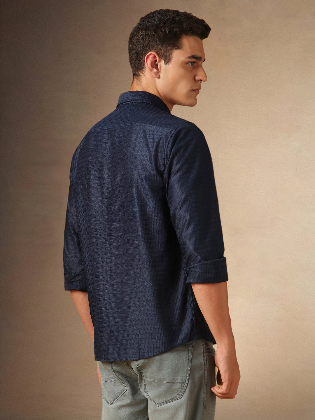 Men's Solid Spread Collar Full Sleeves Relaxed Fit Casual Shirt