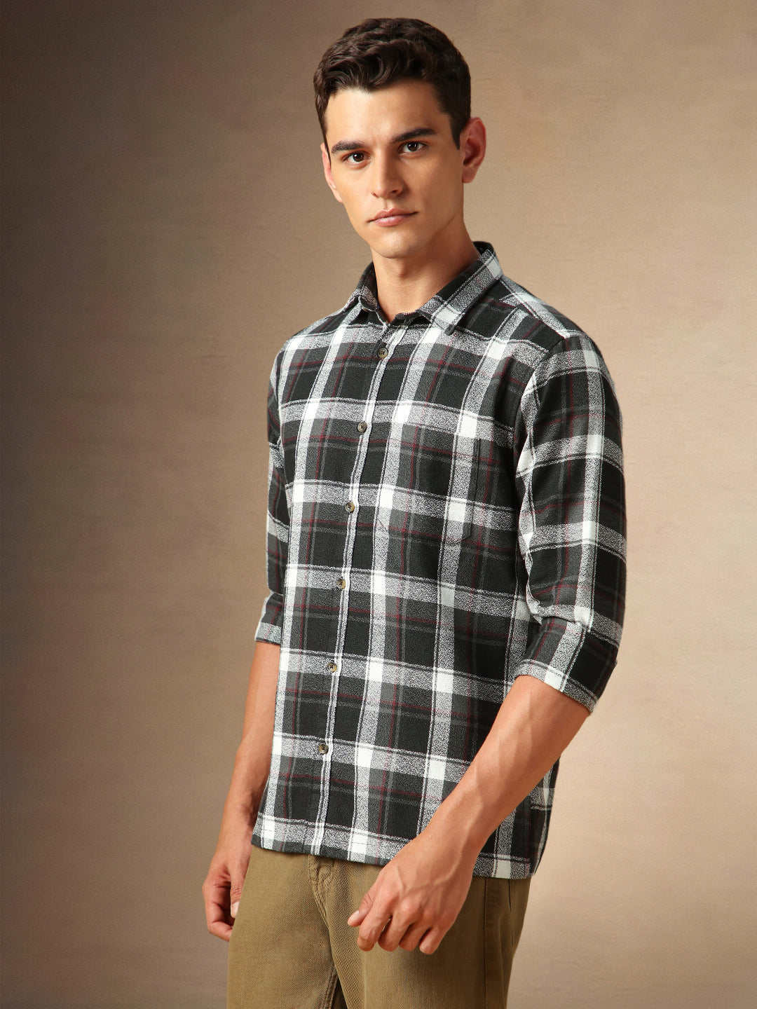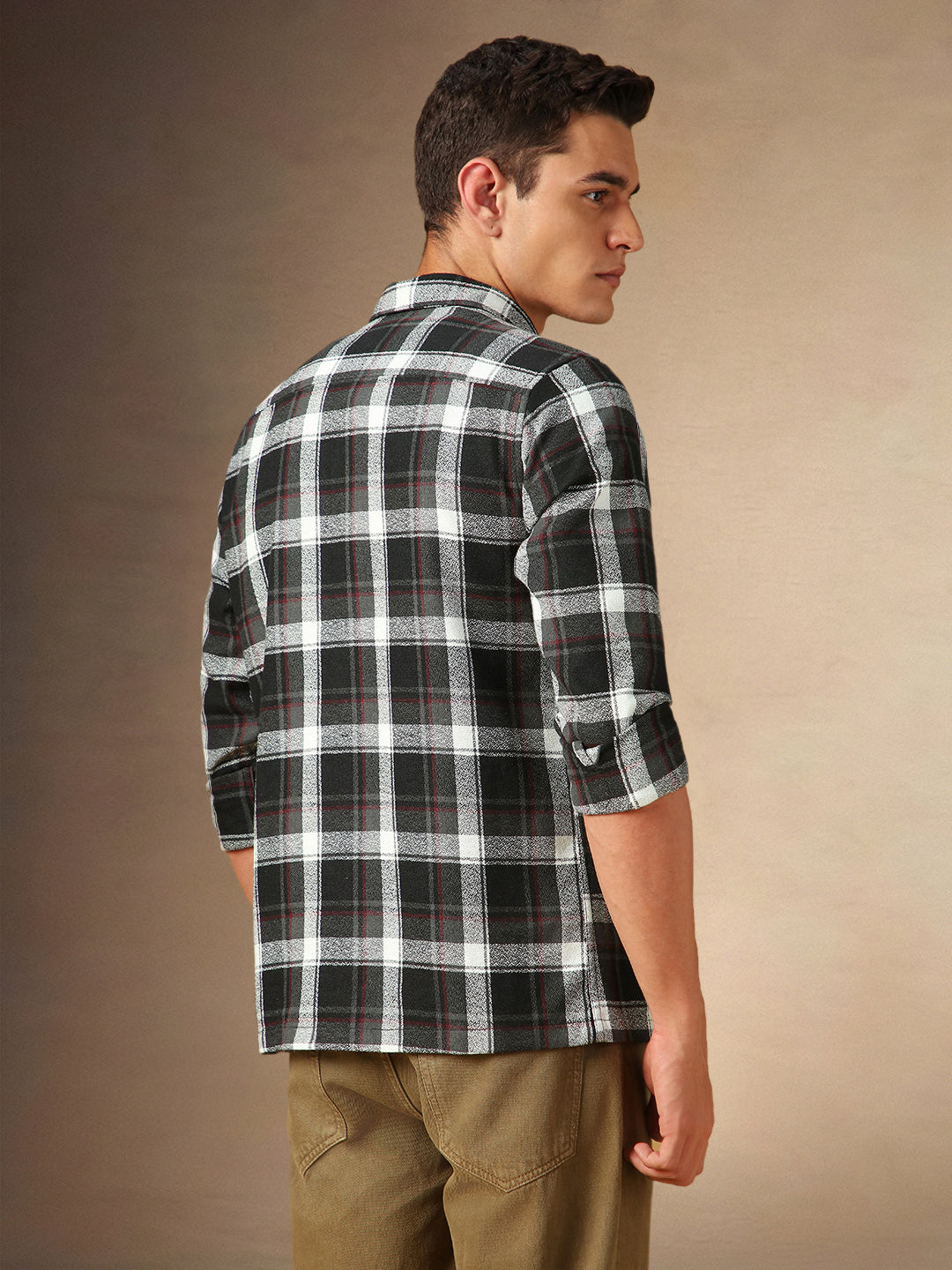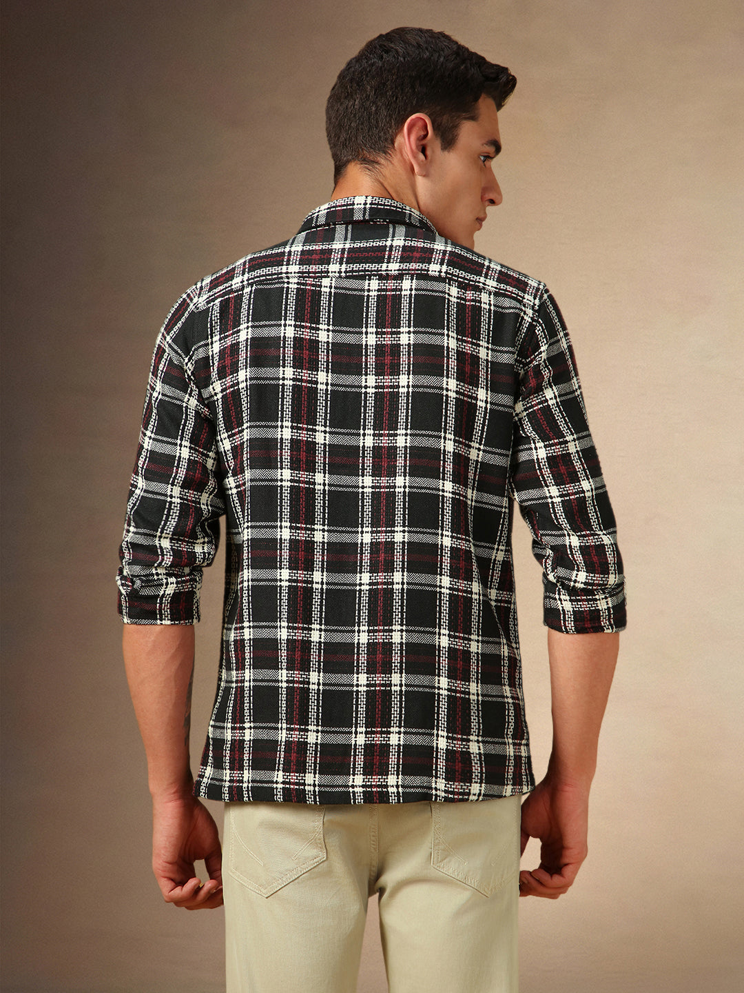Men's Black Checks Spread Collar Full Sleeves Casual Shirt
