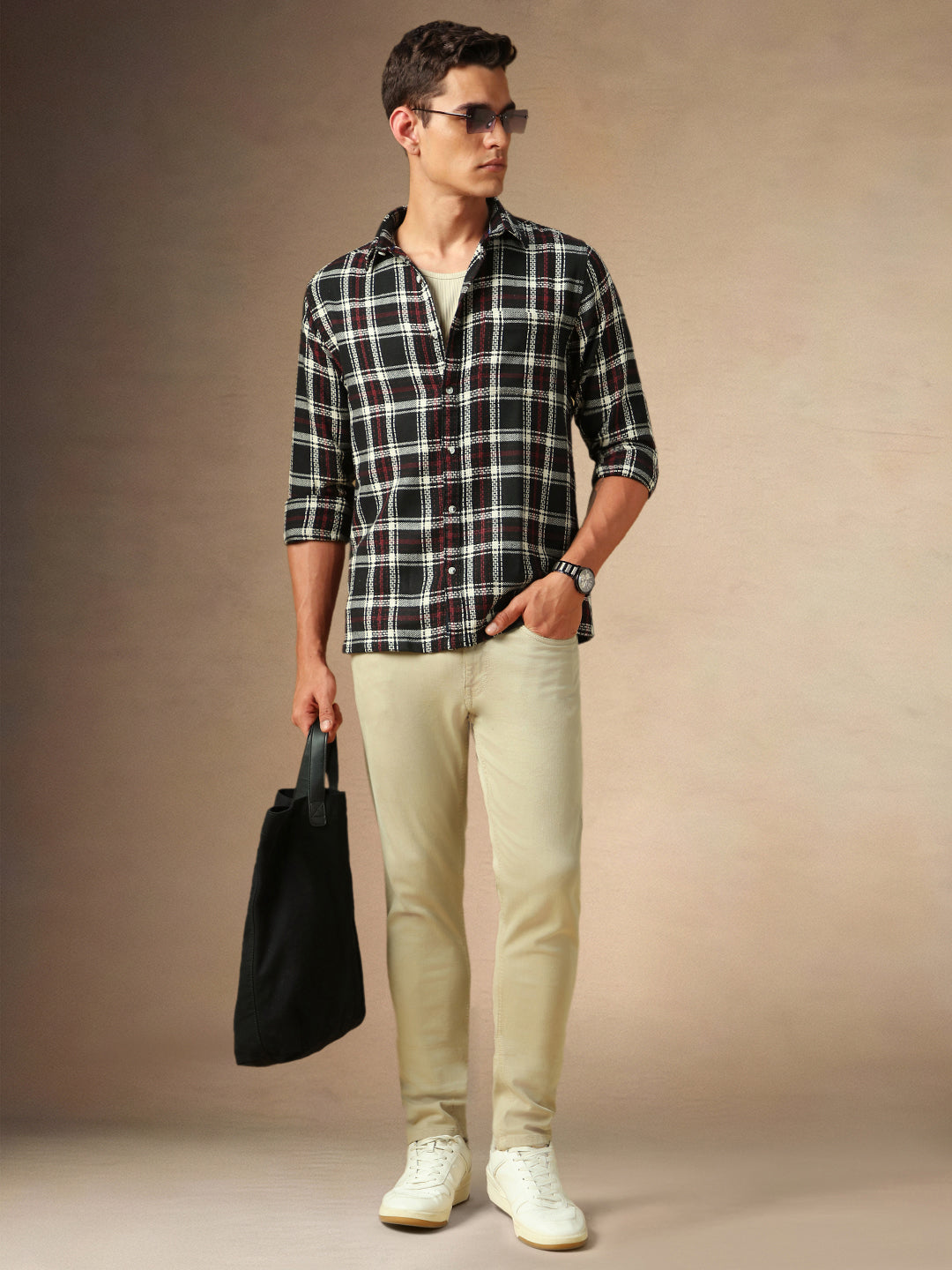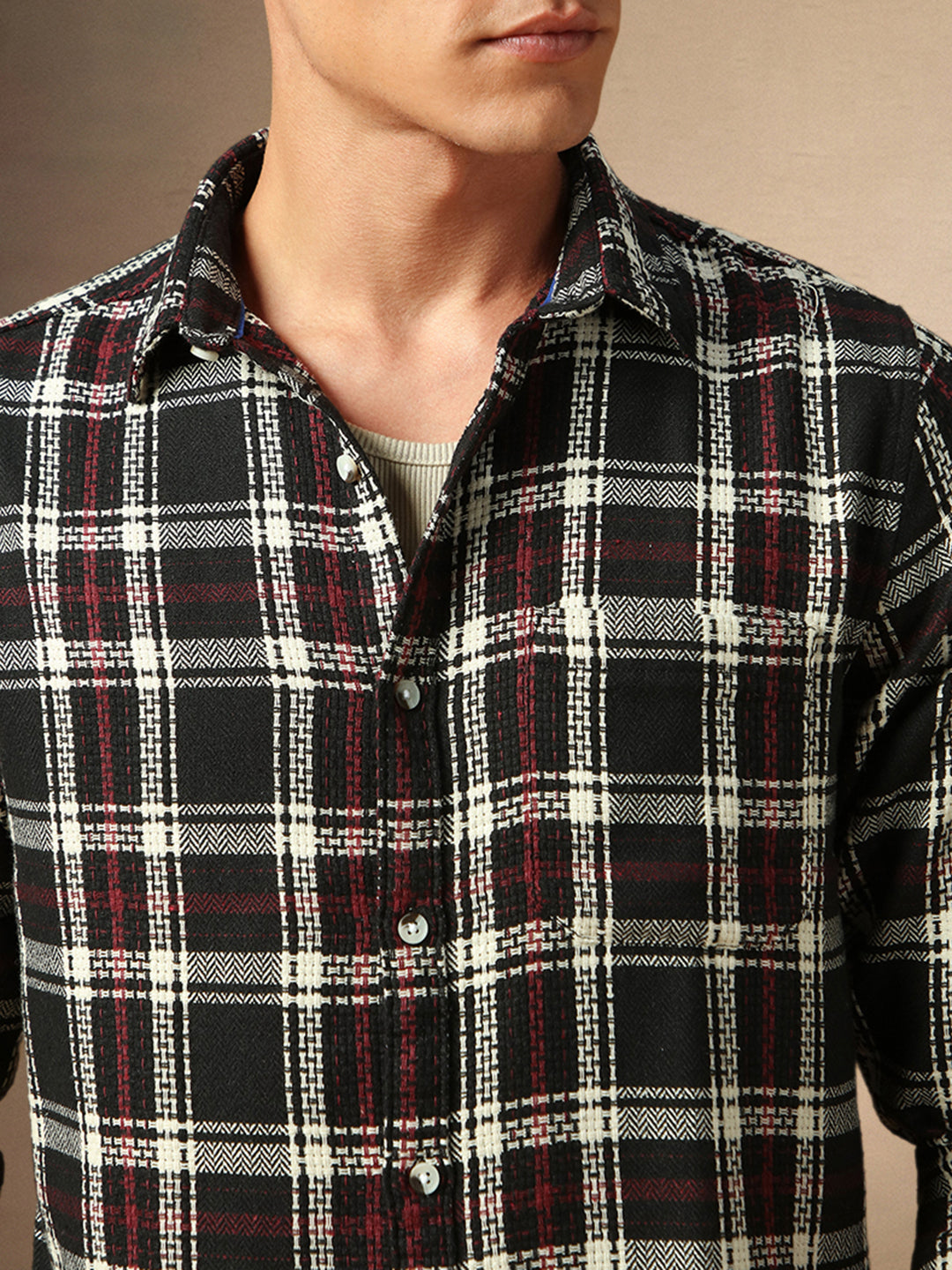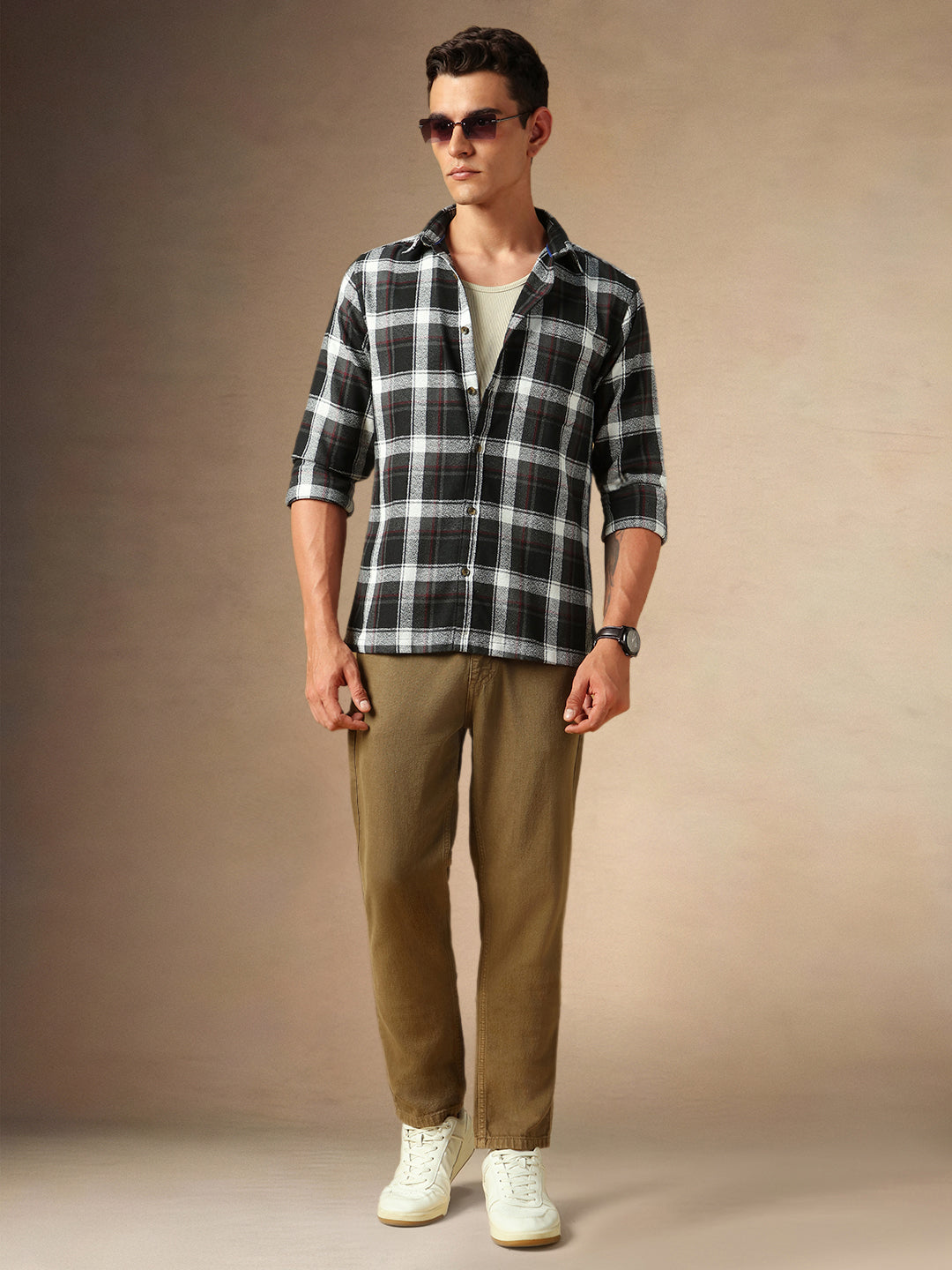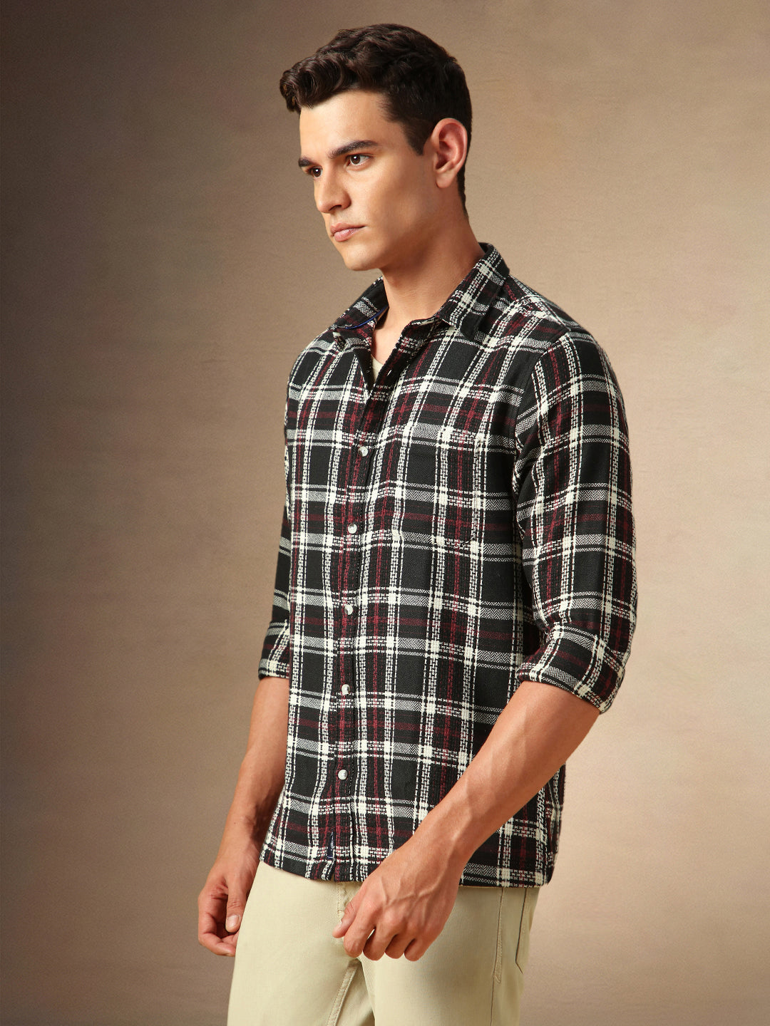 Men's Black Checks Spread Collar Full Sleeves Casual Shirt