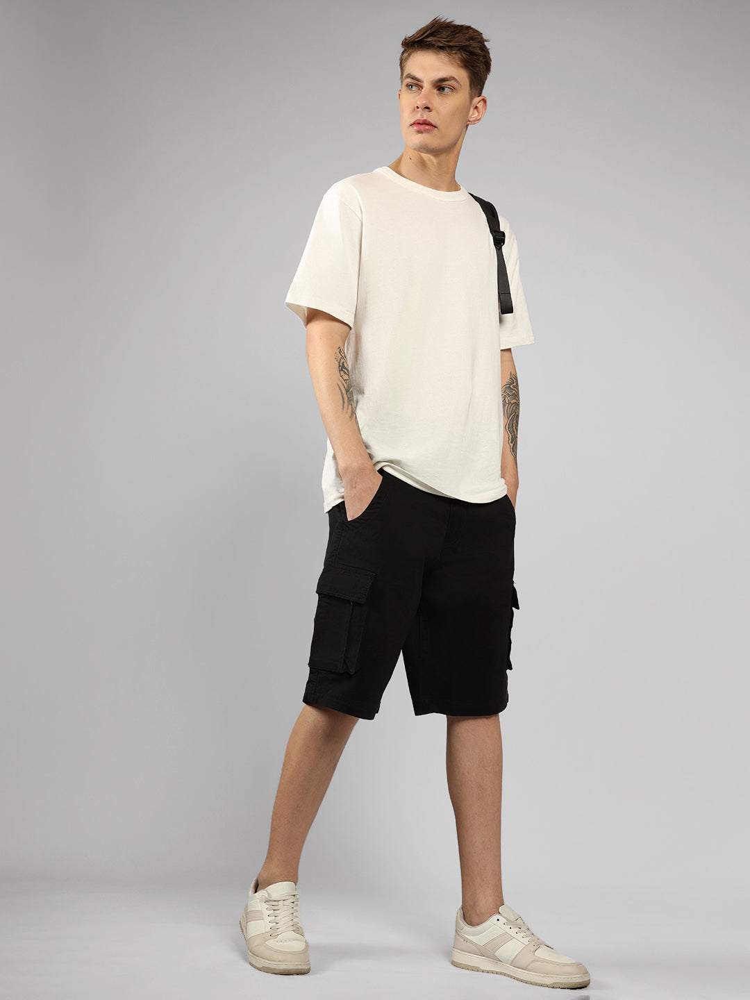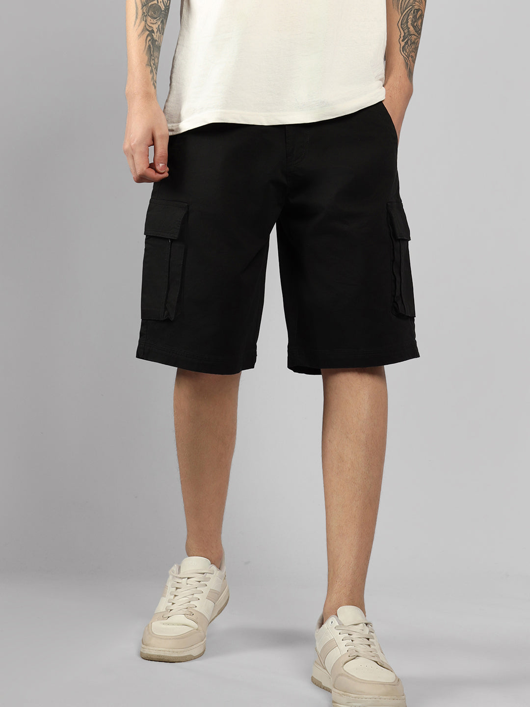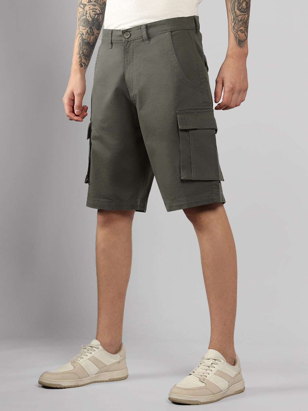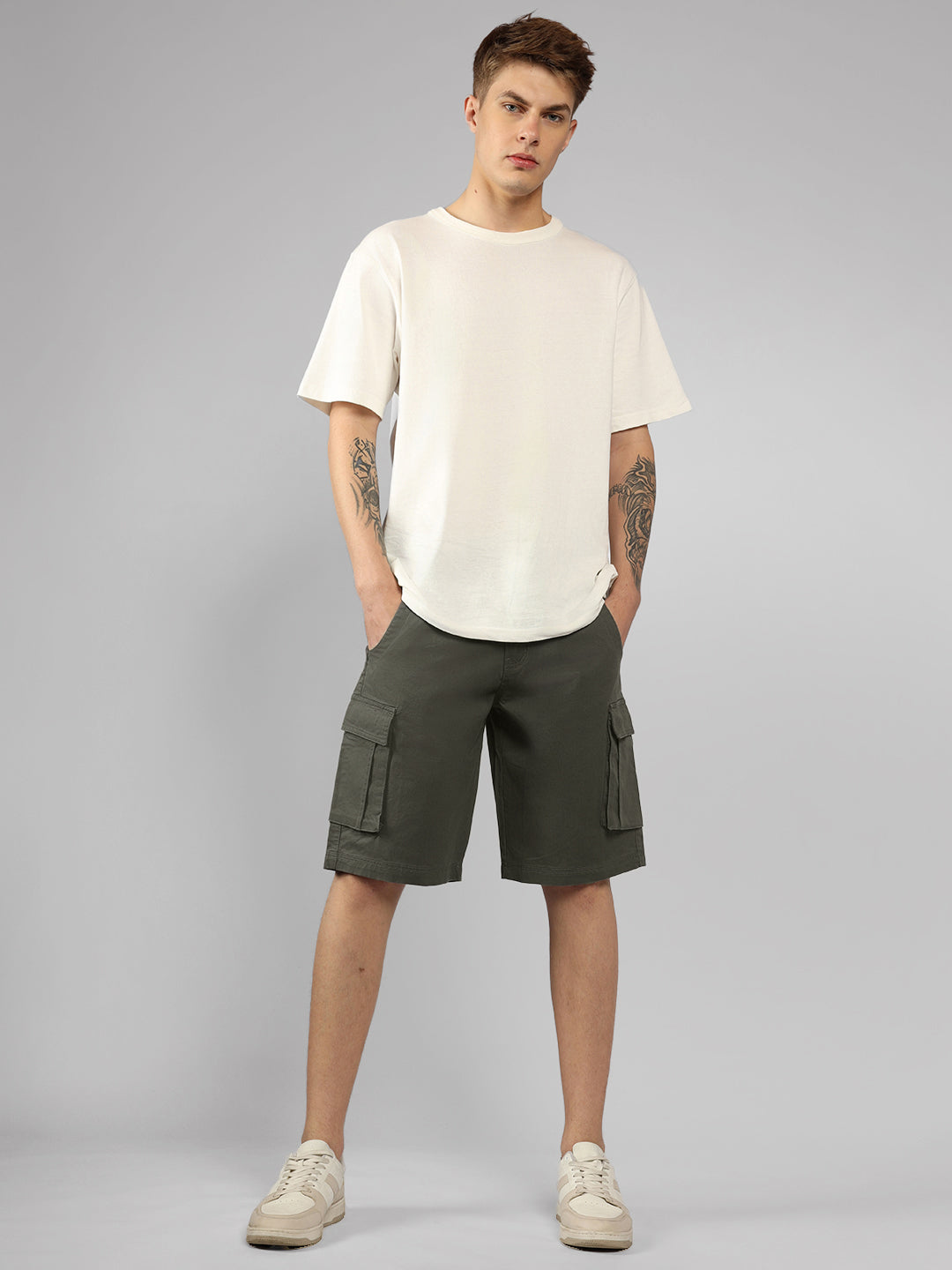 Men's Light Grey Solid Relaxed Fit Shorts