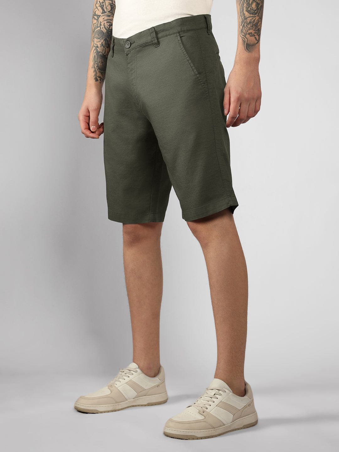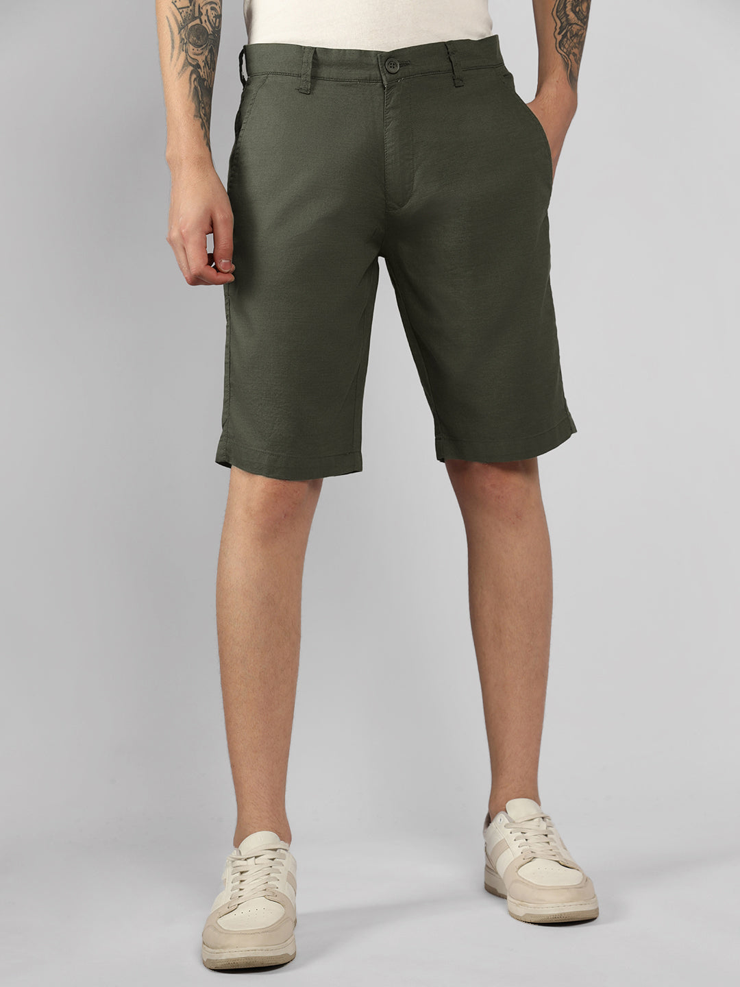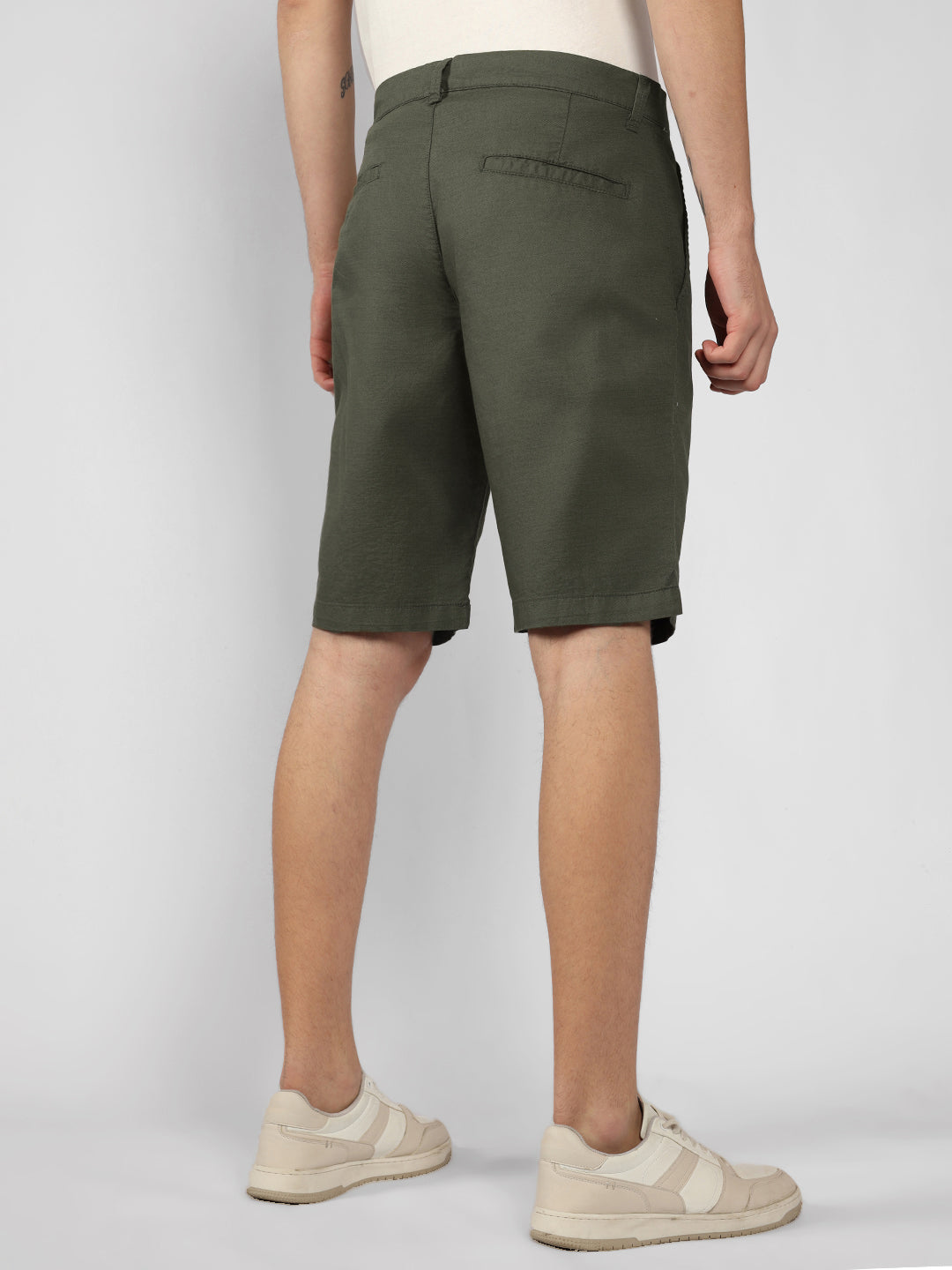 Men's Olive Solid Regular Fit Shorts