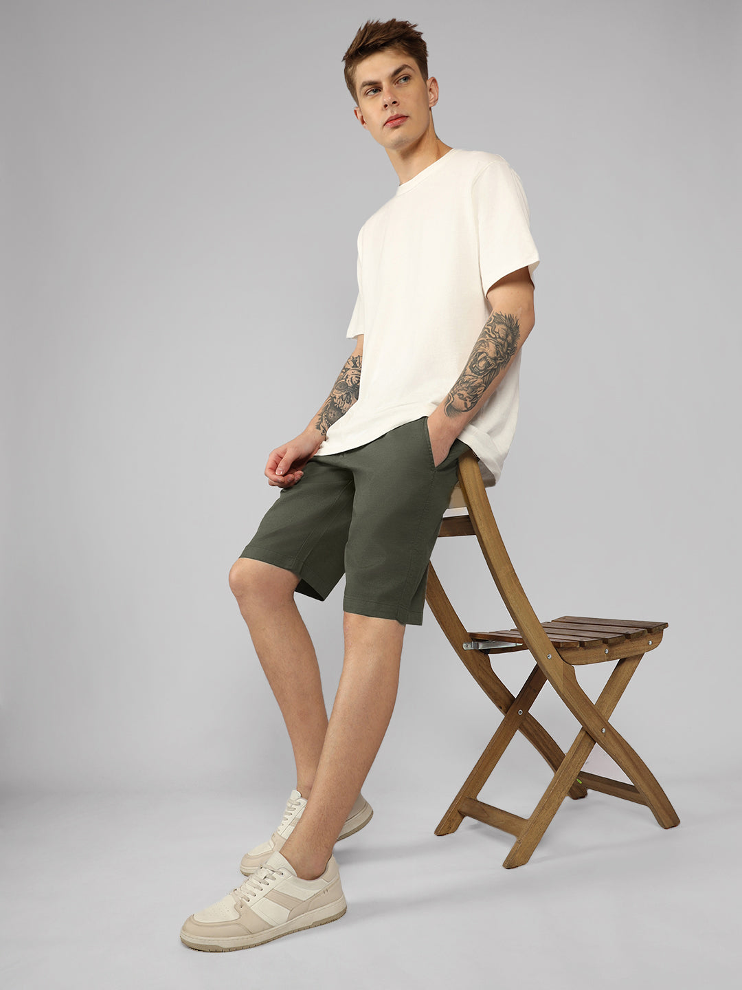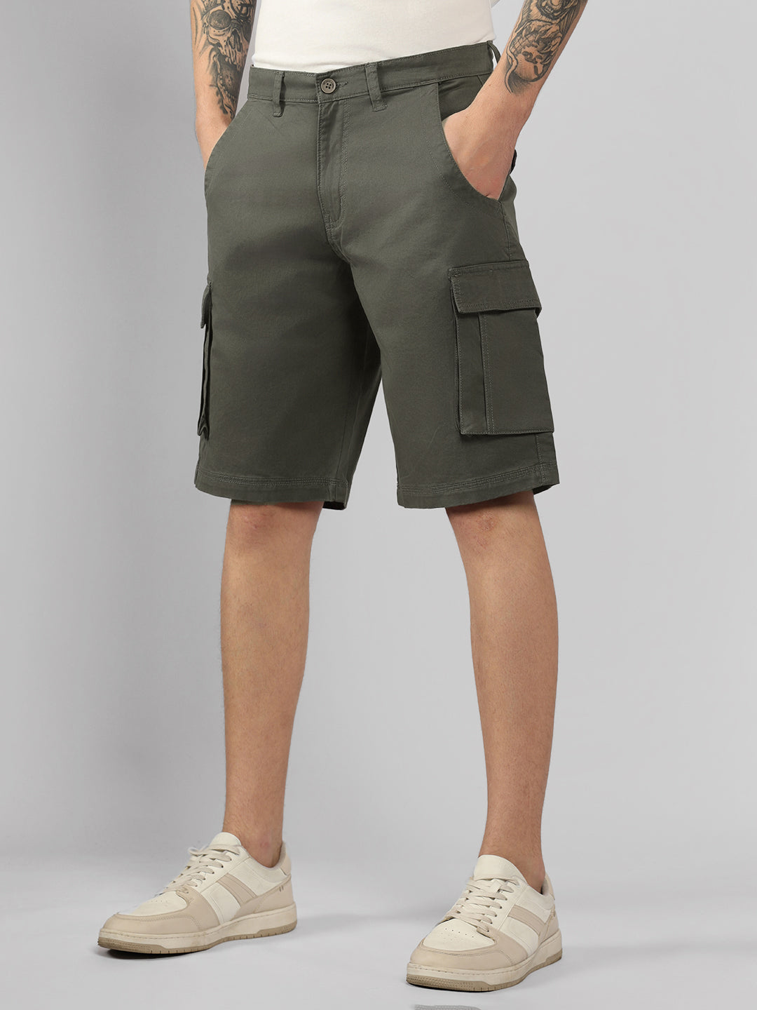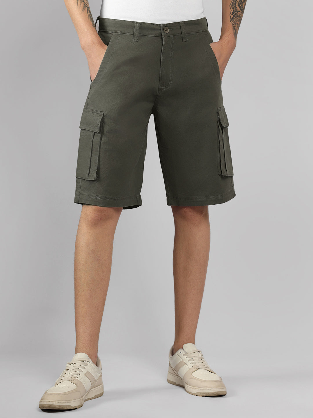 Men's Olive Solid Regular Fit Shorts