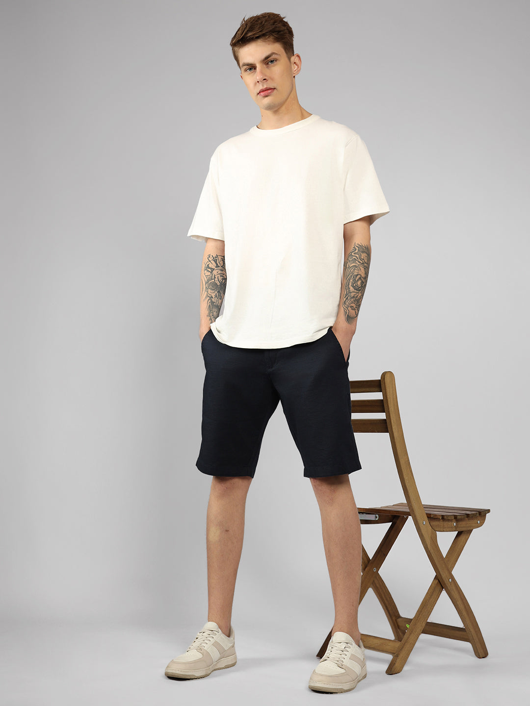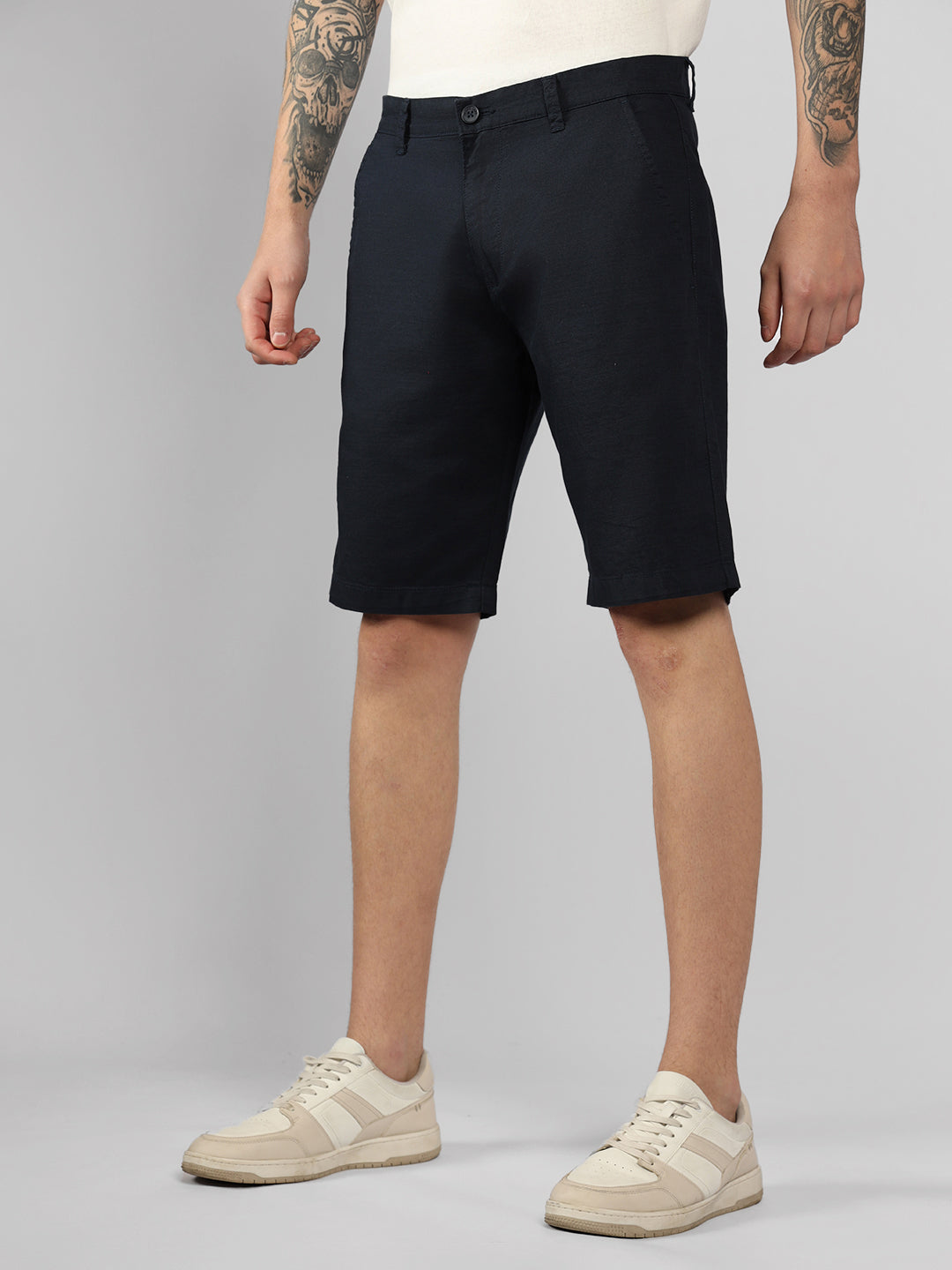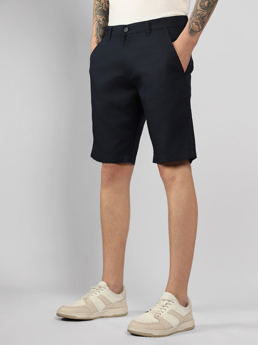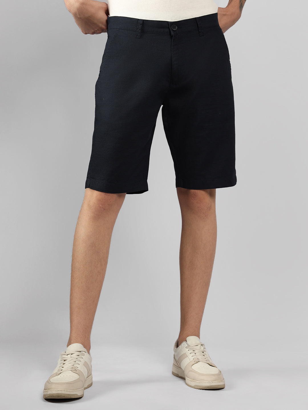 Men's Navy Solid Regular Fit Shorts