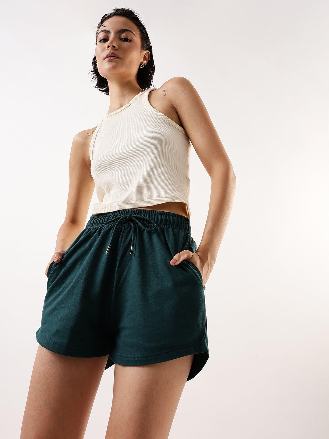 Men's Olive Solid Relaxed Fit Casual Shorts