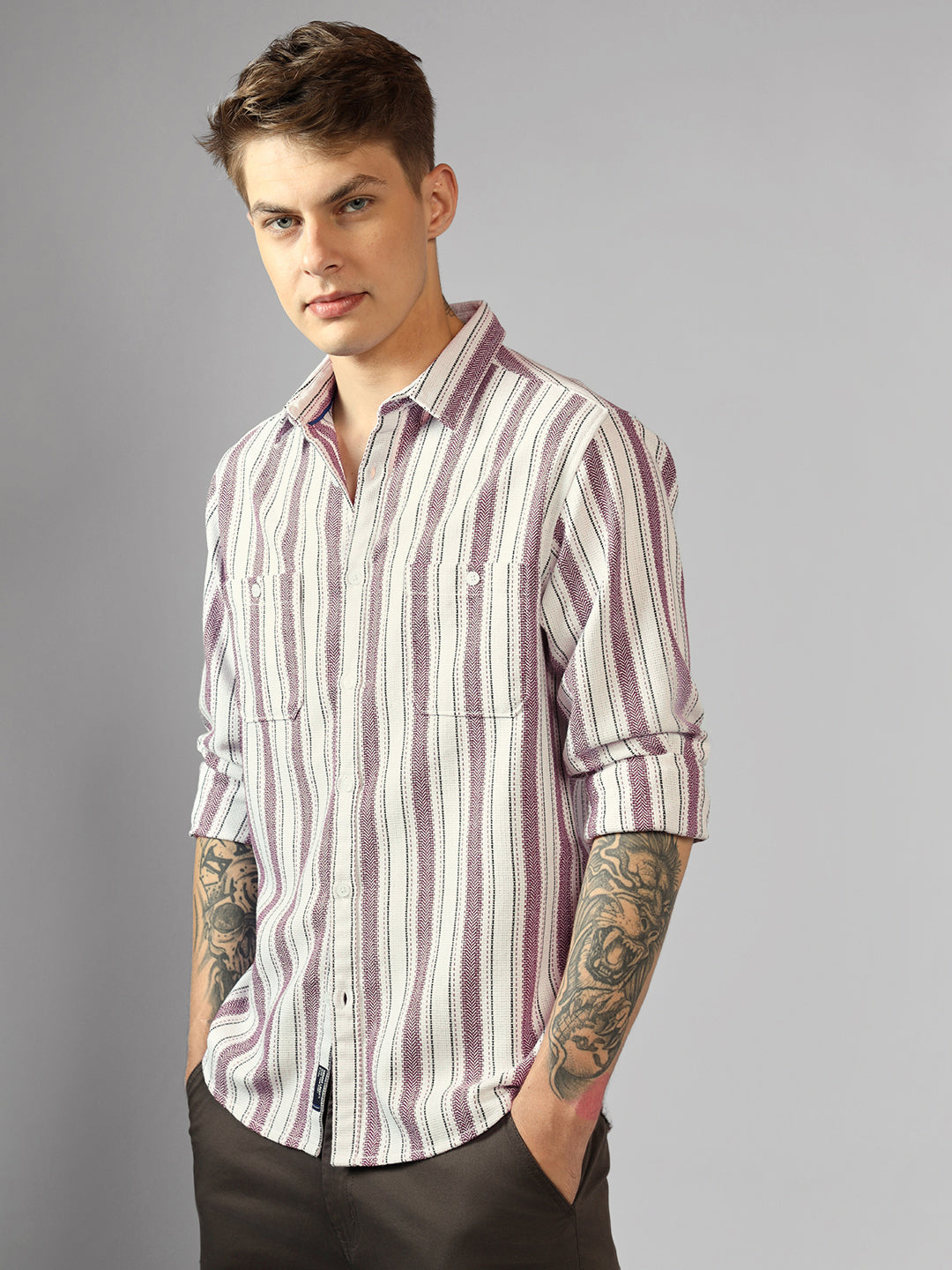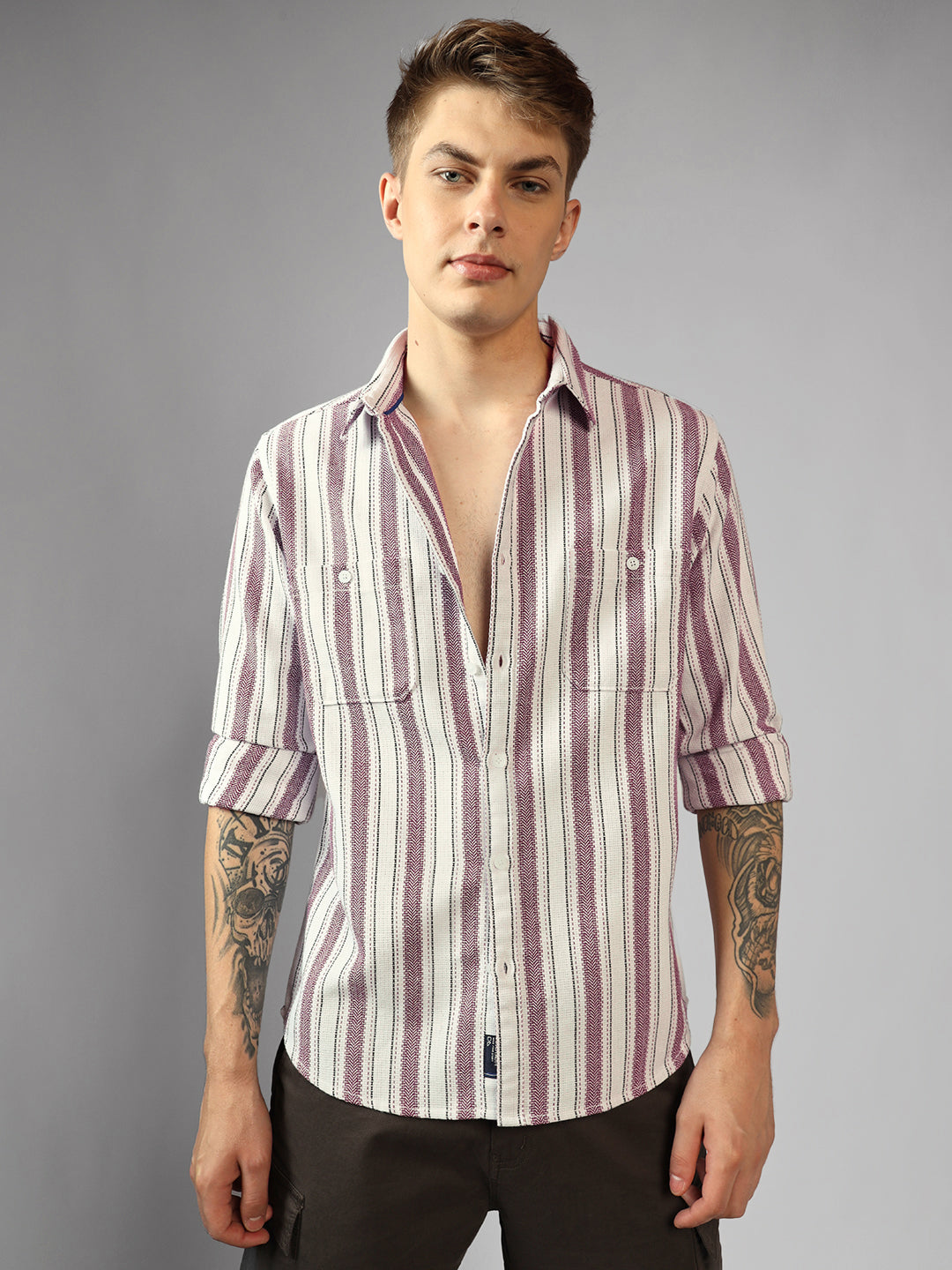 Men's Cotton Striped Slim Fit Casual Full Sleeve Shirt