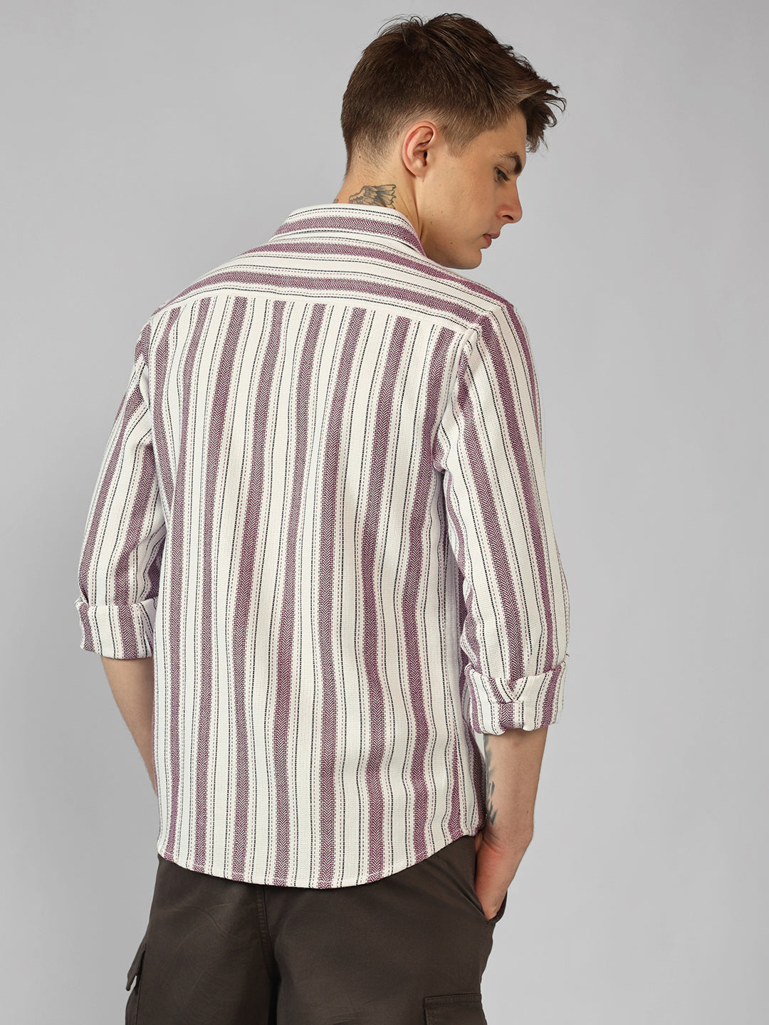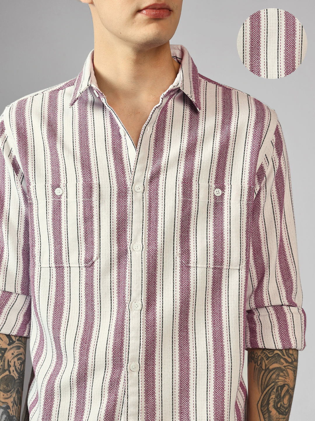 Men's Maroon Striped Spread collar Full Sleeves Shirt