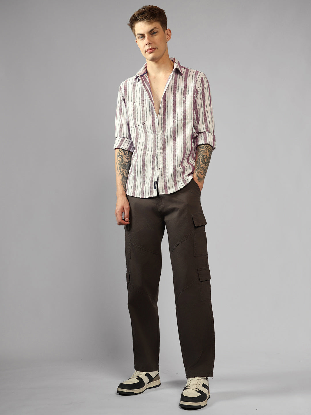 Men's Stripes Brown Slim Fit Cotton Casual Shirt