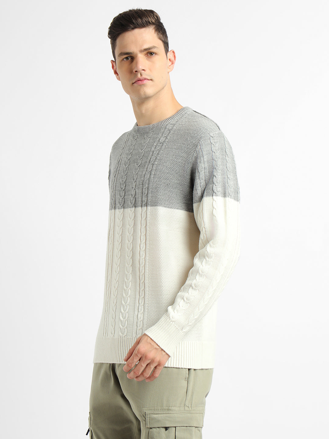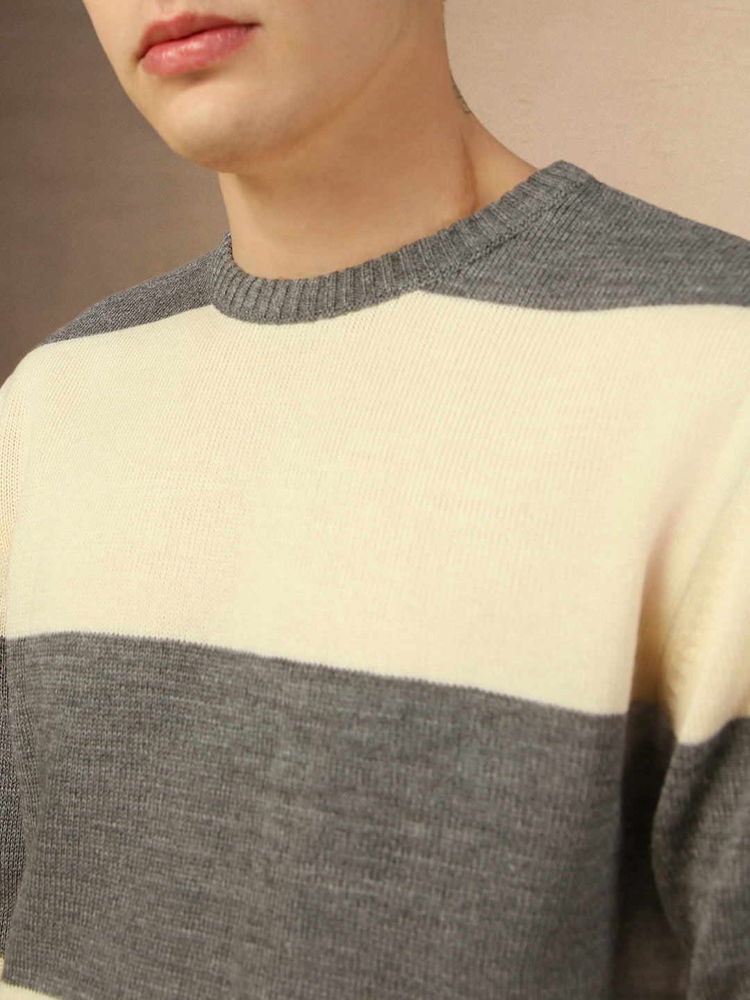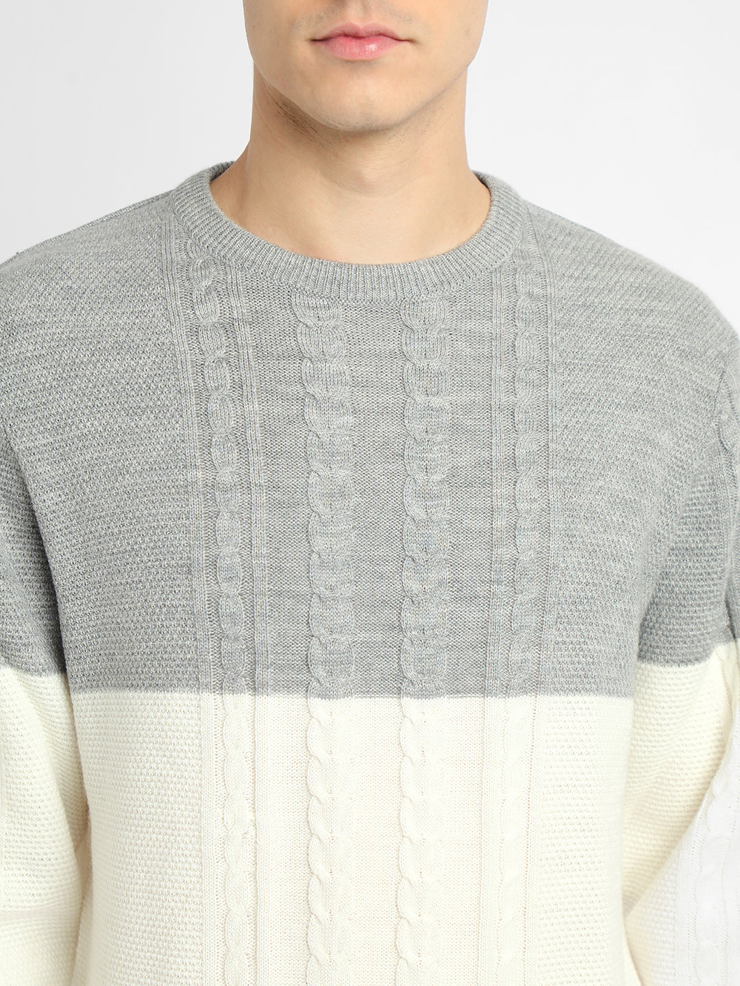 Men's Light Grey ColorBlock Round Neck Pullover Sweater