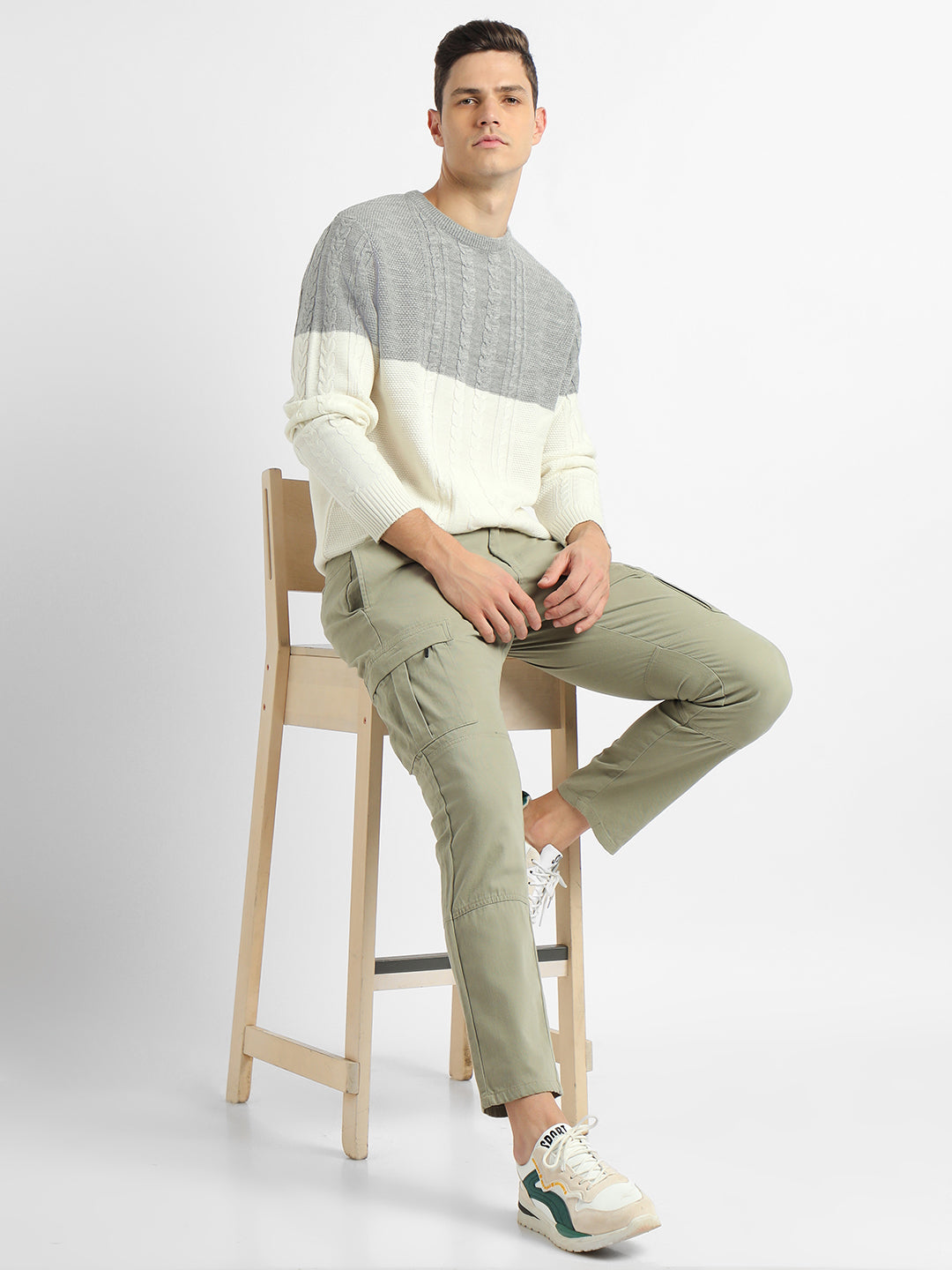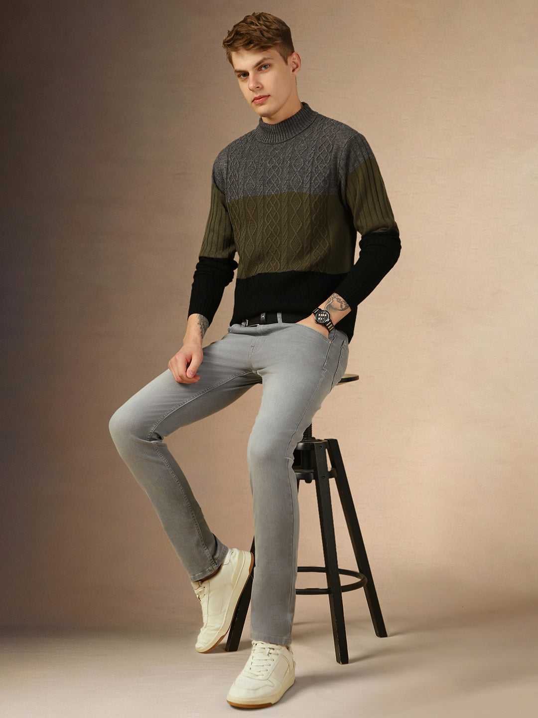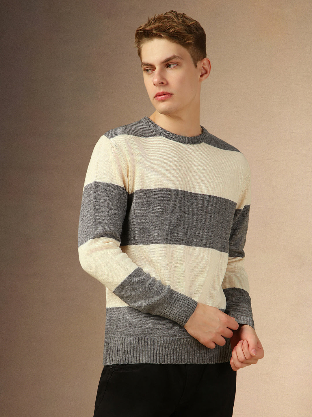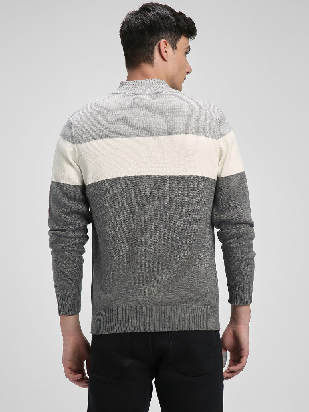 Men's Light Grey ColorBlock Round Neck Pullover Sweater