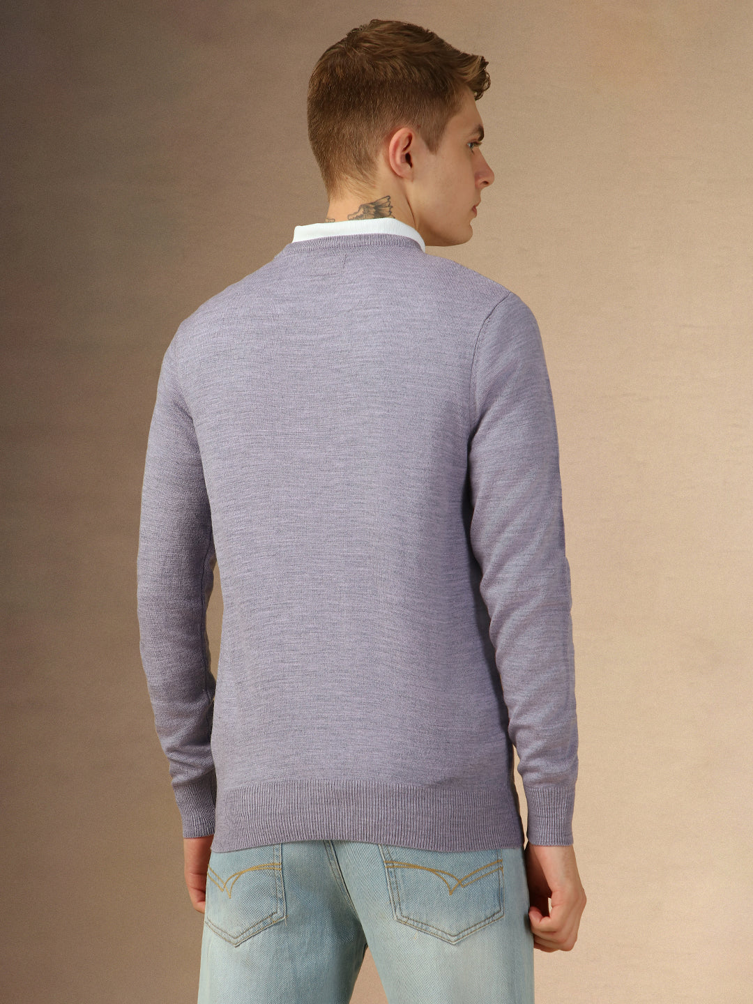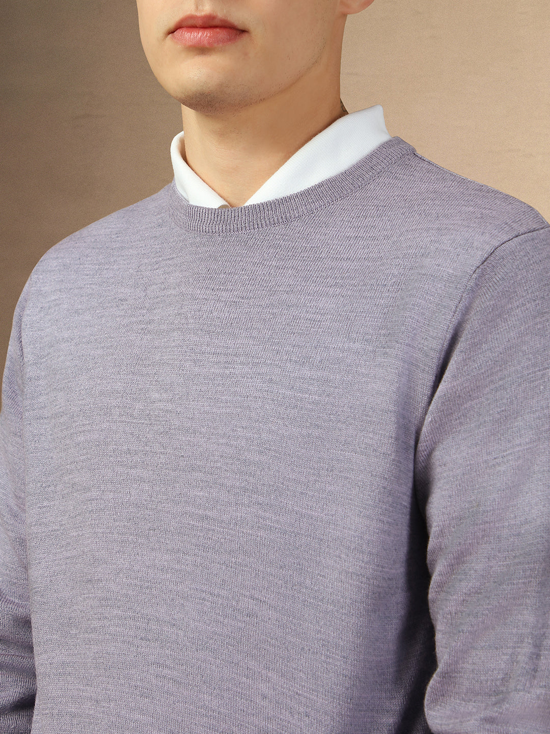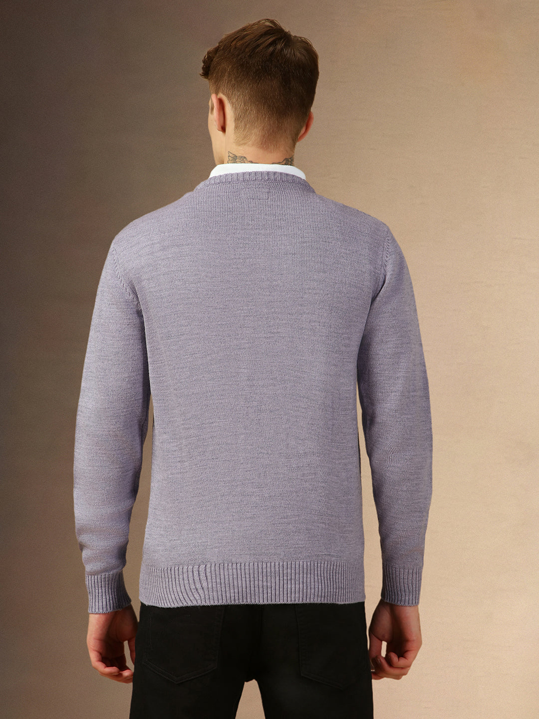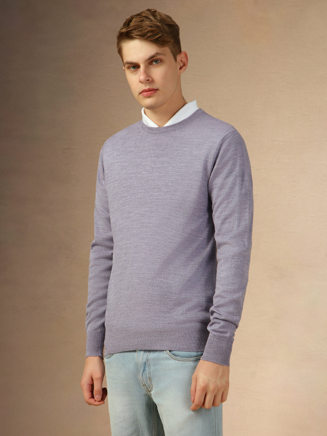 Men's Lavender Crew Neck Full Sleeves Slim Fit Pullover Sweater
