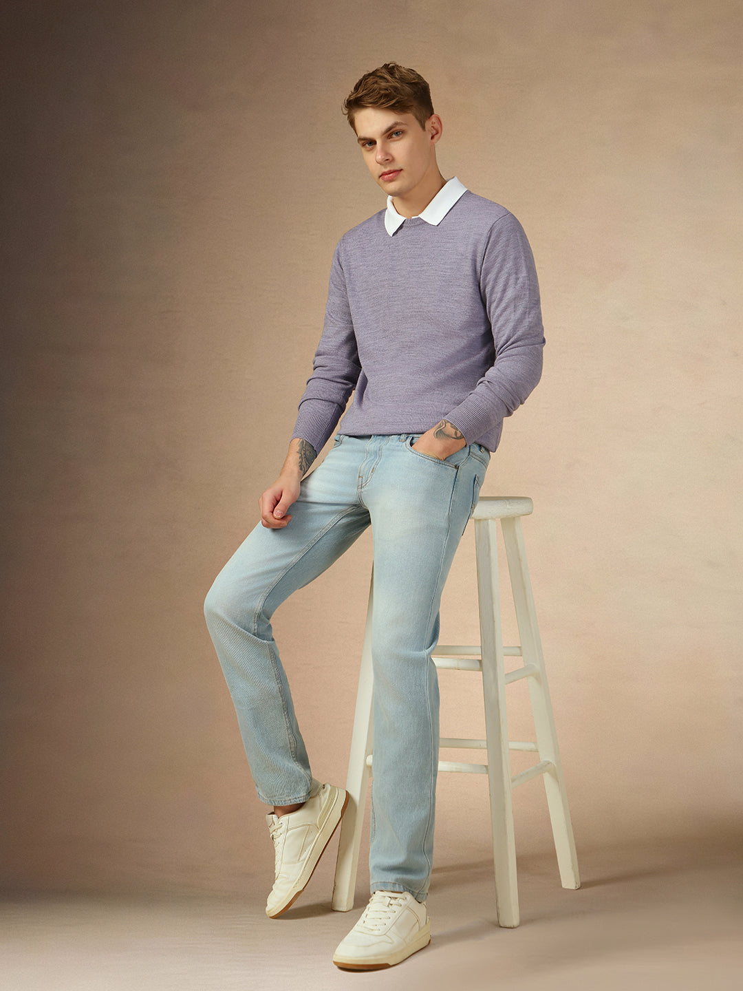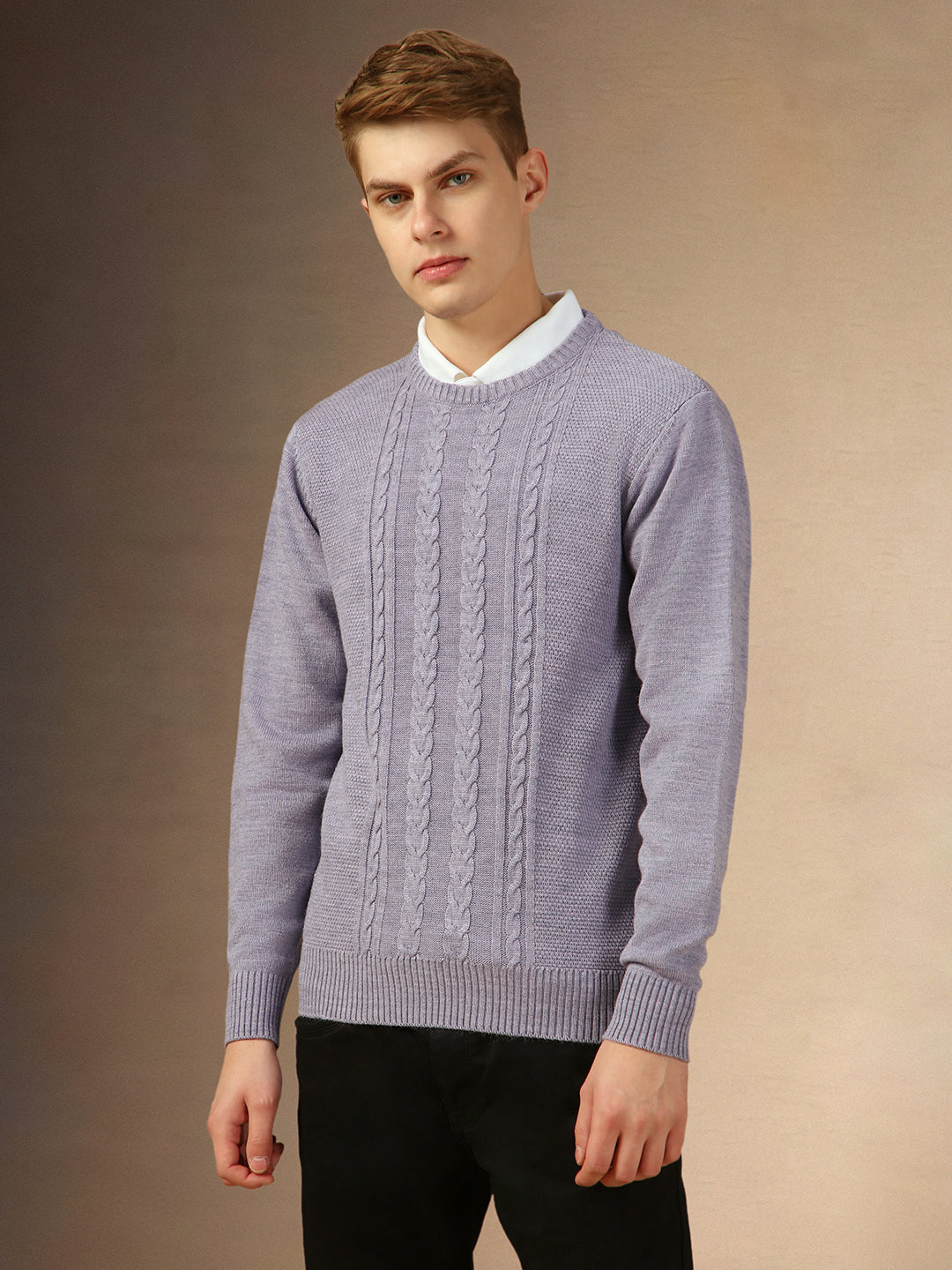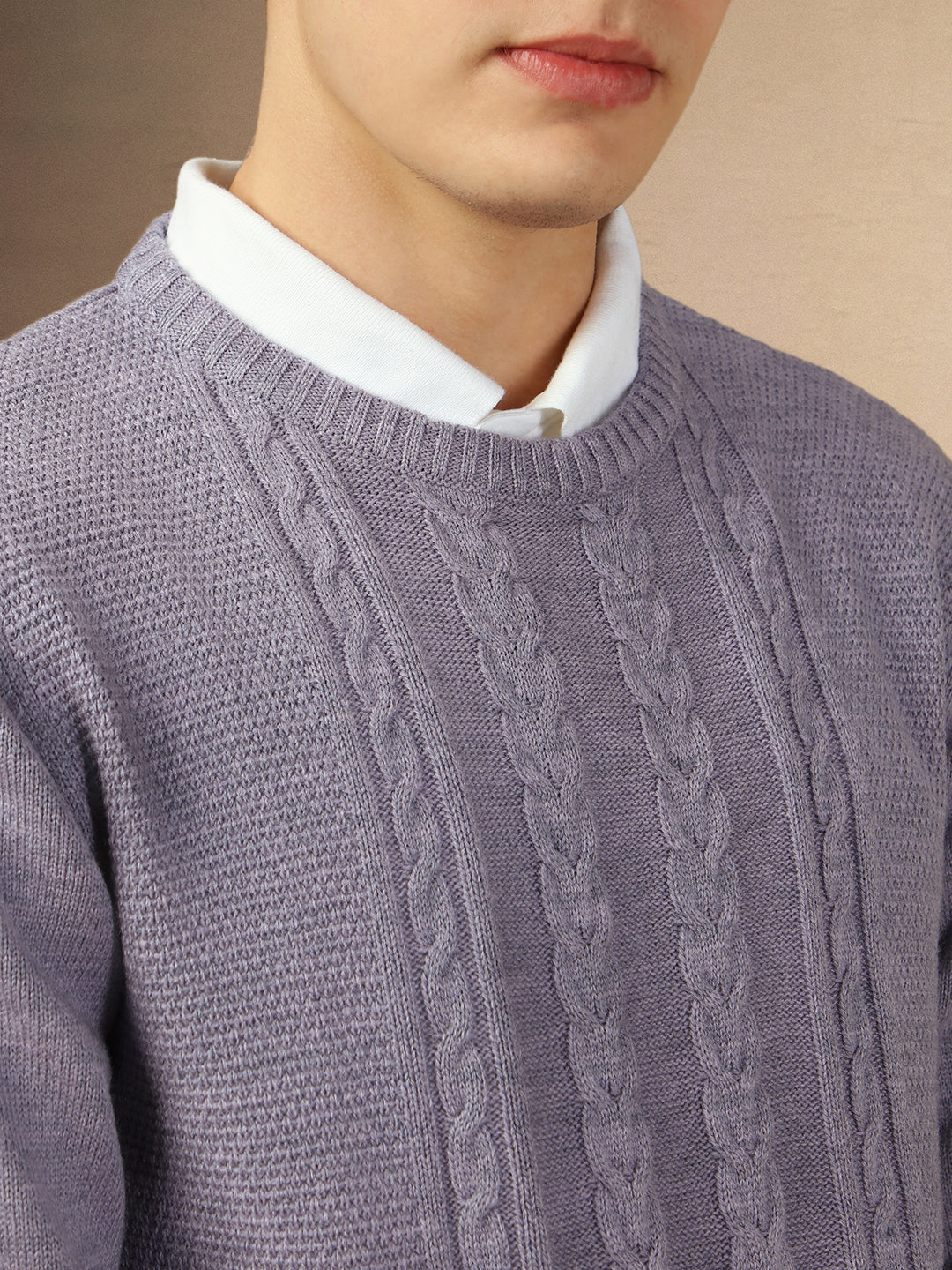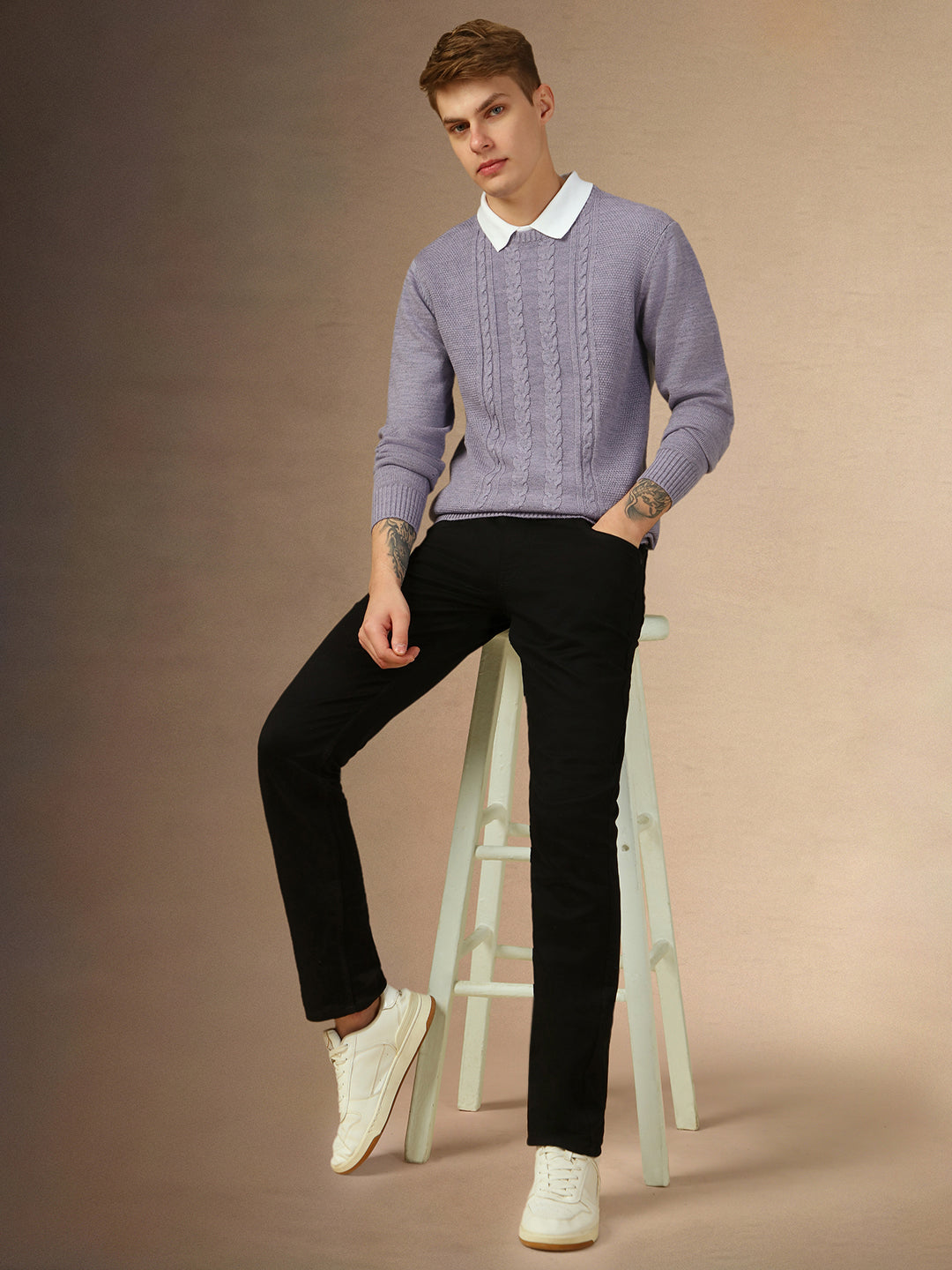 Men's Lavender Crew Neck Full Sleeves Slim Fit Pullover Sweater