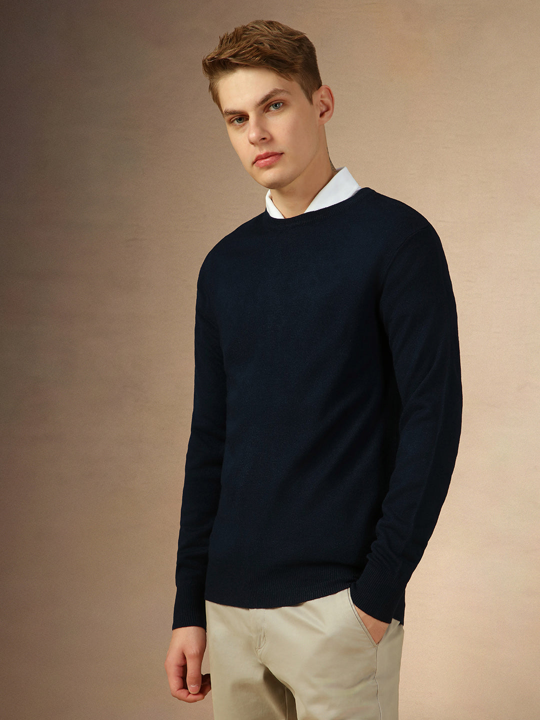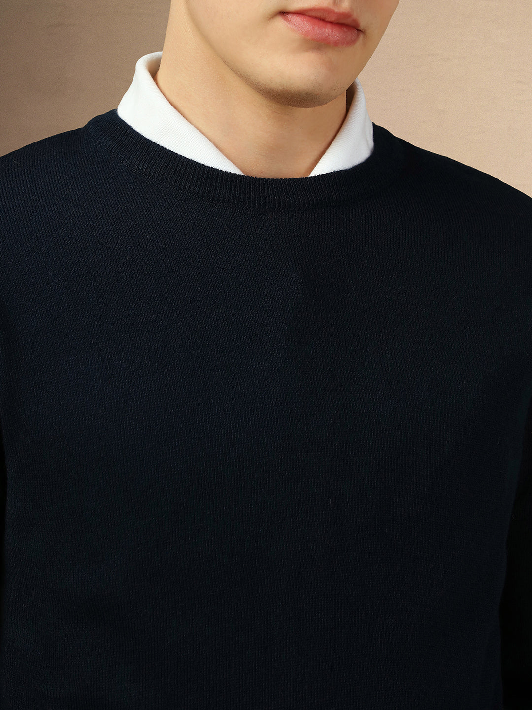 Men's Navy Crew Neck Full Sleeves Slim Fit Pullover Sweater