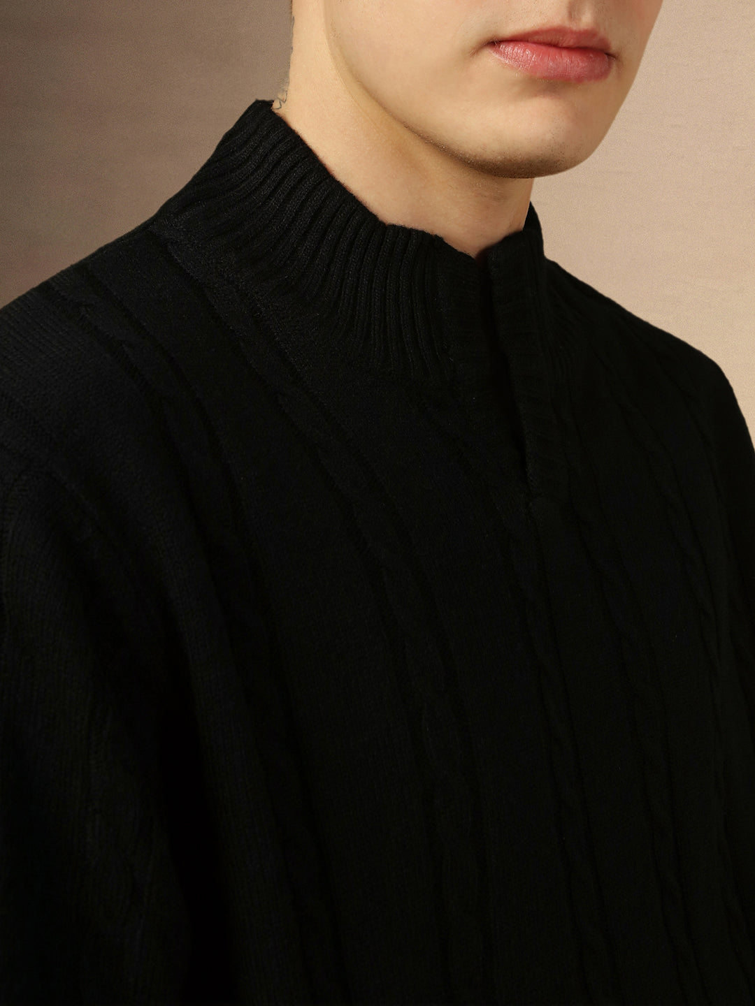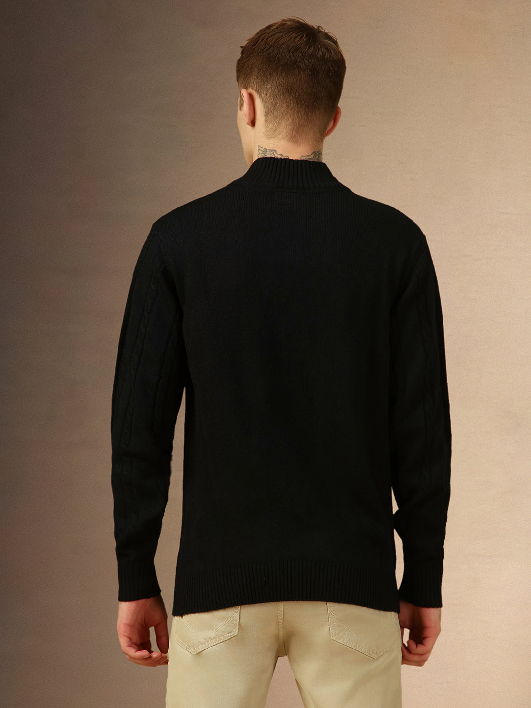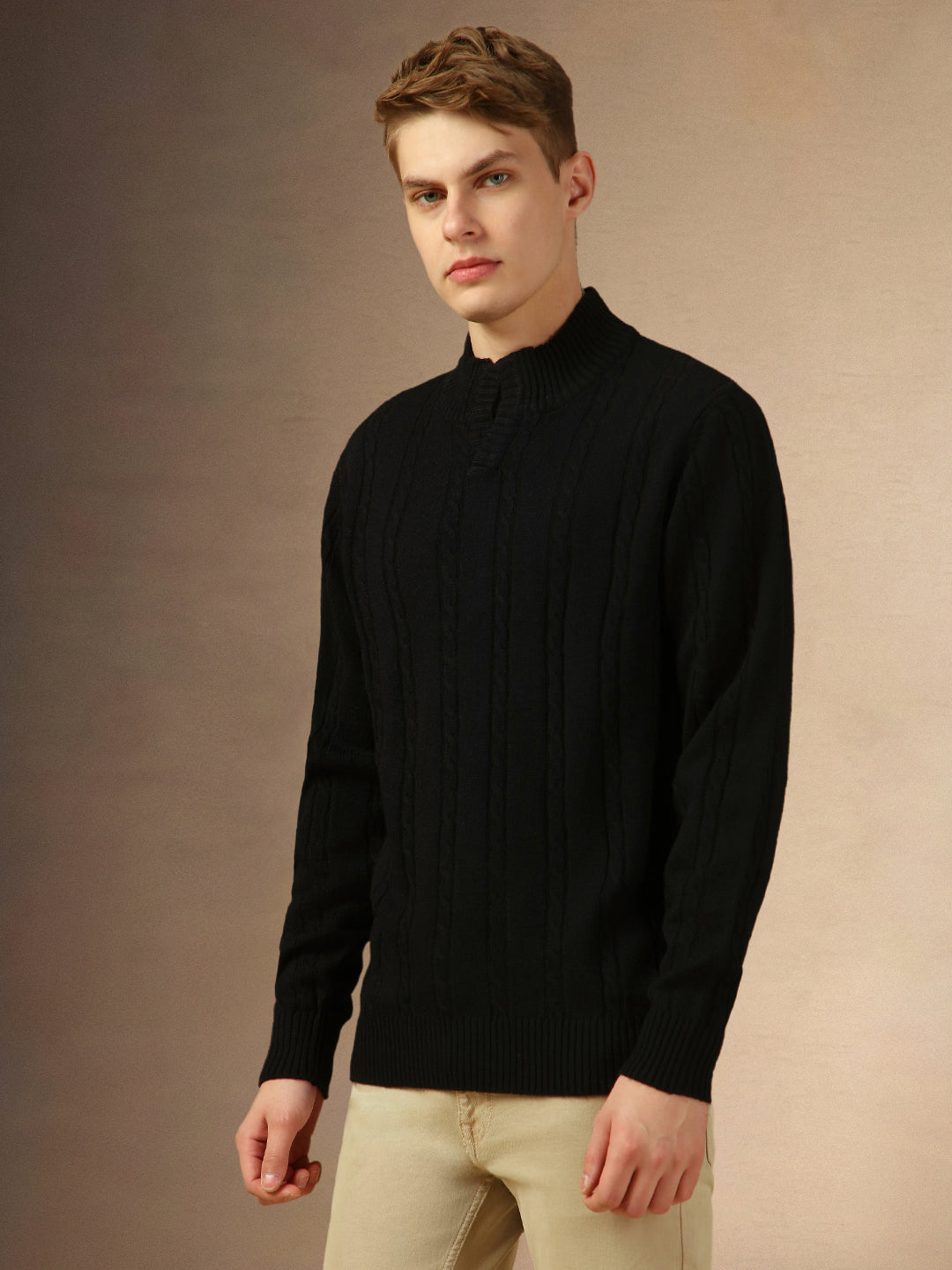 Men's Black Mock Neck Full Sleeves Slim Fit Pullover Sweater