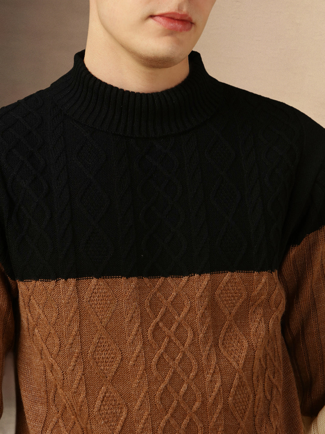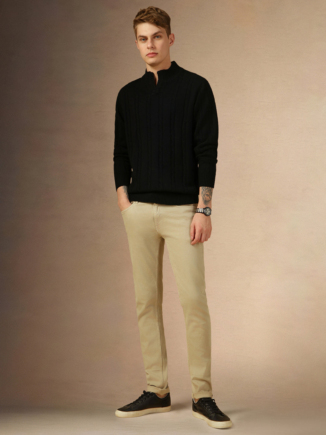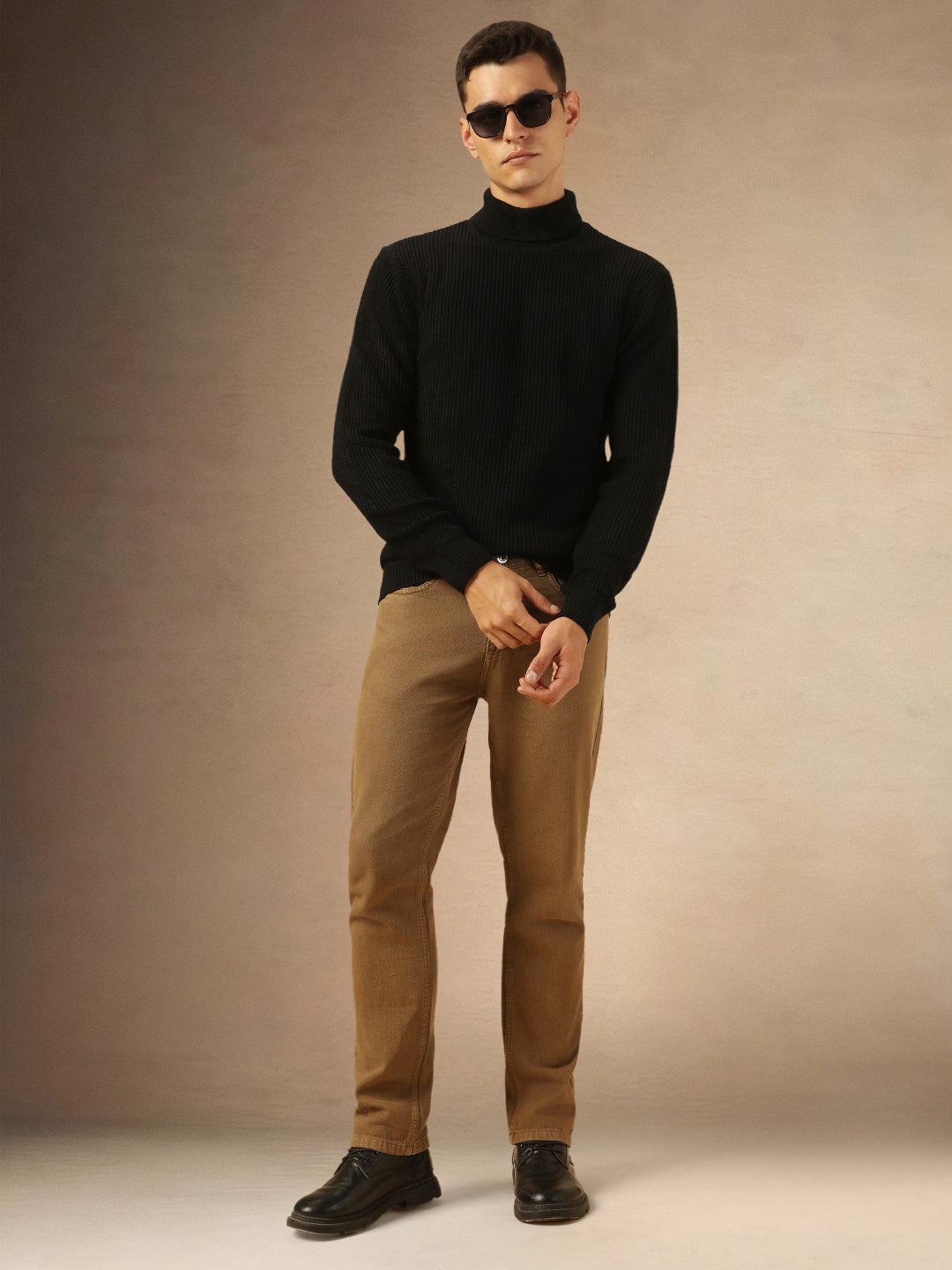 Men's Black Mock Neck Full Sleeves Slim Fit Pullover Sweater