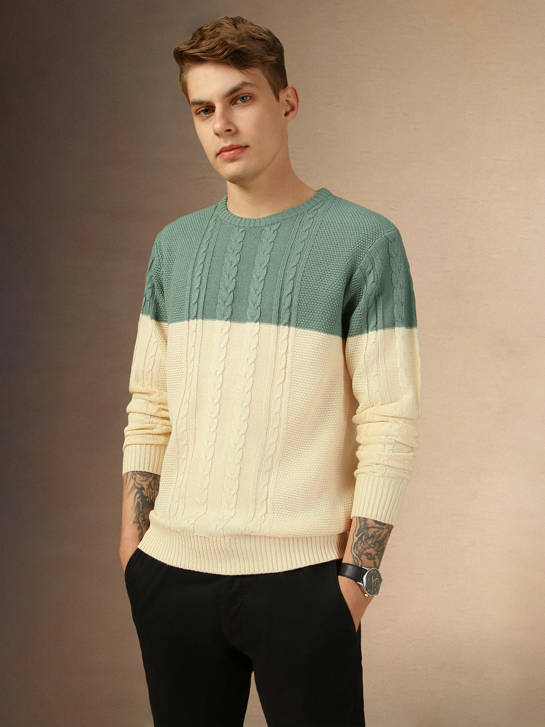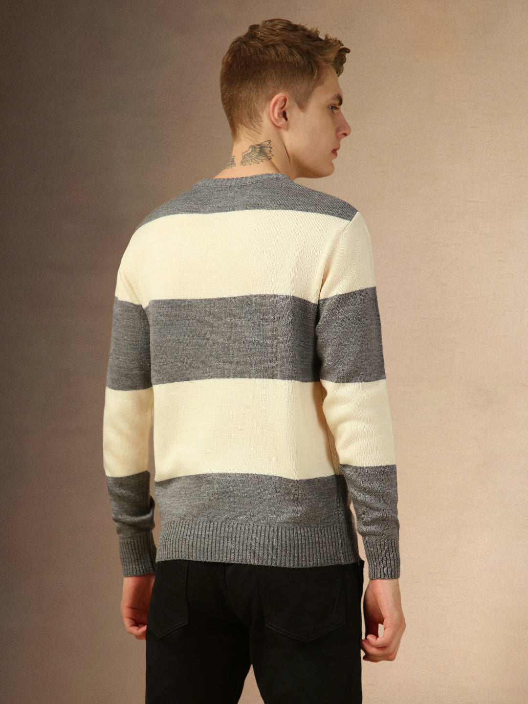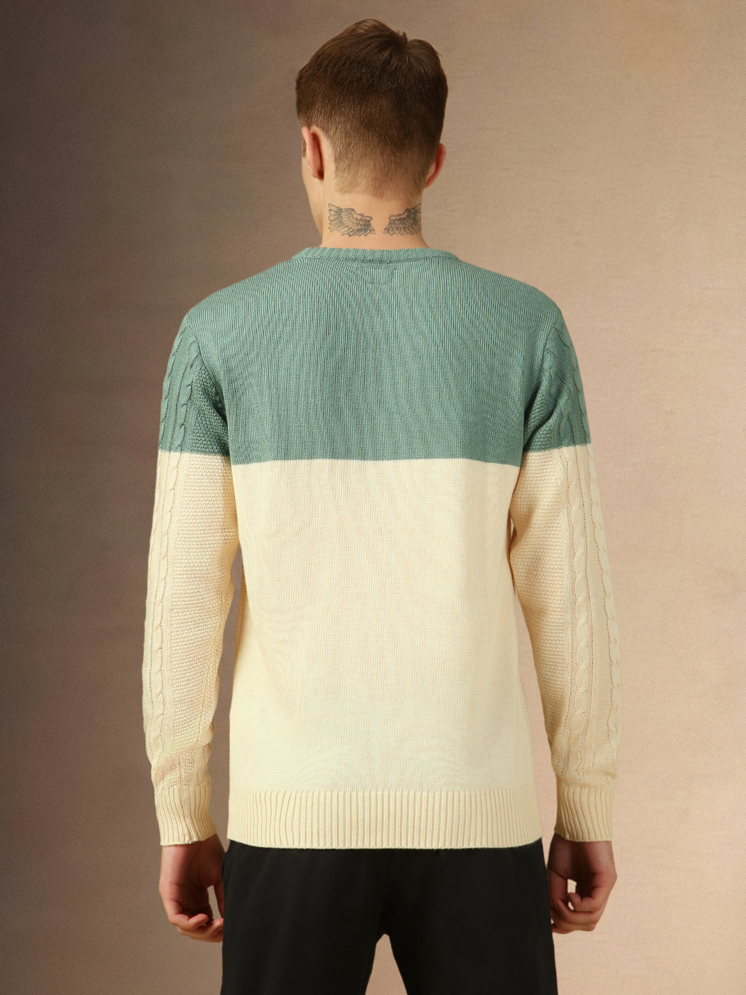 Men's Off-White ColorBlock Round Neck Pullover Sweater