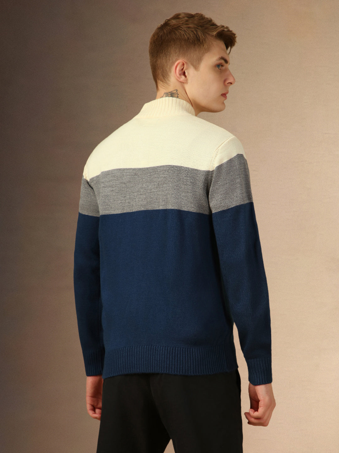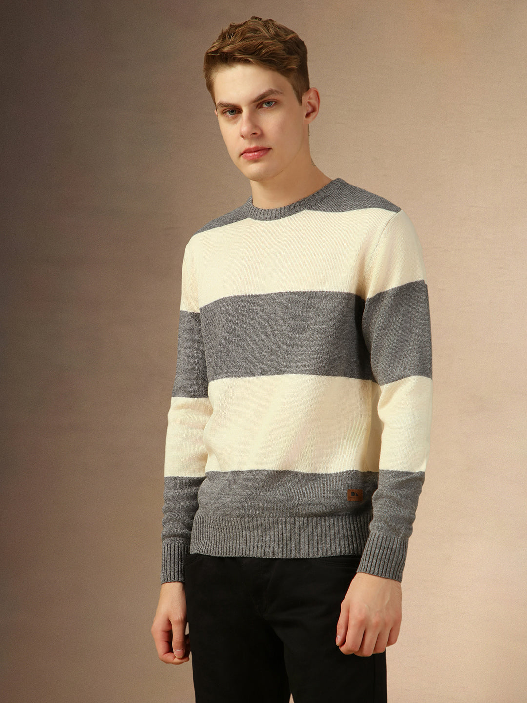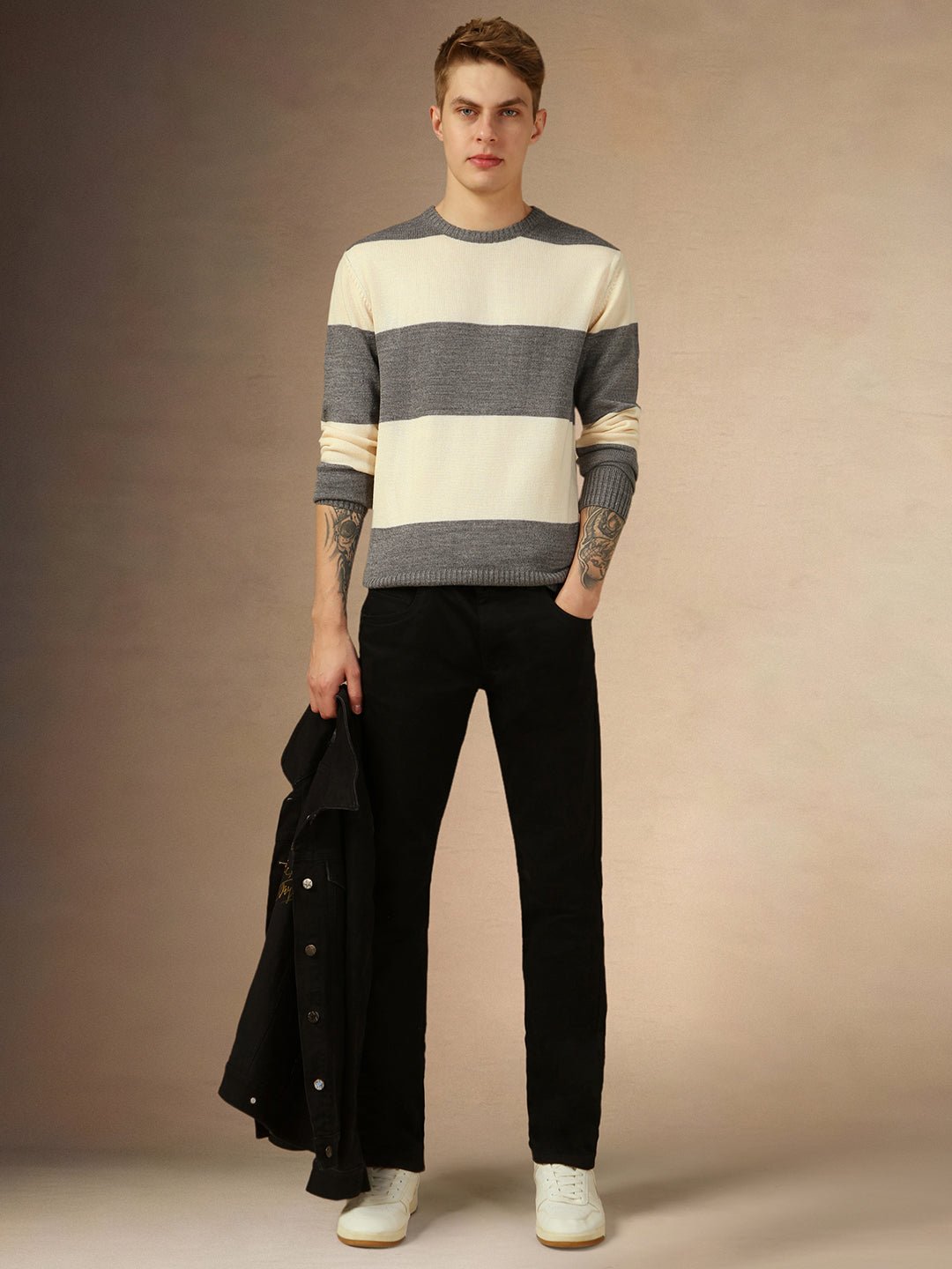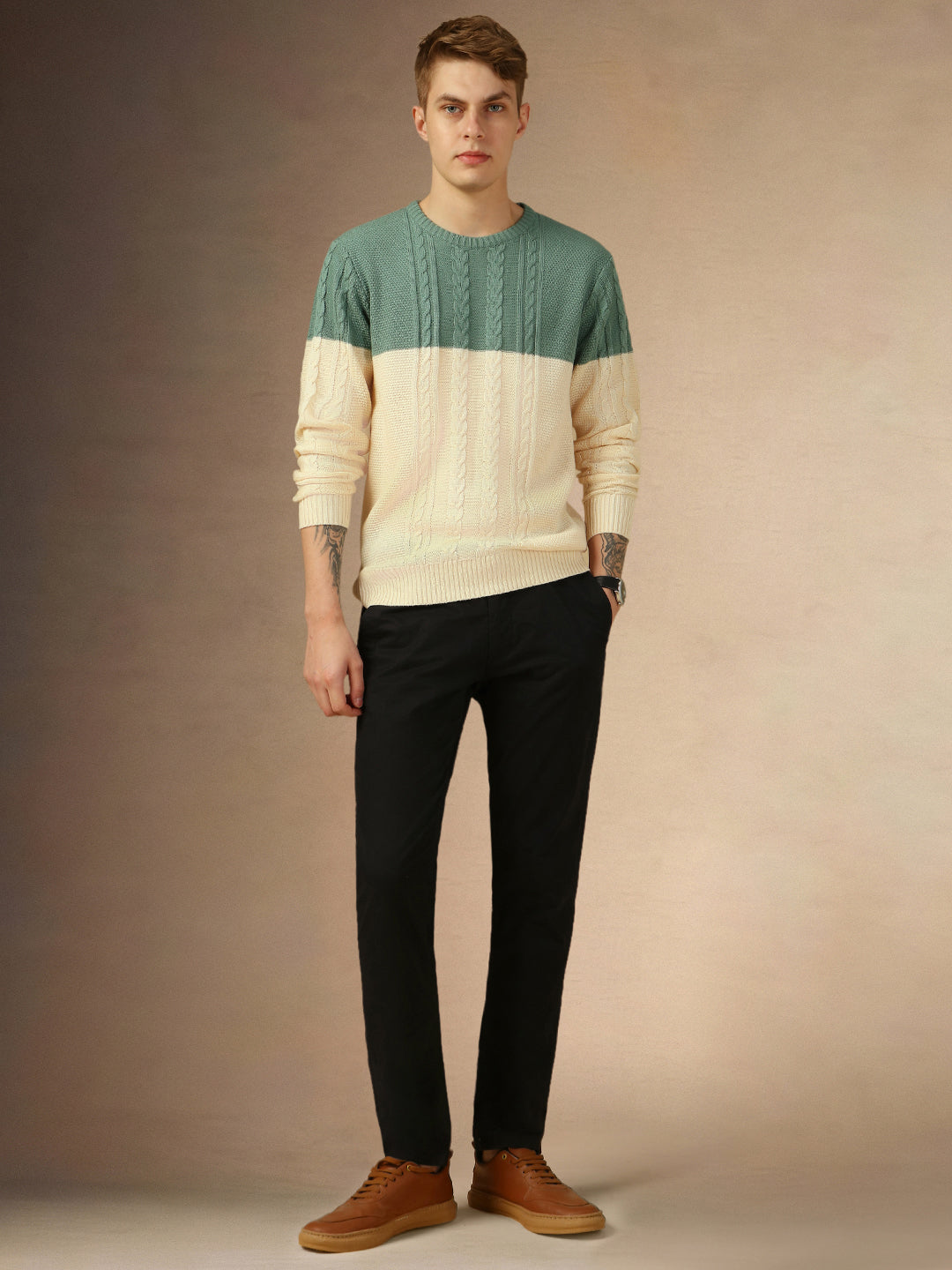 Men's Off-White ColorBlock Round Neck Pullover Sweater