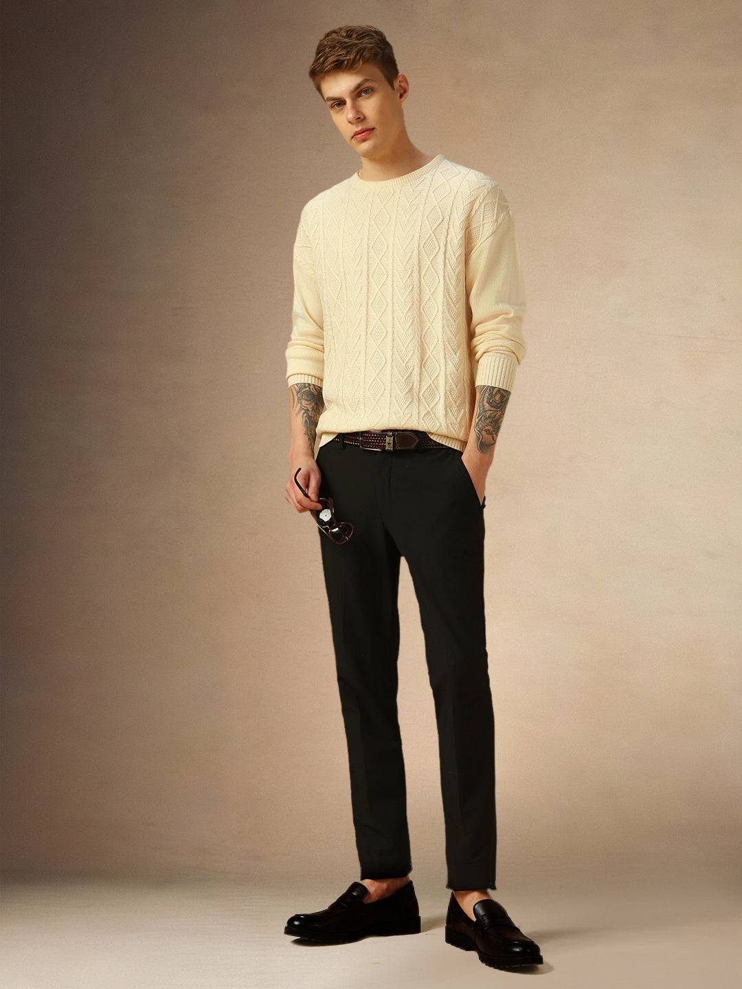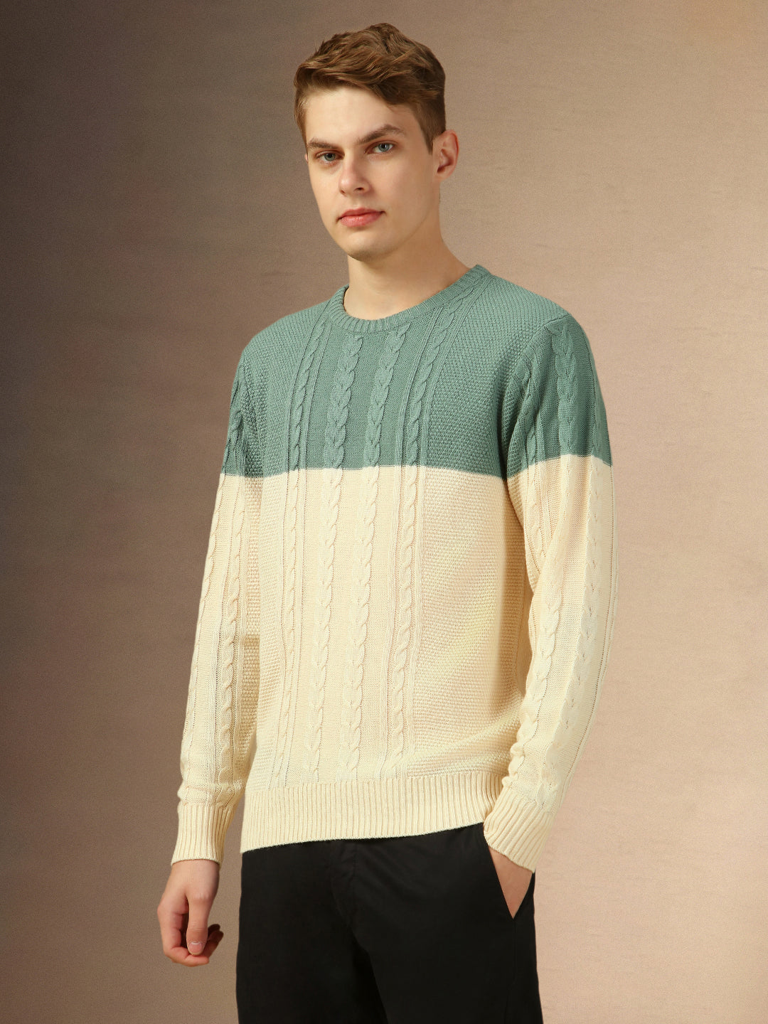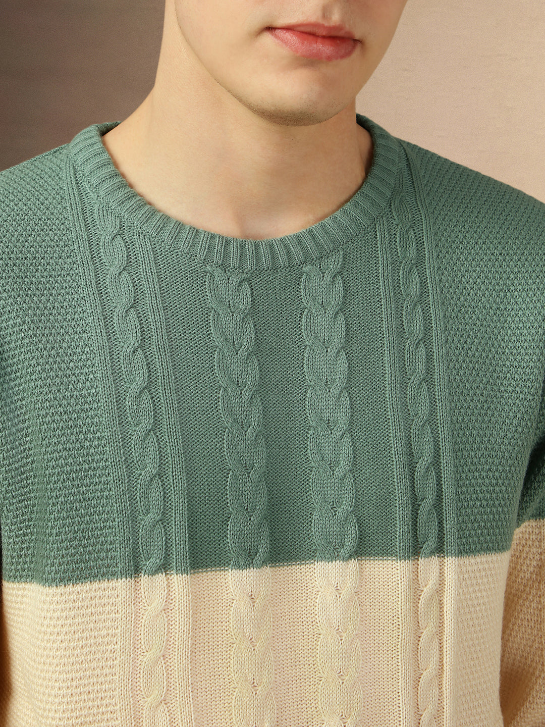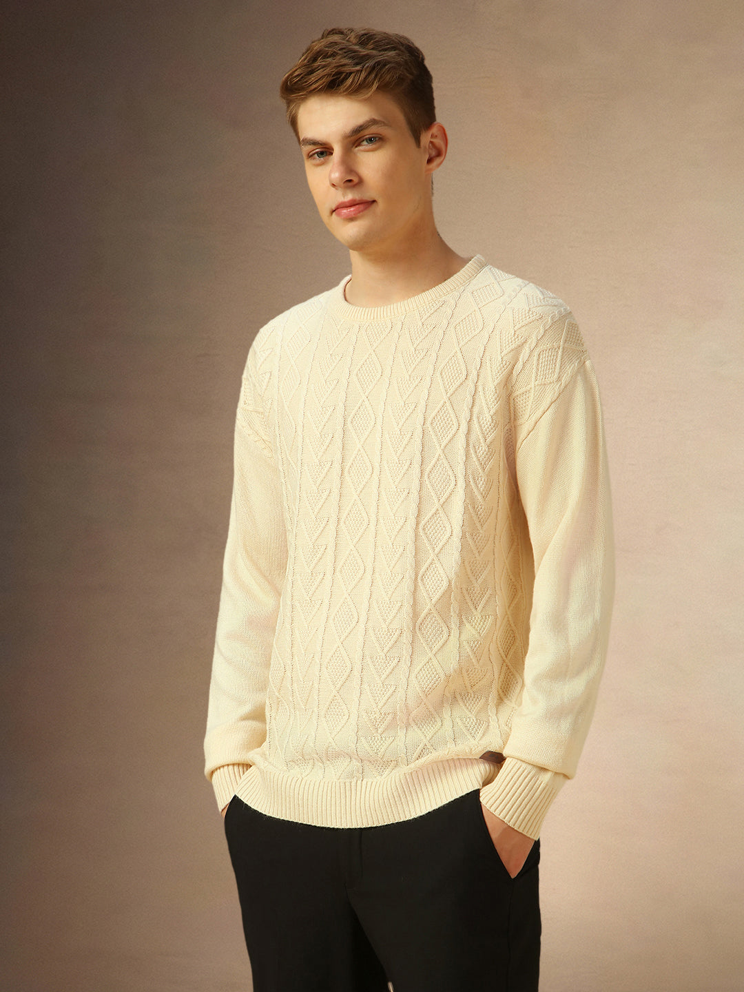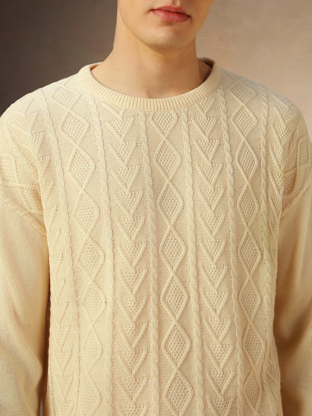 Men's Cable Knit Round Neck Acrylic Full Sleeves Pullover Sweater