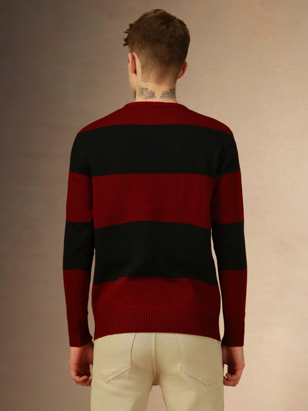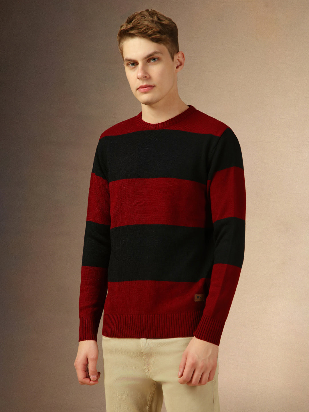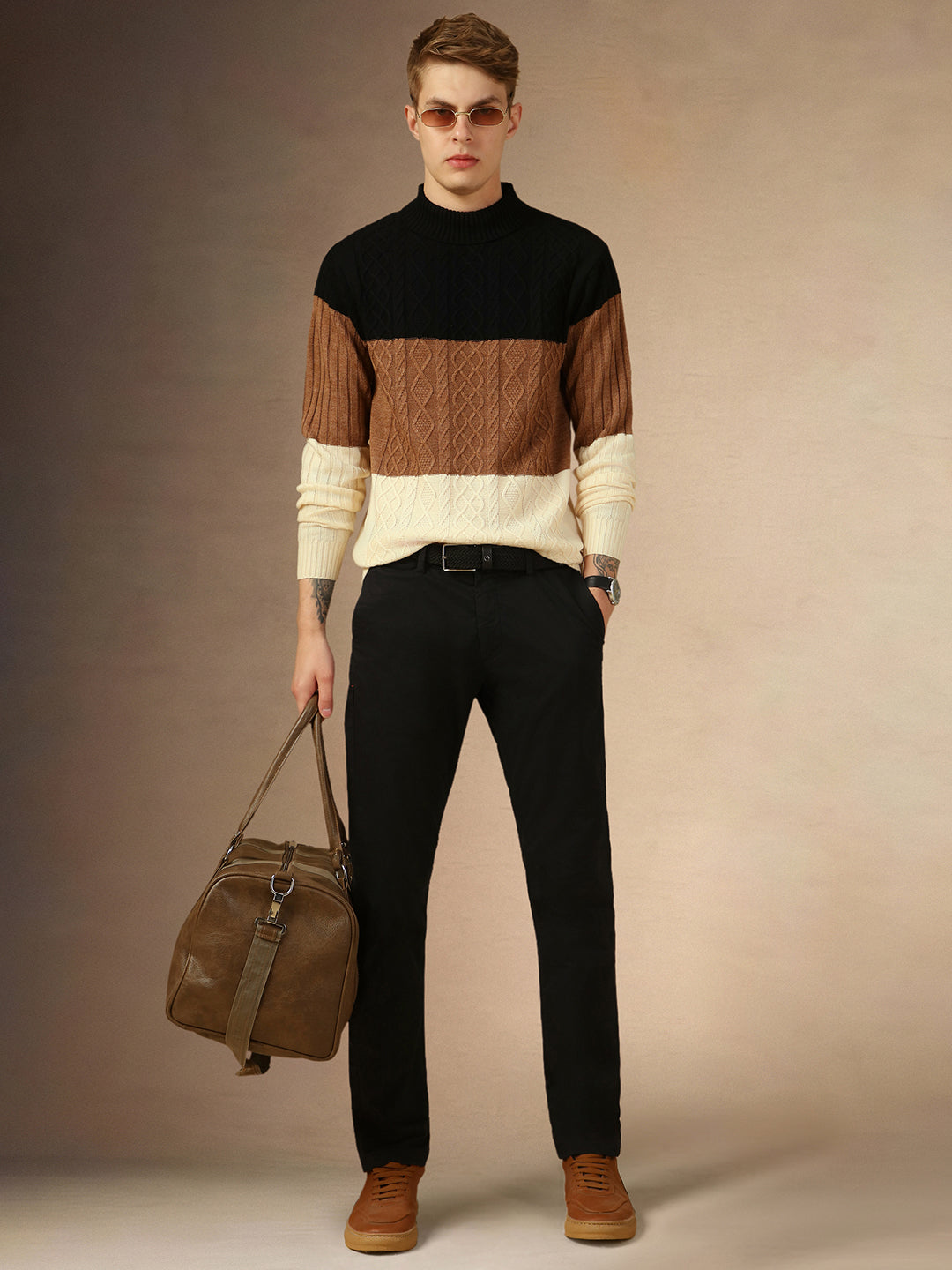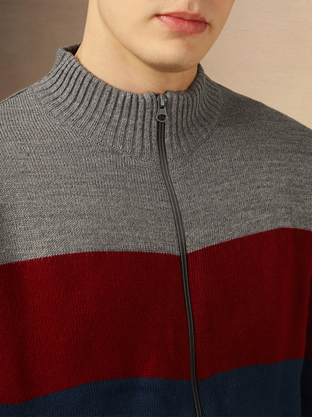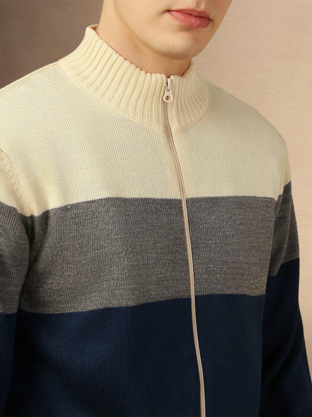 Men's Striped Mock Neck Full Sleeves Regular Fit Sweater