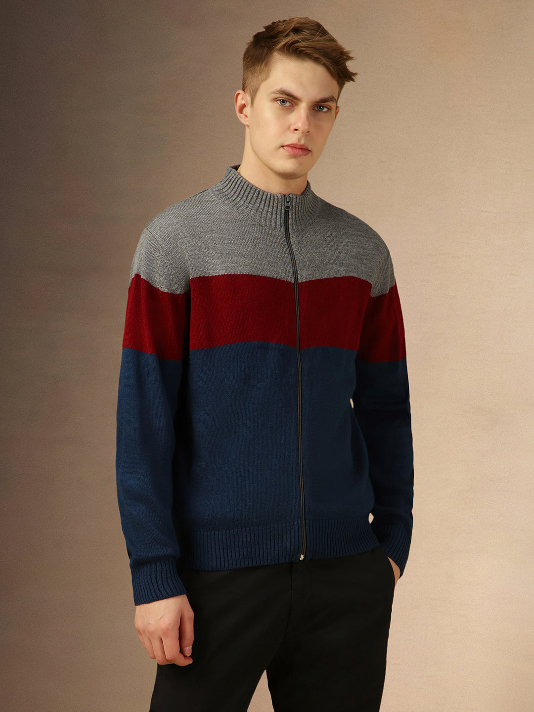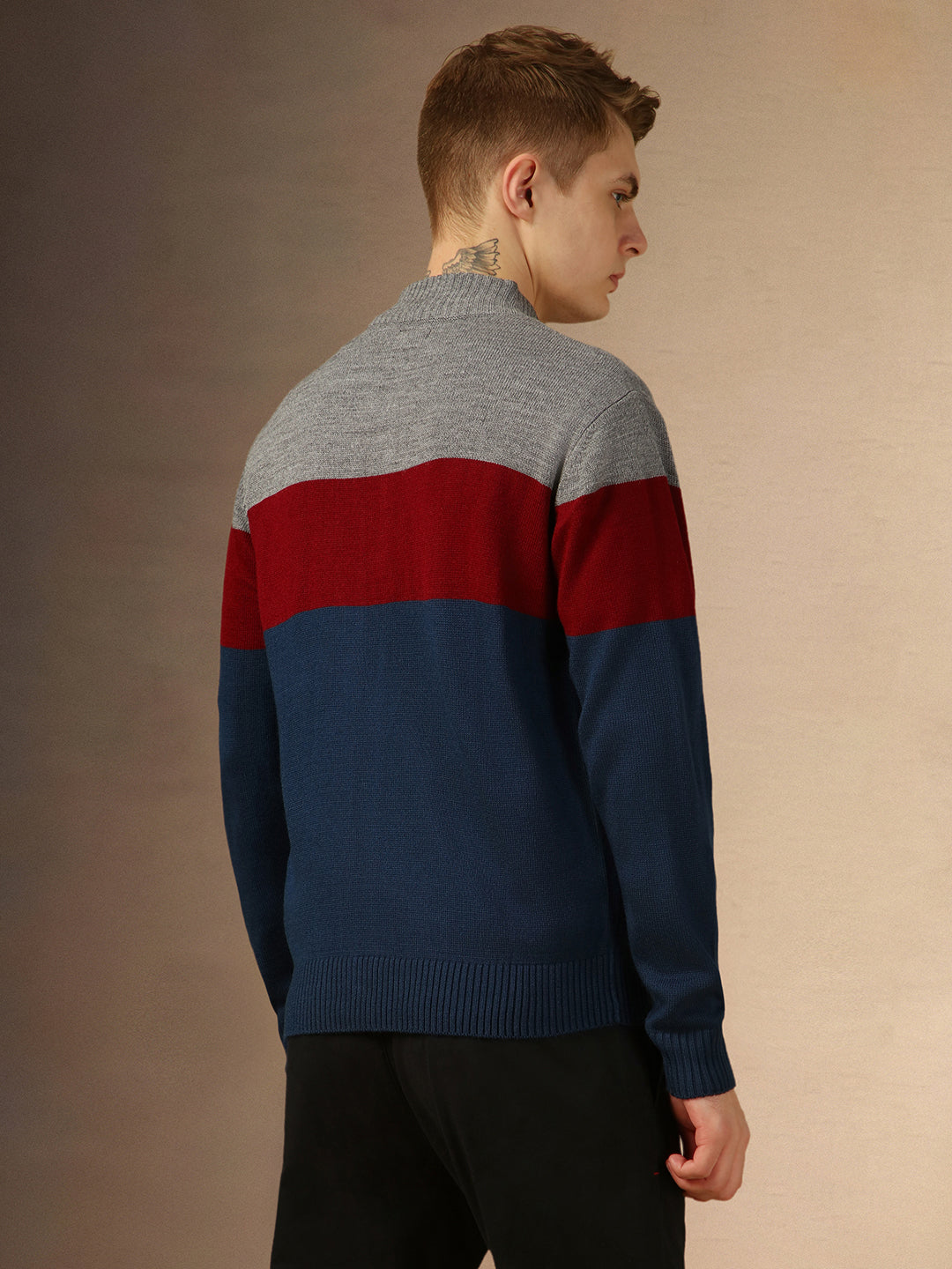 Men's Multi Color solid Mock Collar Full Sleeves Sweater
