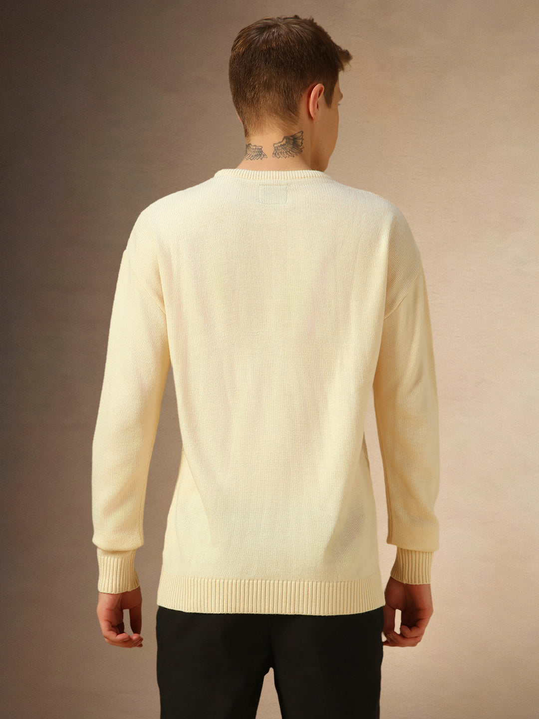 Men's Offwhite Solid Crew Neck Full Sleeves Sweater