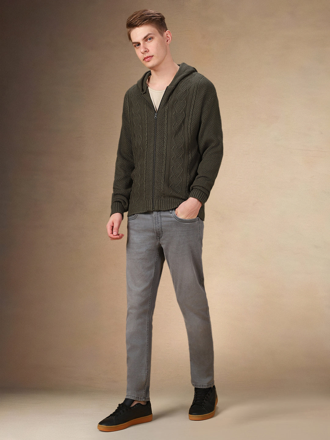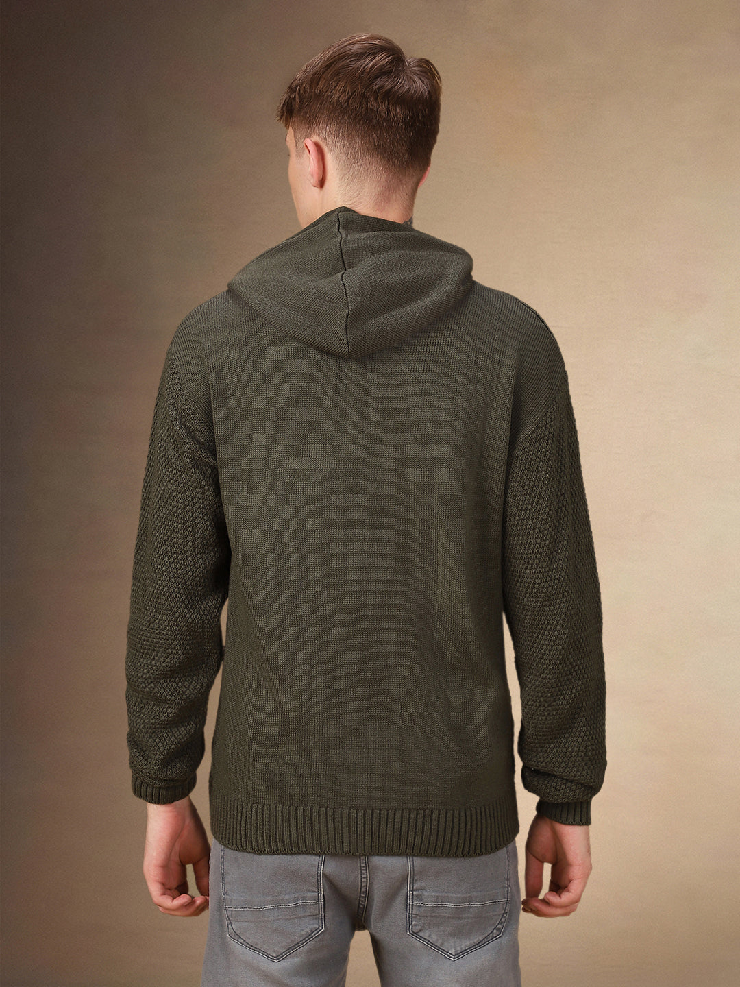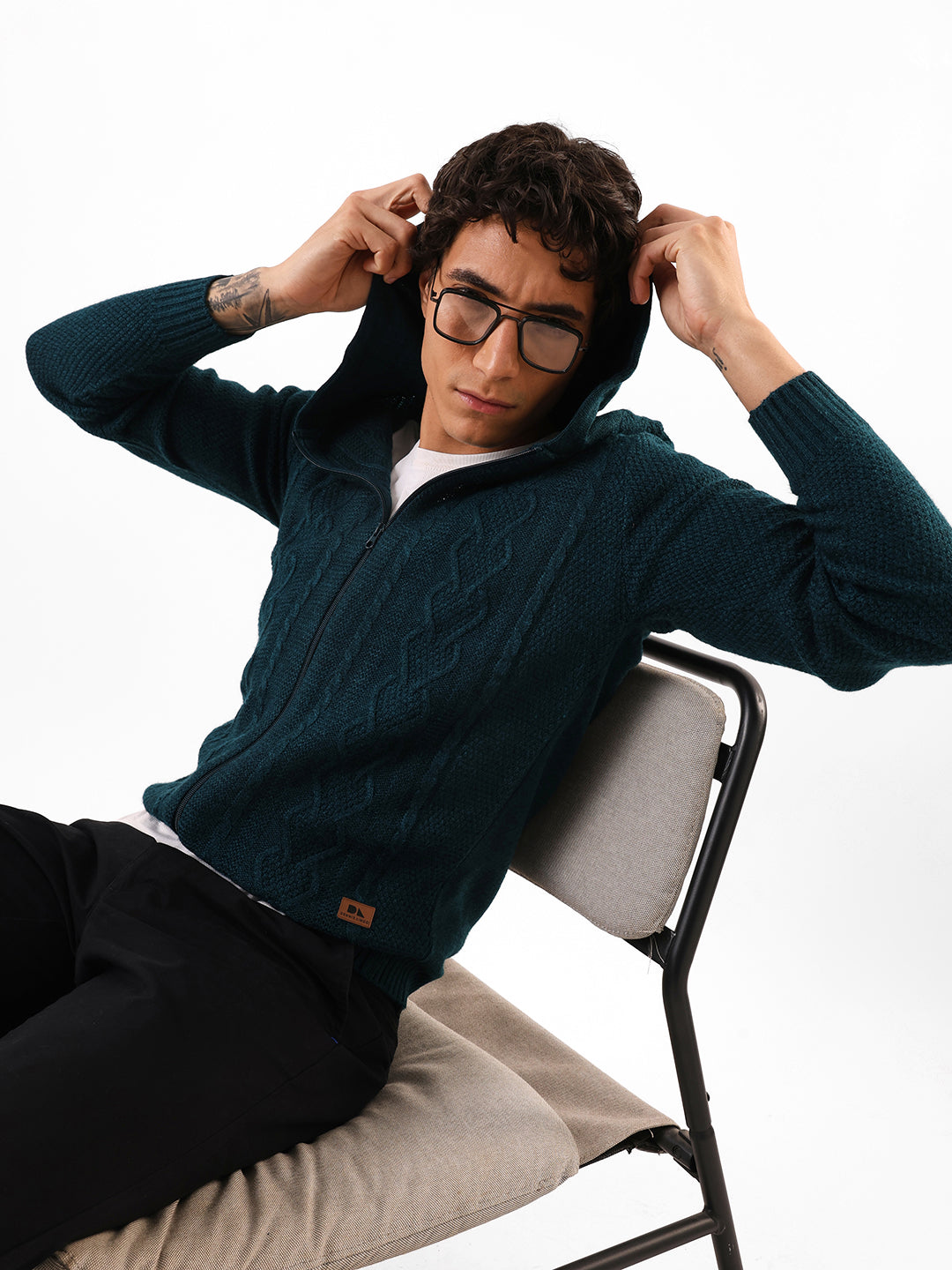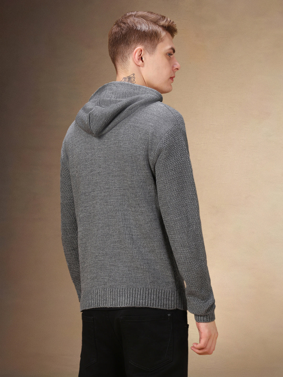 Men's Solid Hooded Full Sleeves Regular Fit Cardigan Sweater