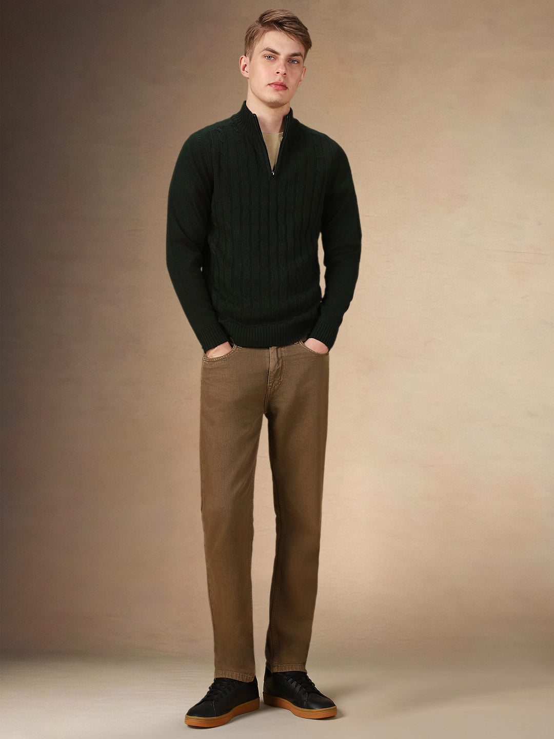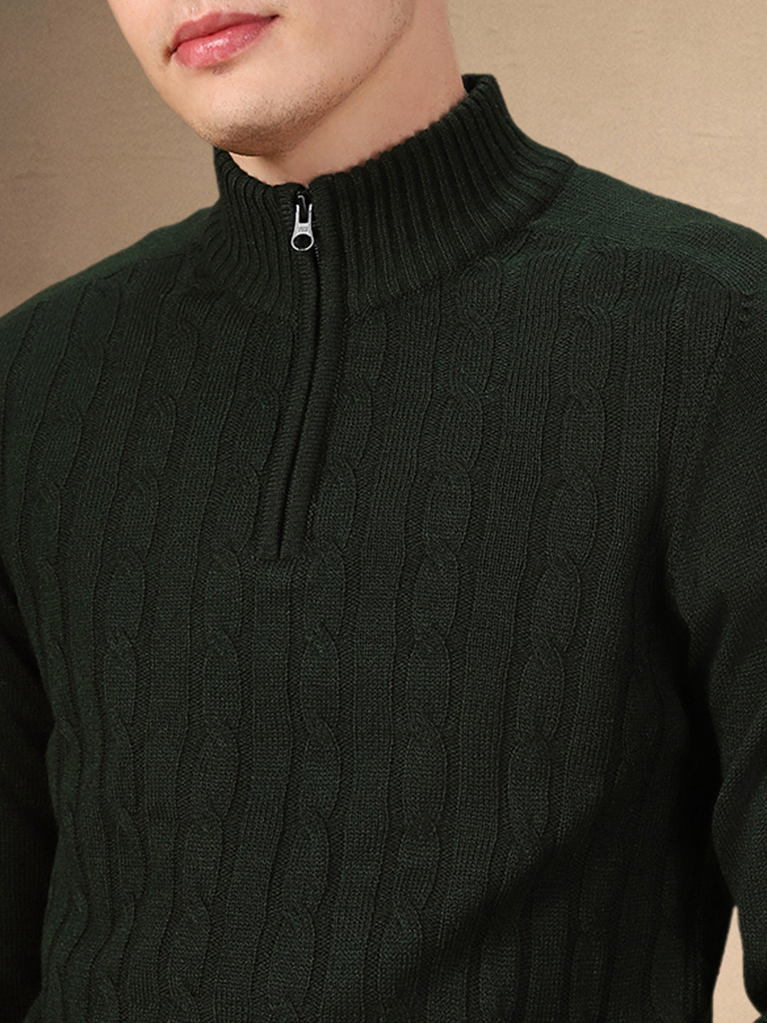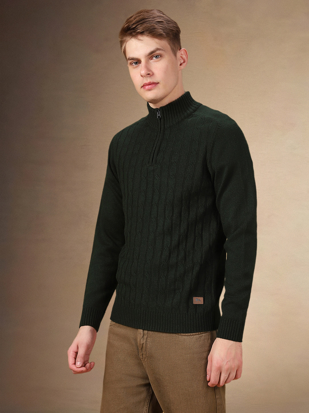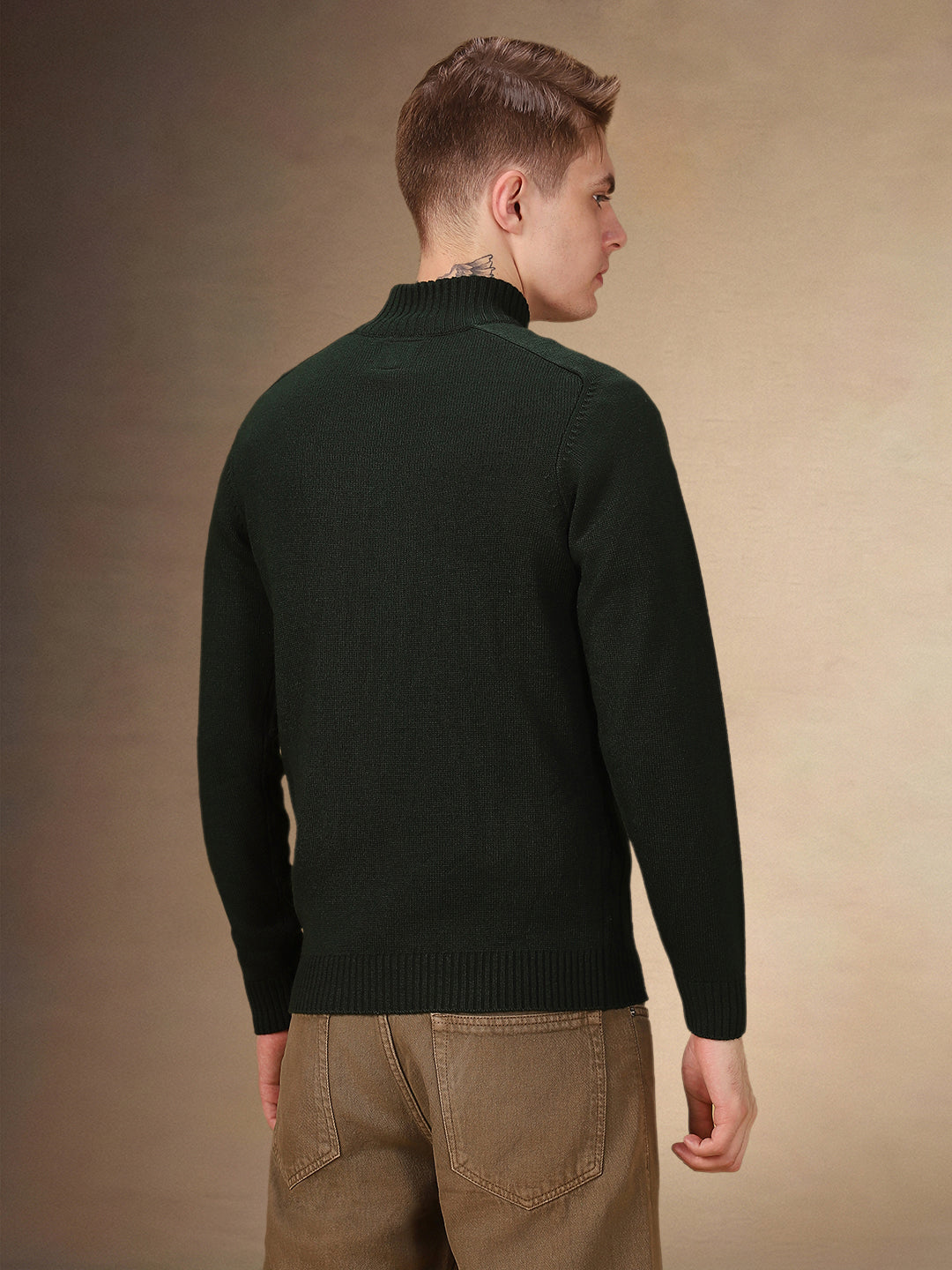 Men's Solid Mock Neck Full Sleeves Regular Fit Pullover Sweater