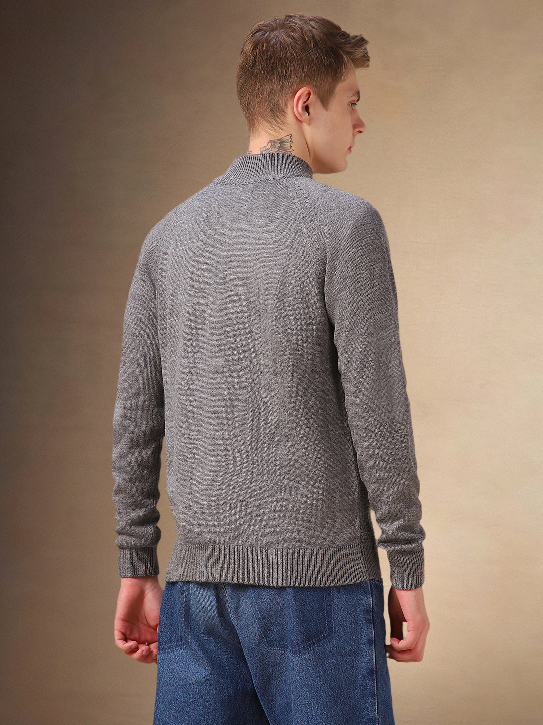 Men's Grey Mock Neck Full Sleeves Slim Fit Pullover Sweater