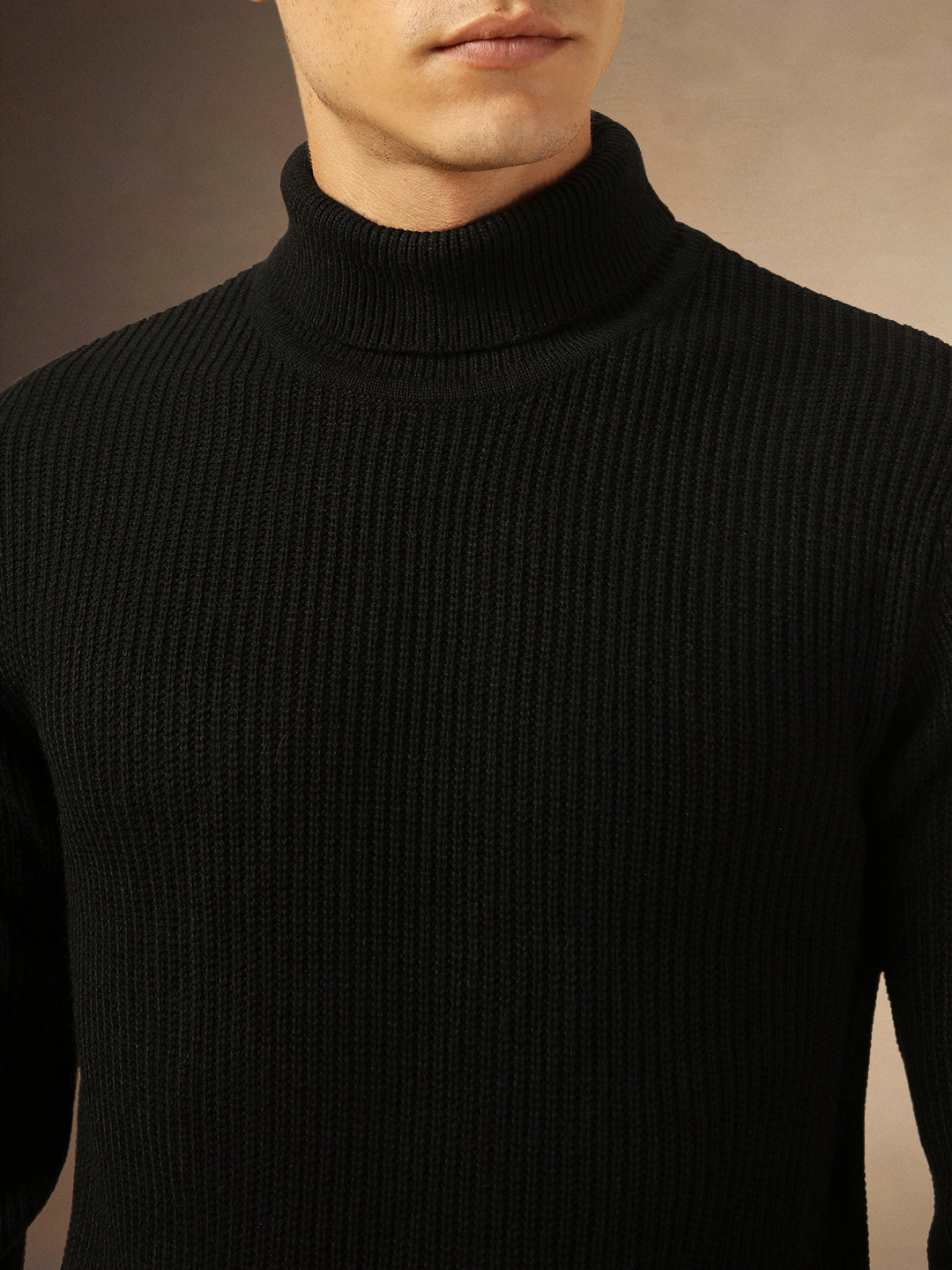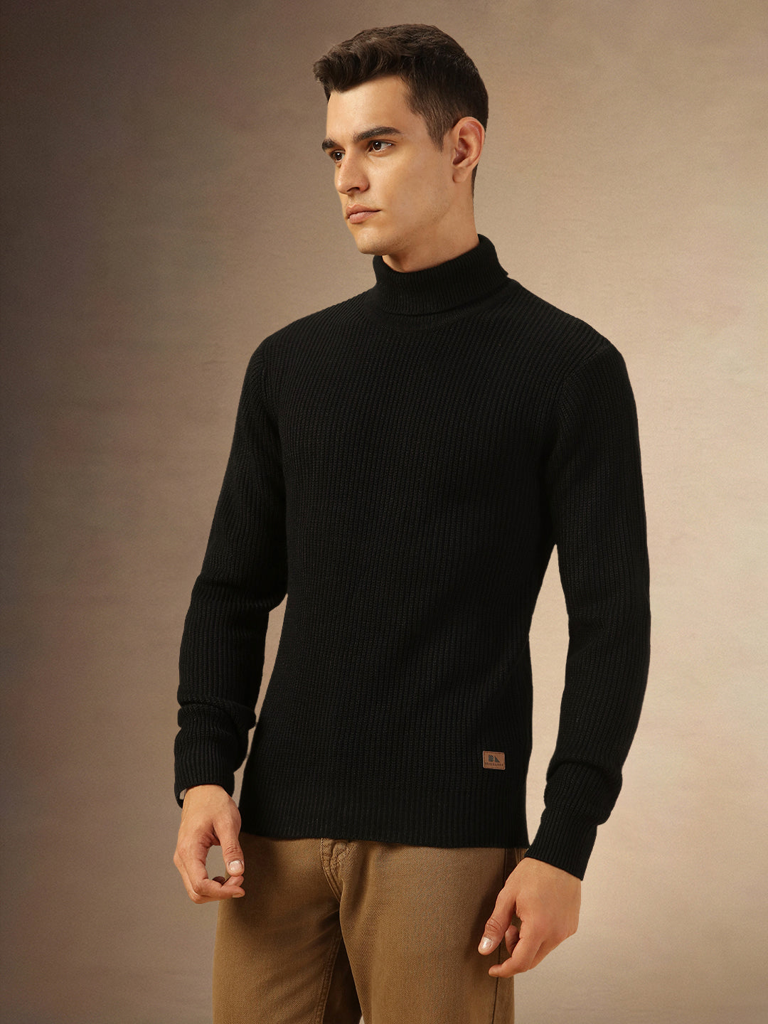 Mne's Black Turtle Neck Full Sleeves Sweater