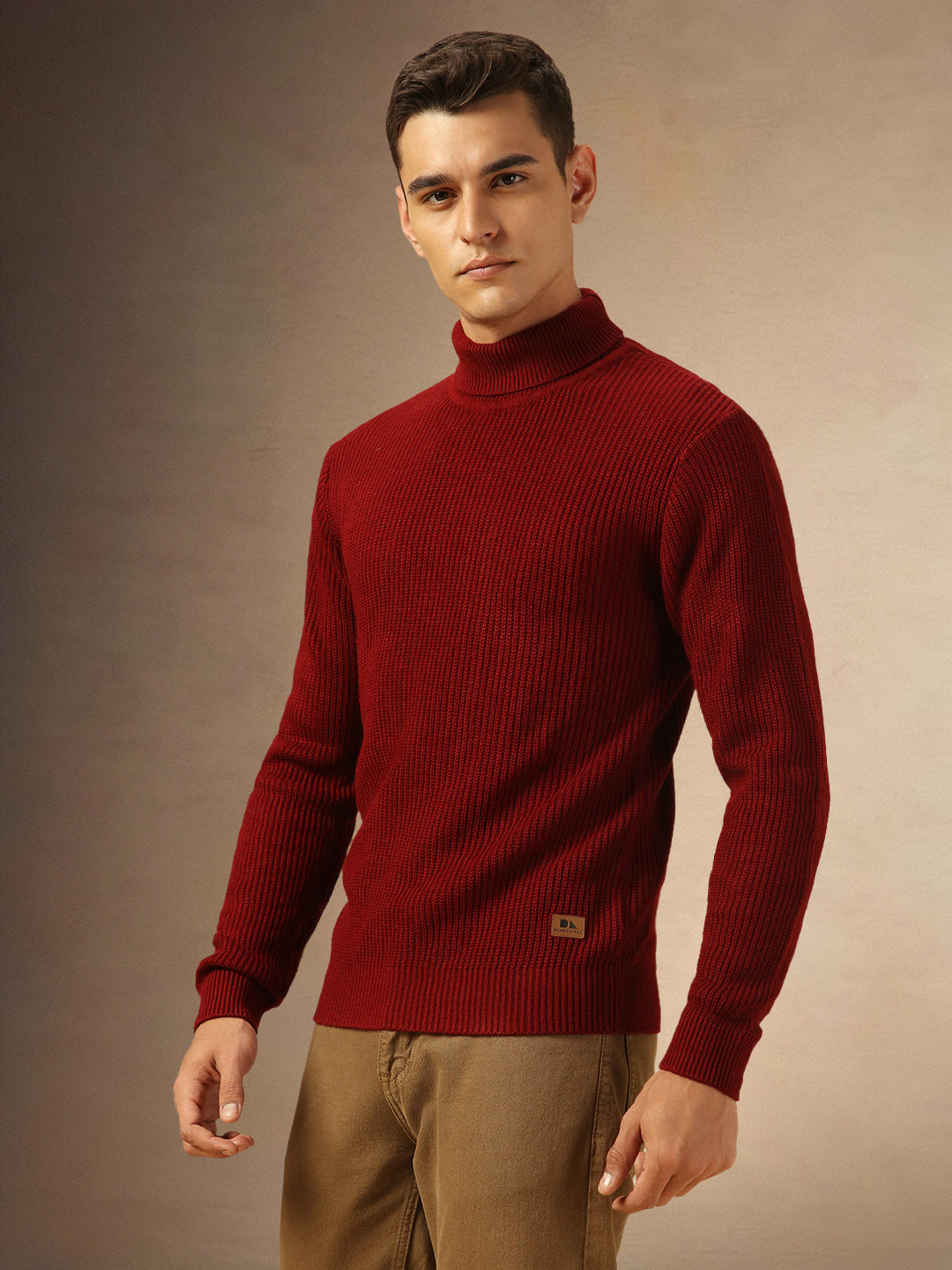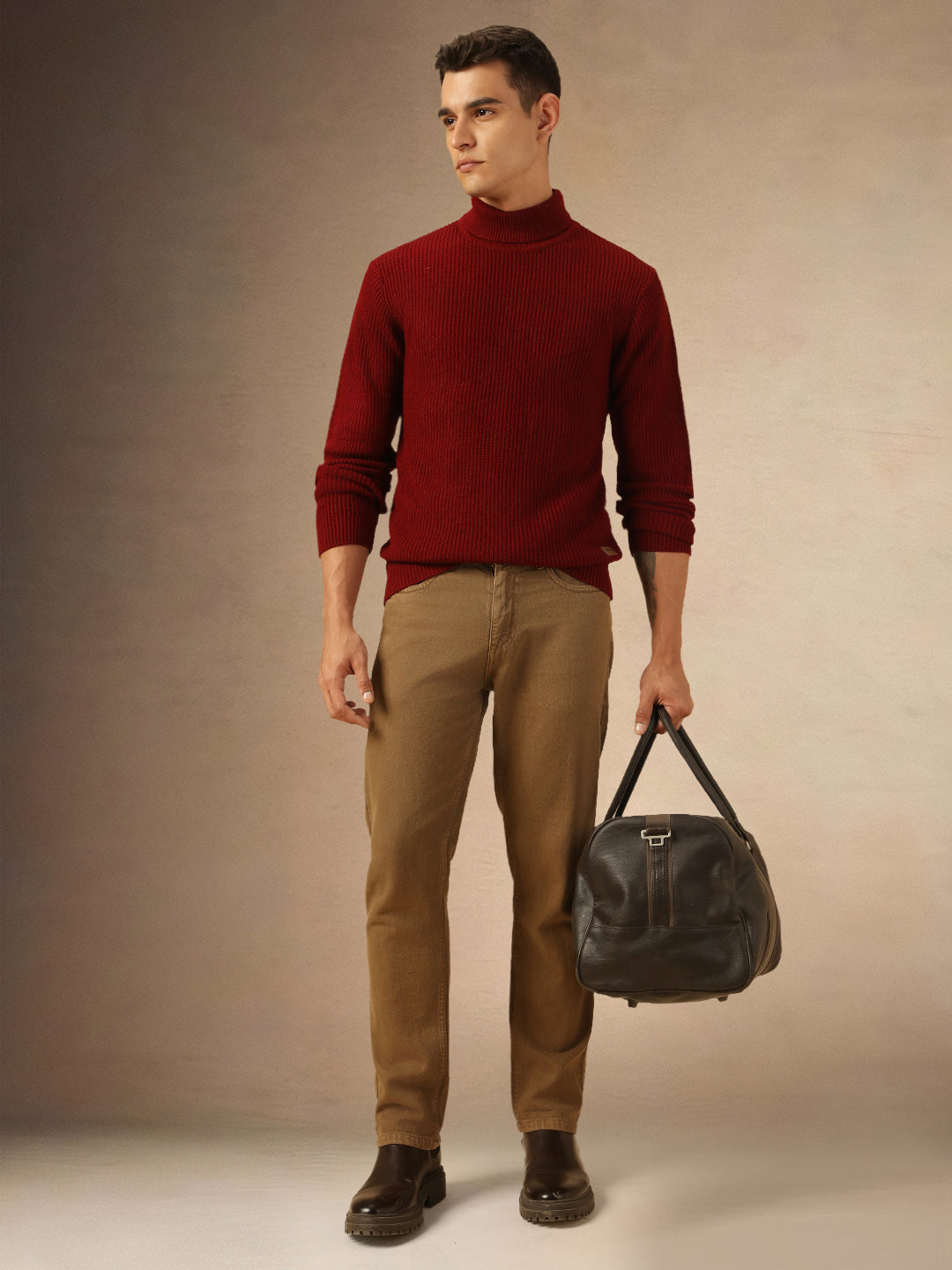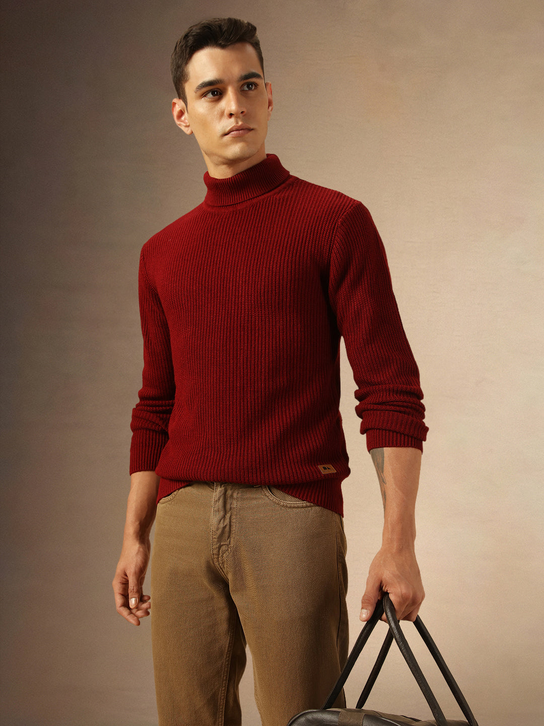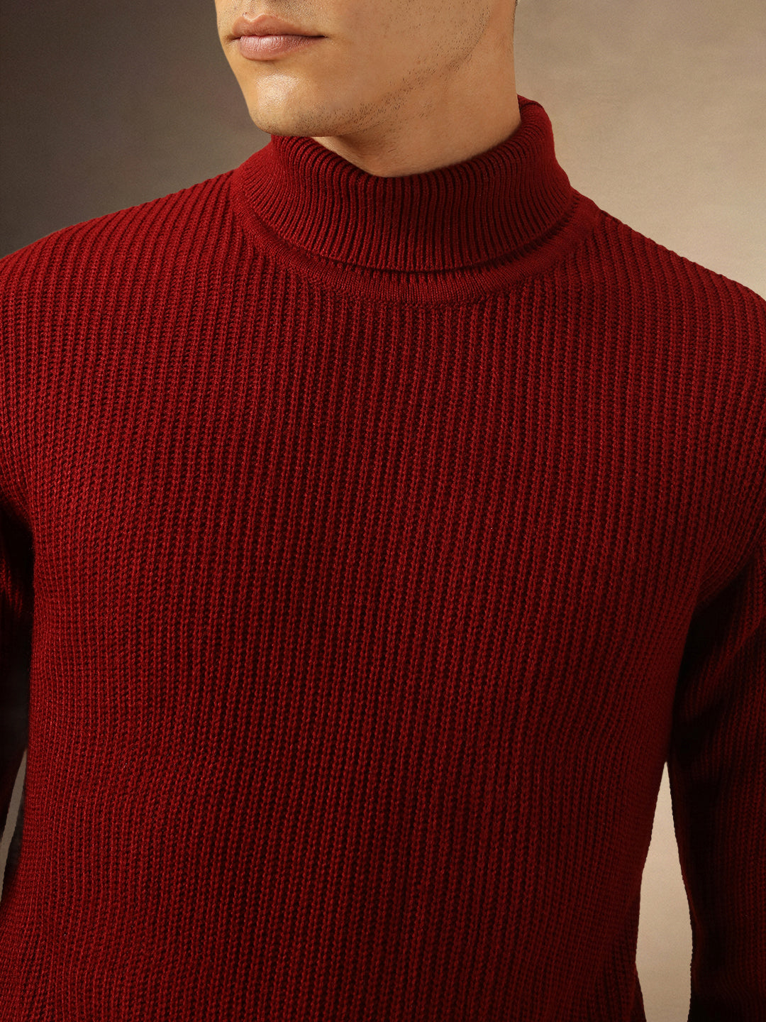 Mne's Maroon Turtle Neck Full Sleeves Sweater