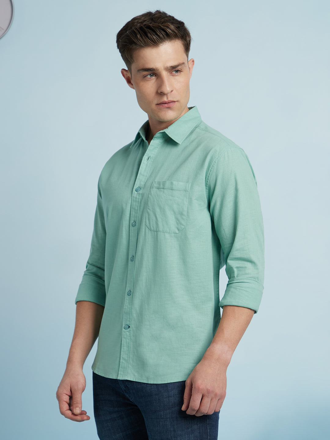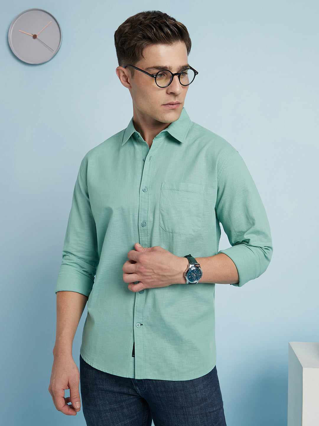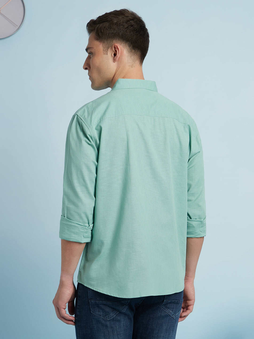 Men's Sage Green Textured Spread Collar Full Sleeves Regular Fit Shirt